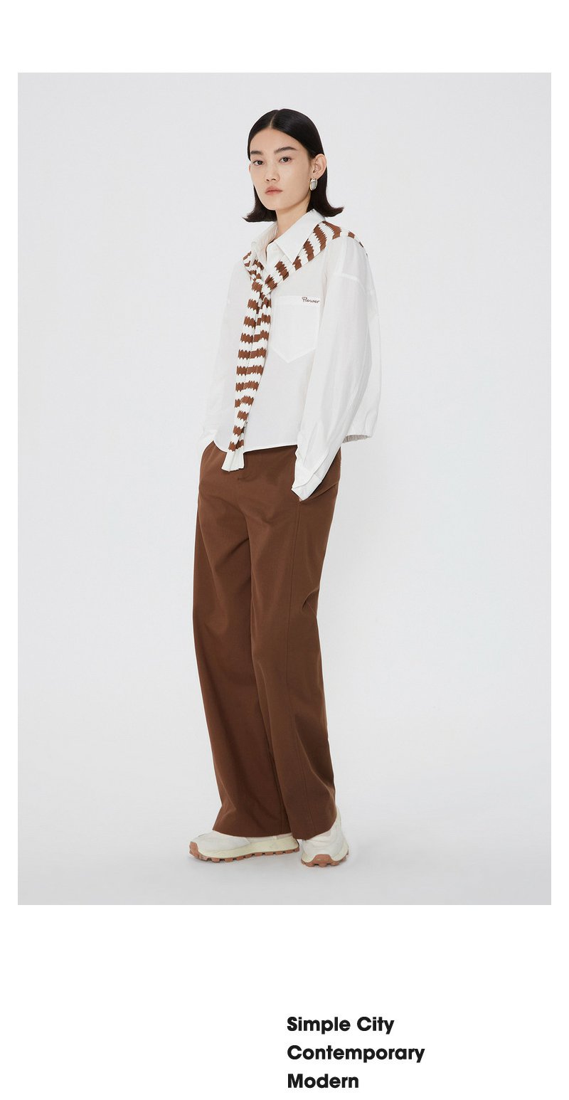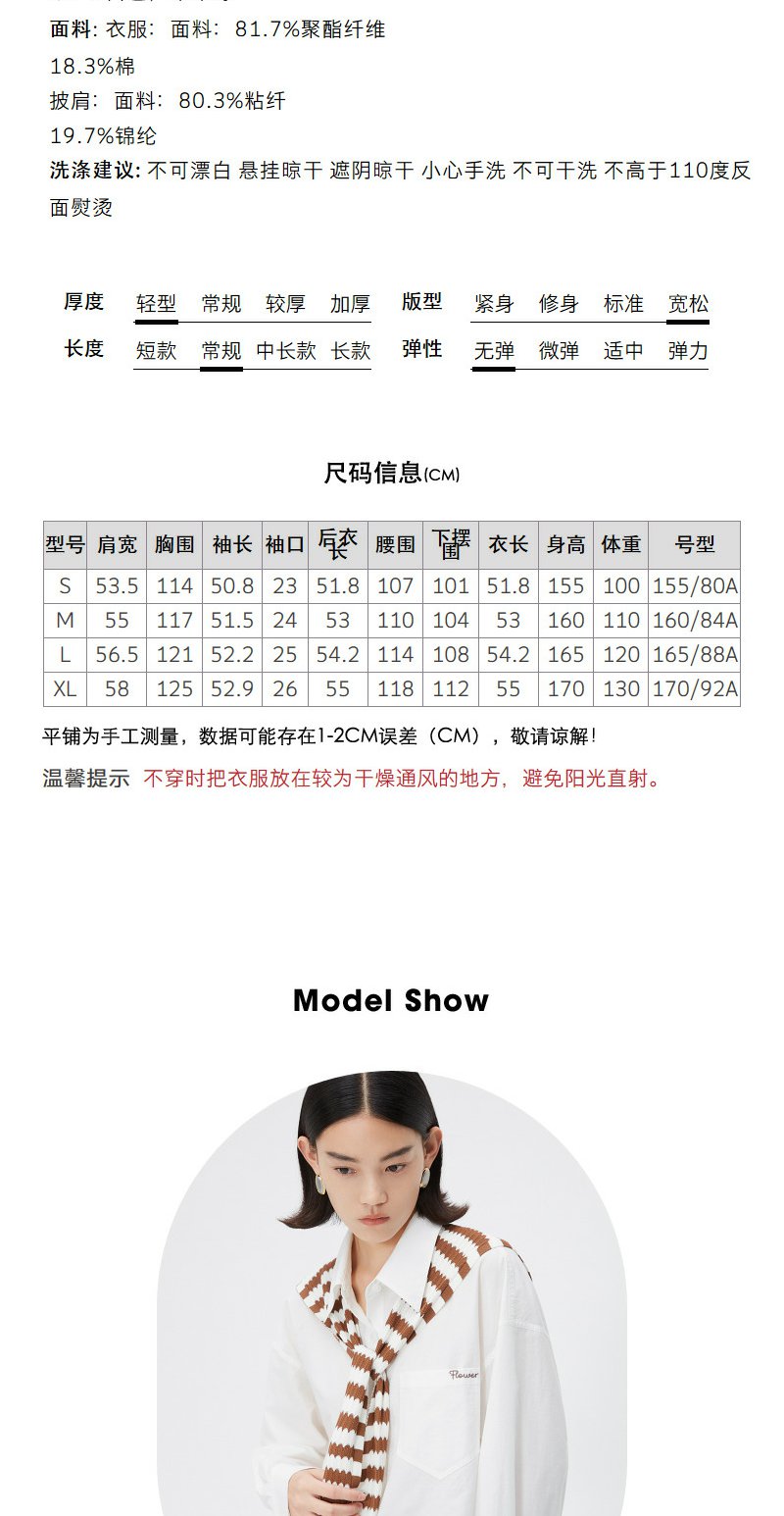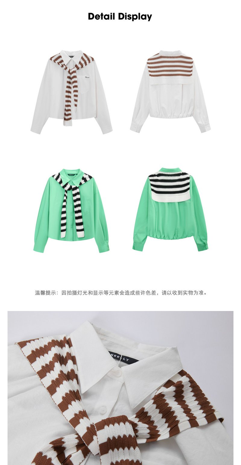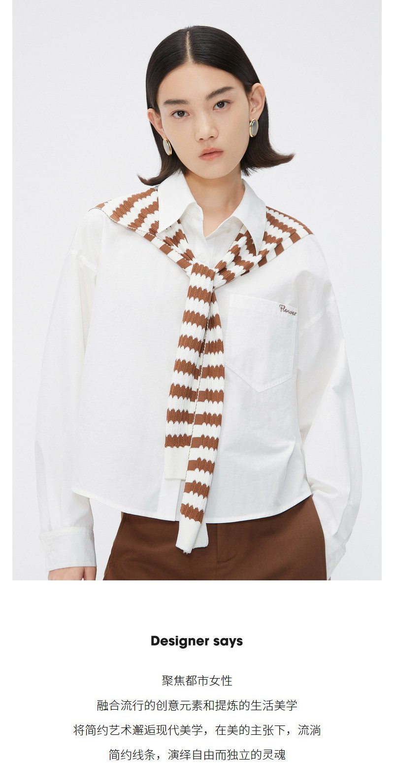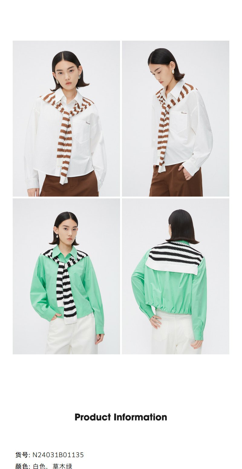 NEELLY纳俪商场同款春季披肩设计感衬衫女小众韩版宽松简约短衬衣N24031B01135