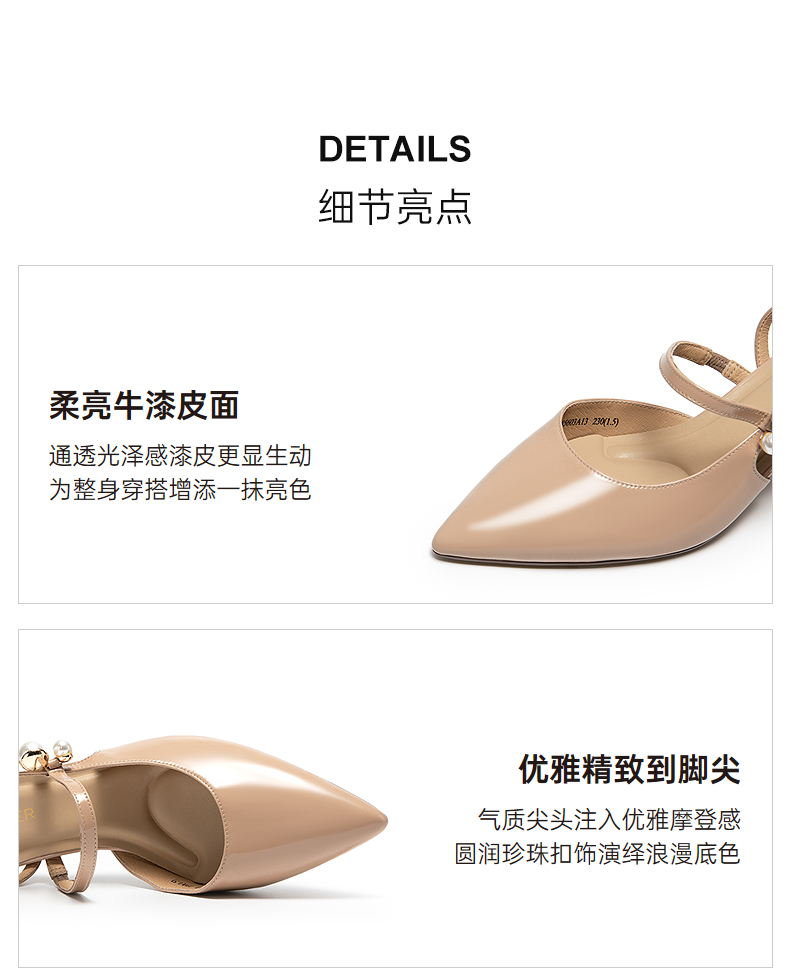 千百度漆皮静音细高跟鞋女秋新款羊皮法式单鞋A25488103