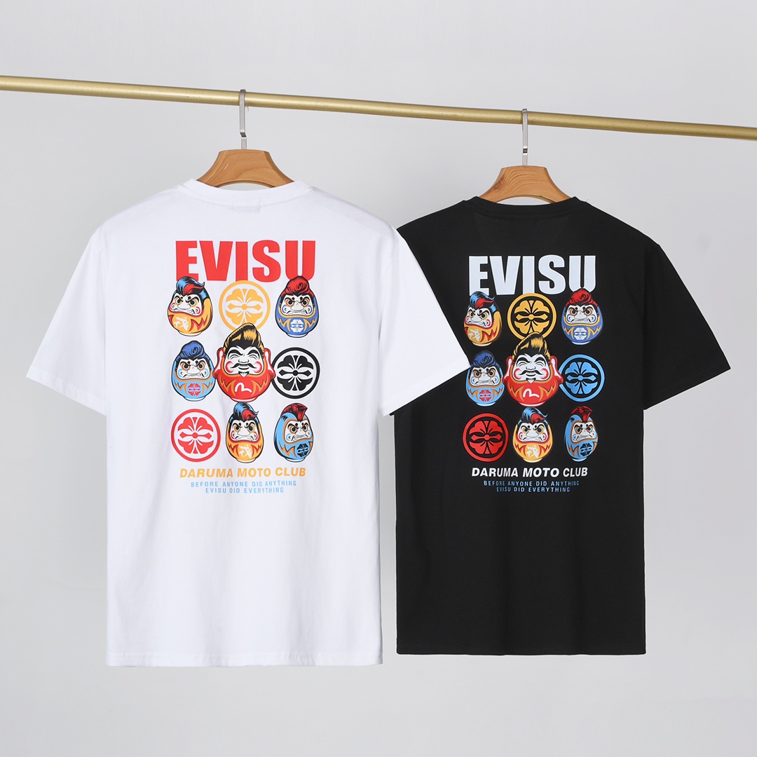2022 Summer EVISU 男士蓬巴杜飞机头 达摩图案短袖 款号: EV-3352 Size: M L XL XXL