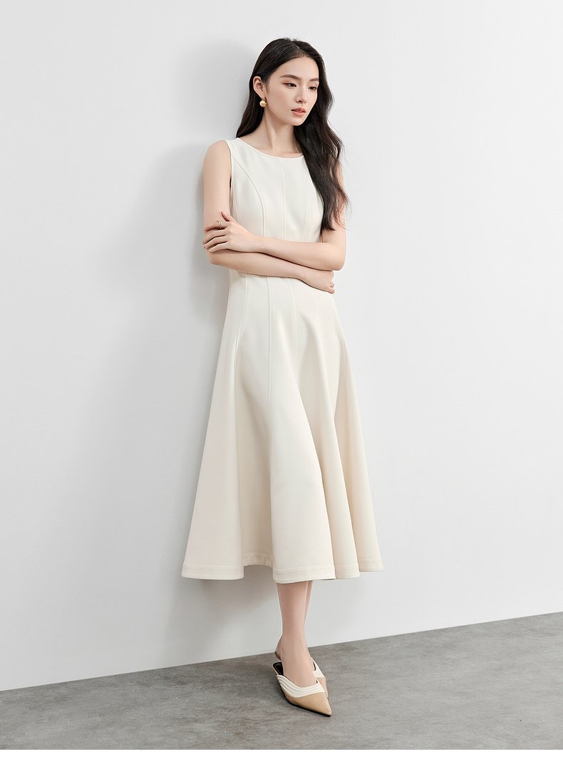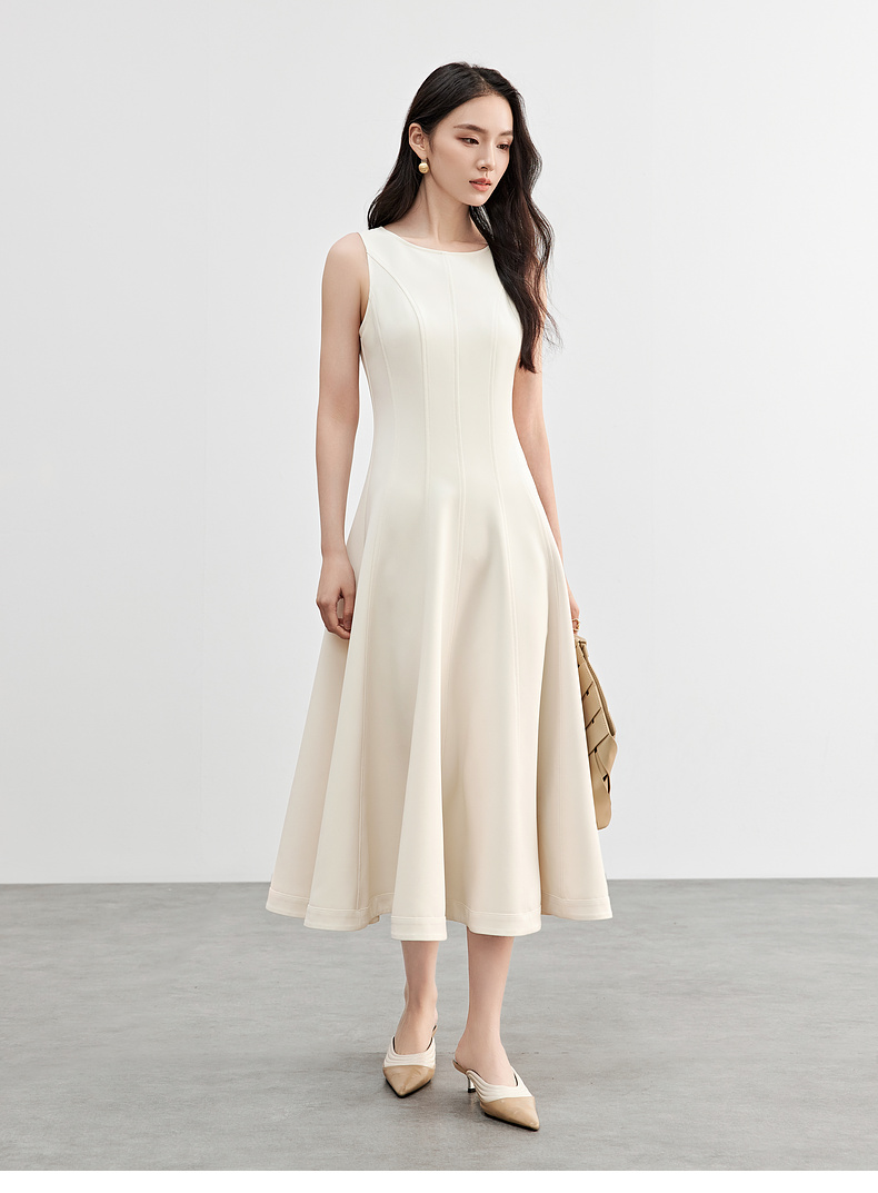 【内购】尚都比拉气质通勤设计解构线条收腰显瘦圆领连衣裙-58400