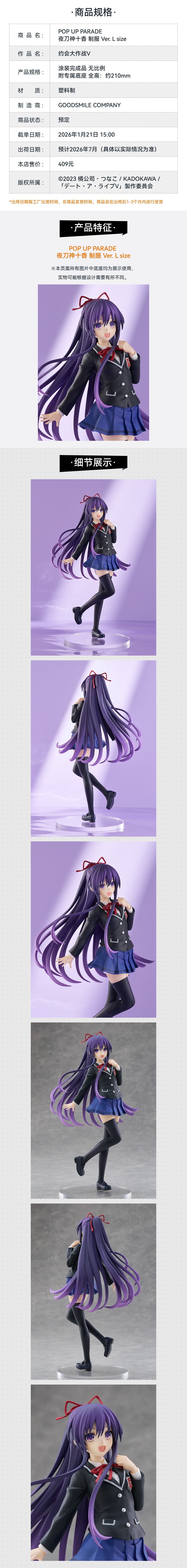 【GSC预售定金】POP UP PARADE 夜刀神十香 制服 Ver. L size 约会大作战V