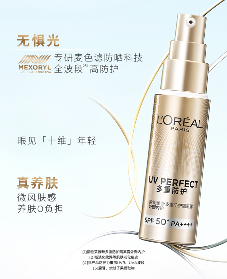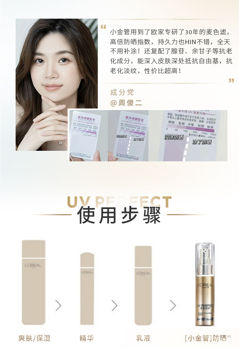 女神专属【赠15ml中样2只】欧莱雅新多重防护隔离防晒小金管30ml正装
