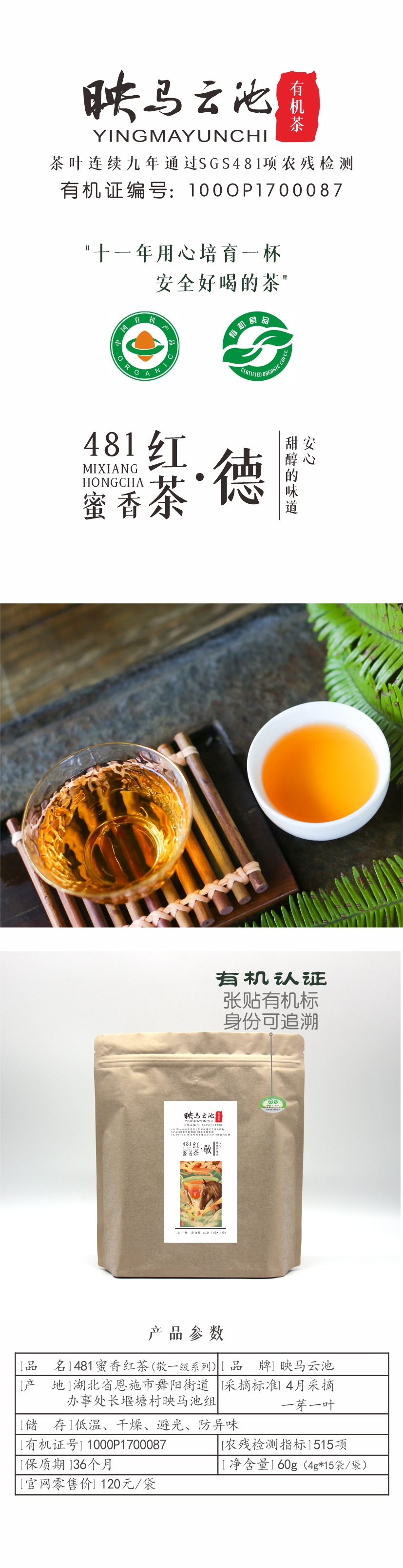 【恩施】映马云池有机茶481蜜香红茶(一级)·敬60g(4克*15袋)