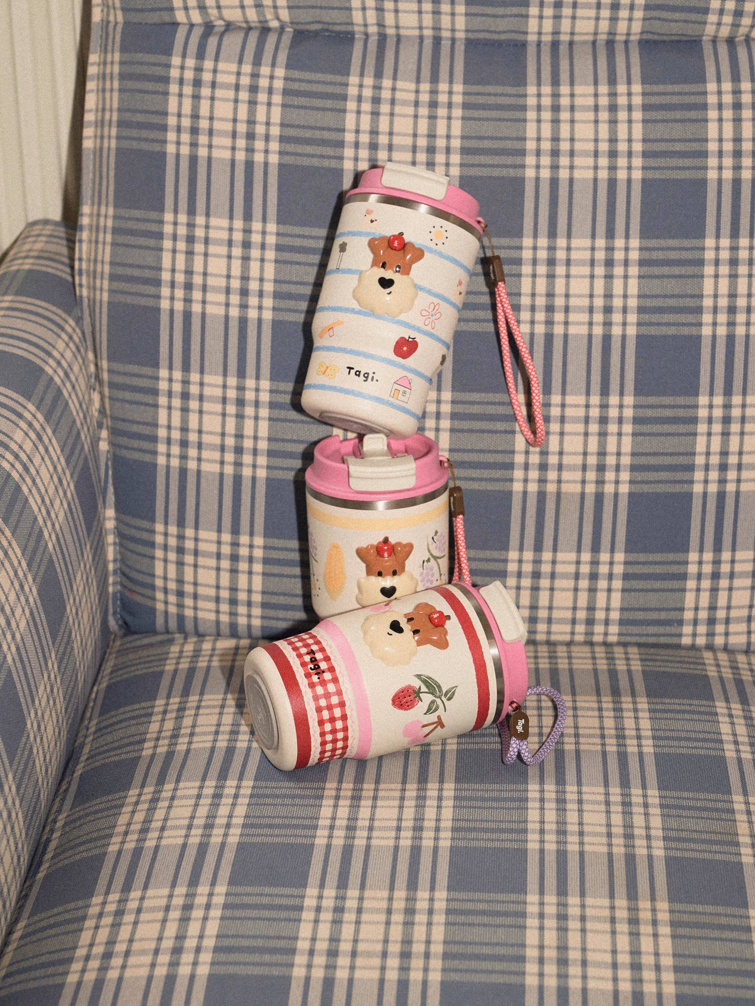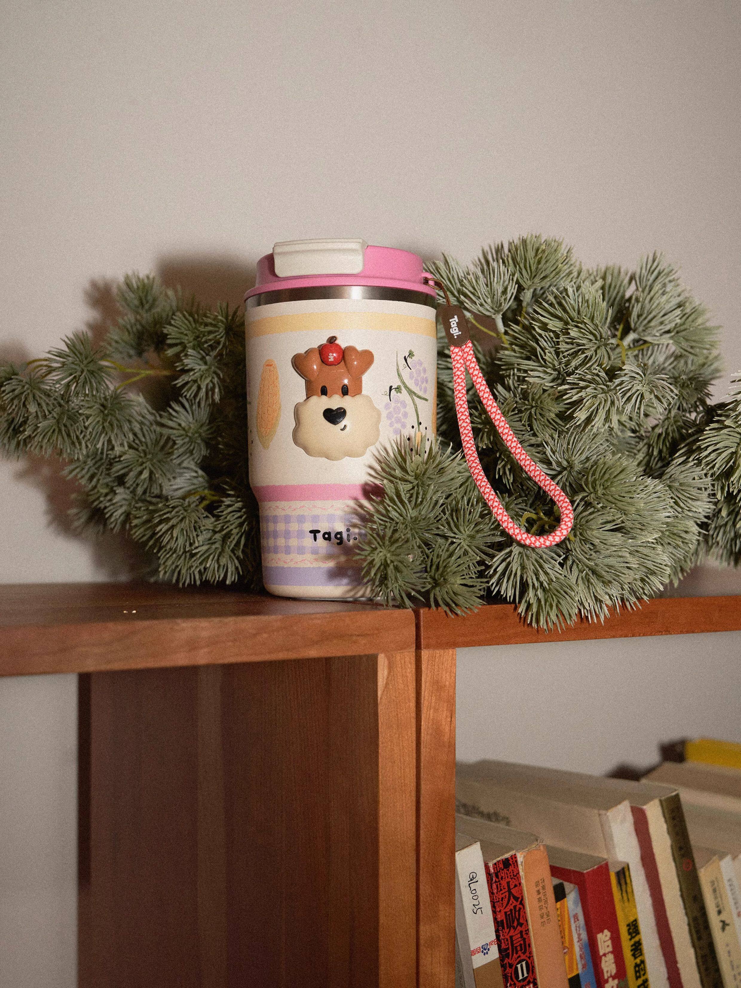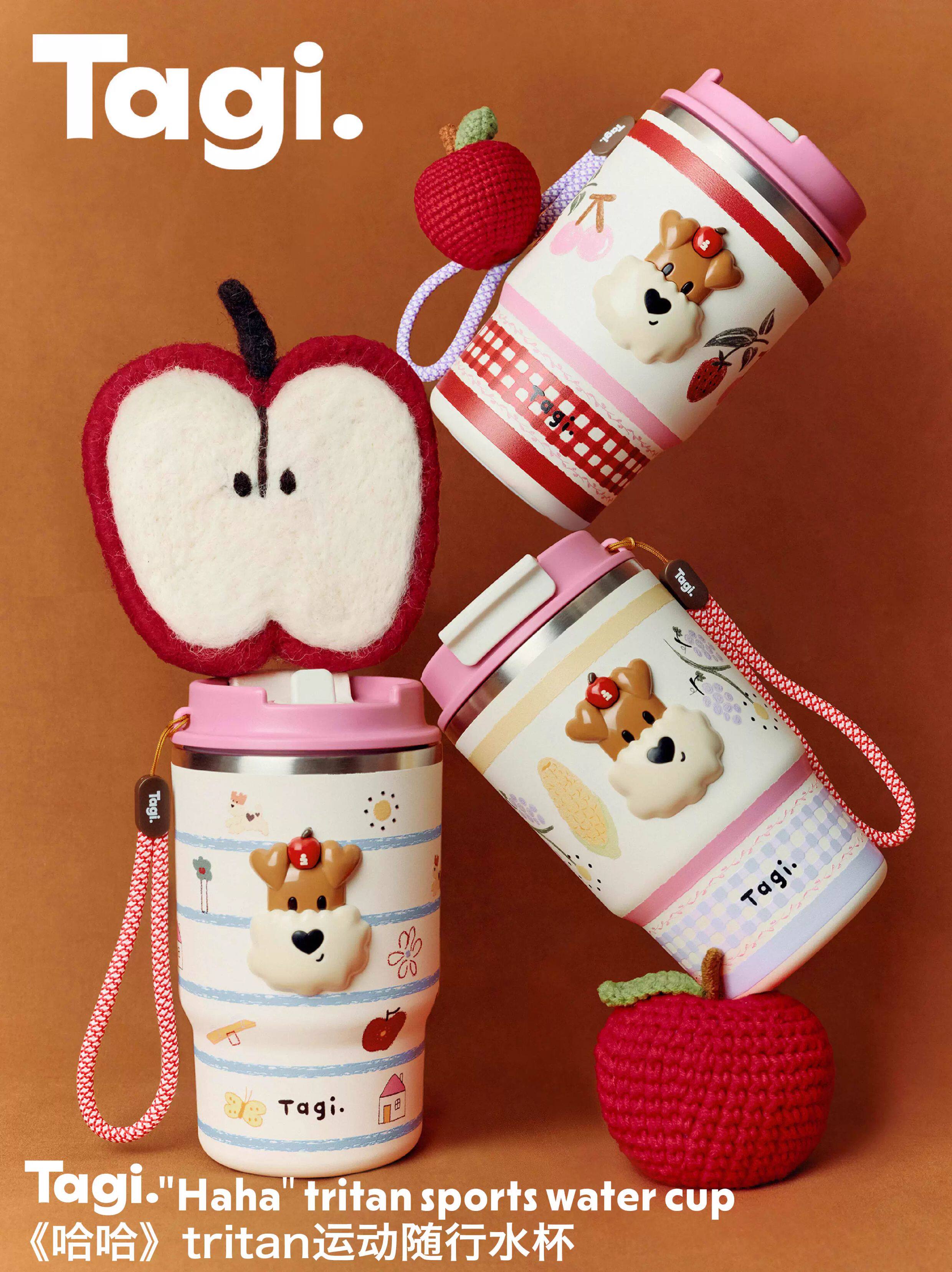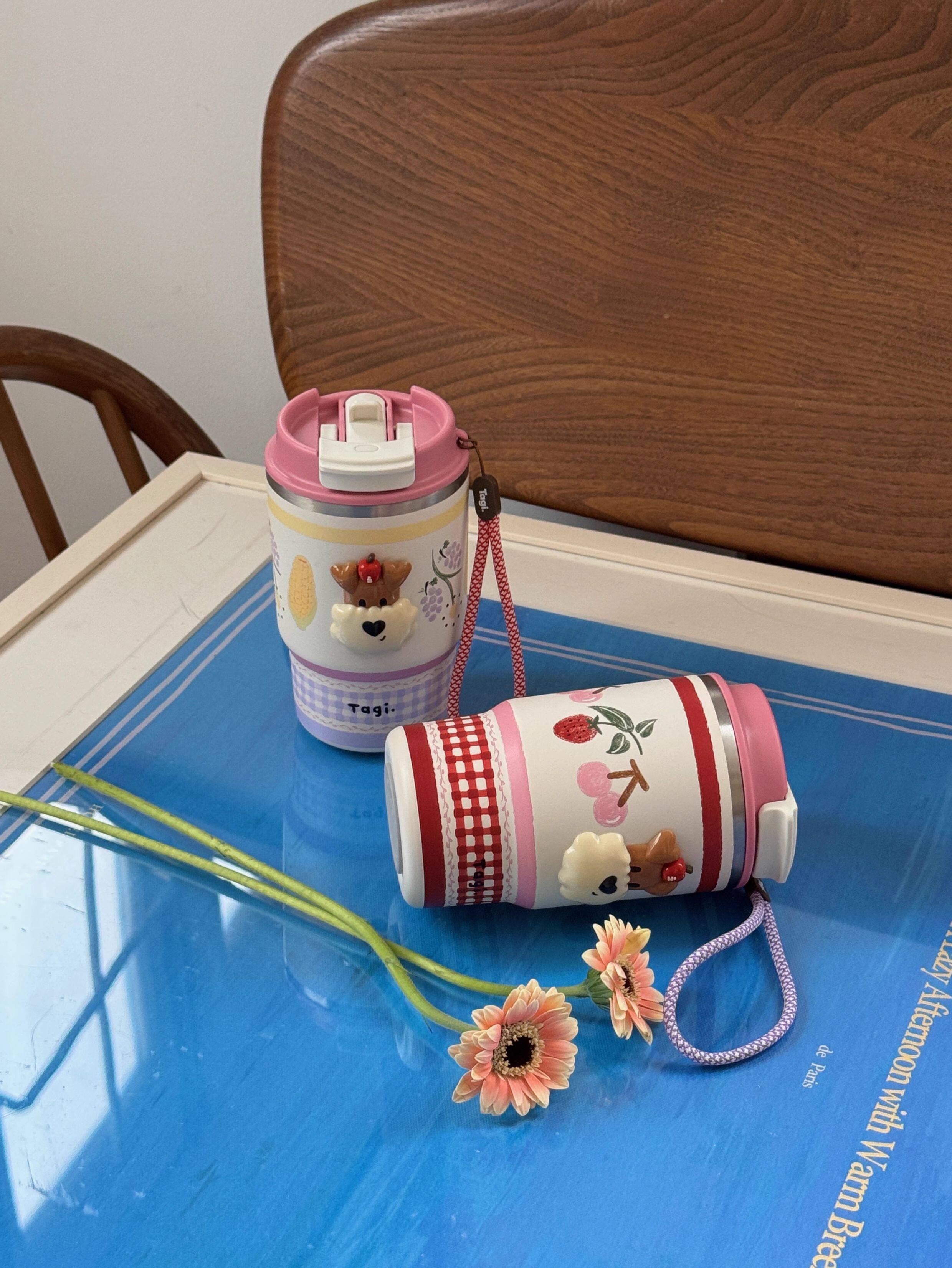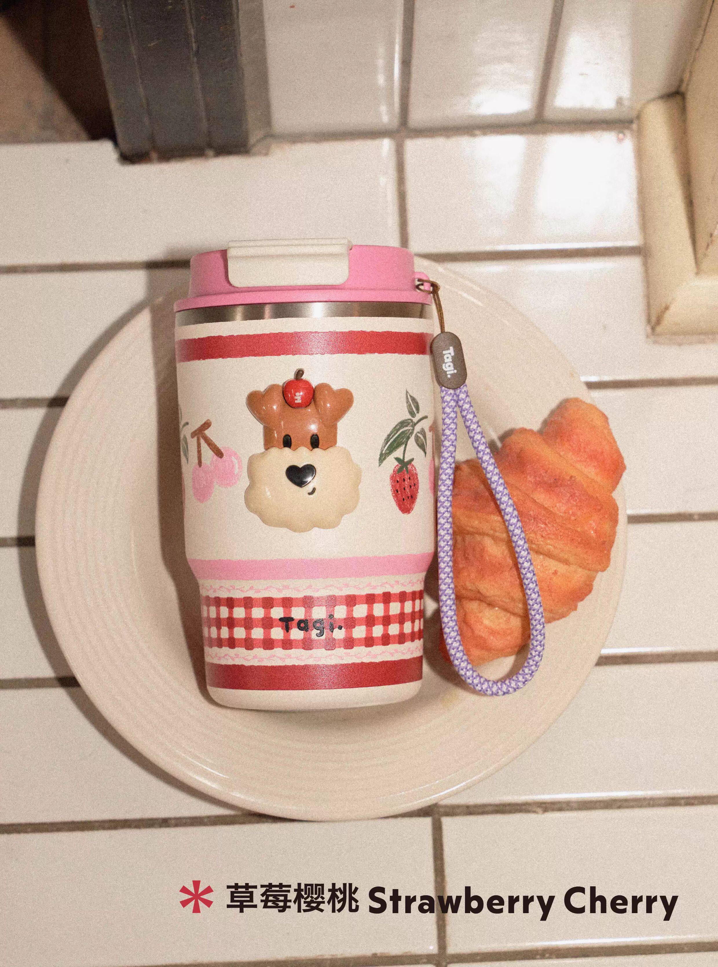 Tagi 爆米花双吸管咖啡保温杯 双饮吸管便携手拎不锈钢随行保冷保温杯随行杯
