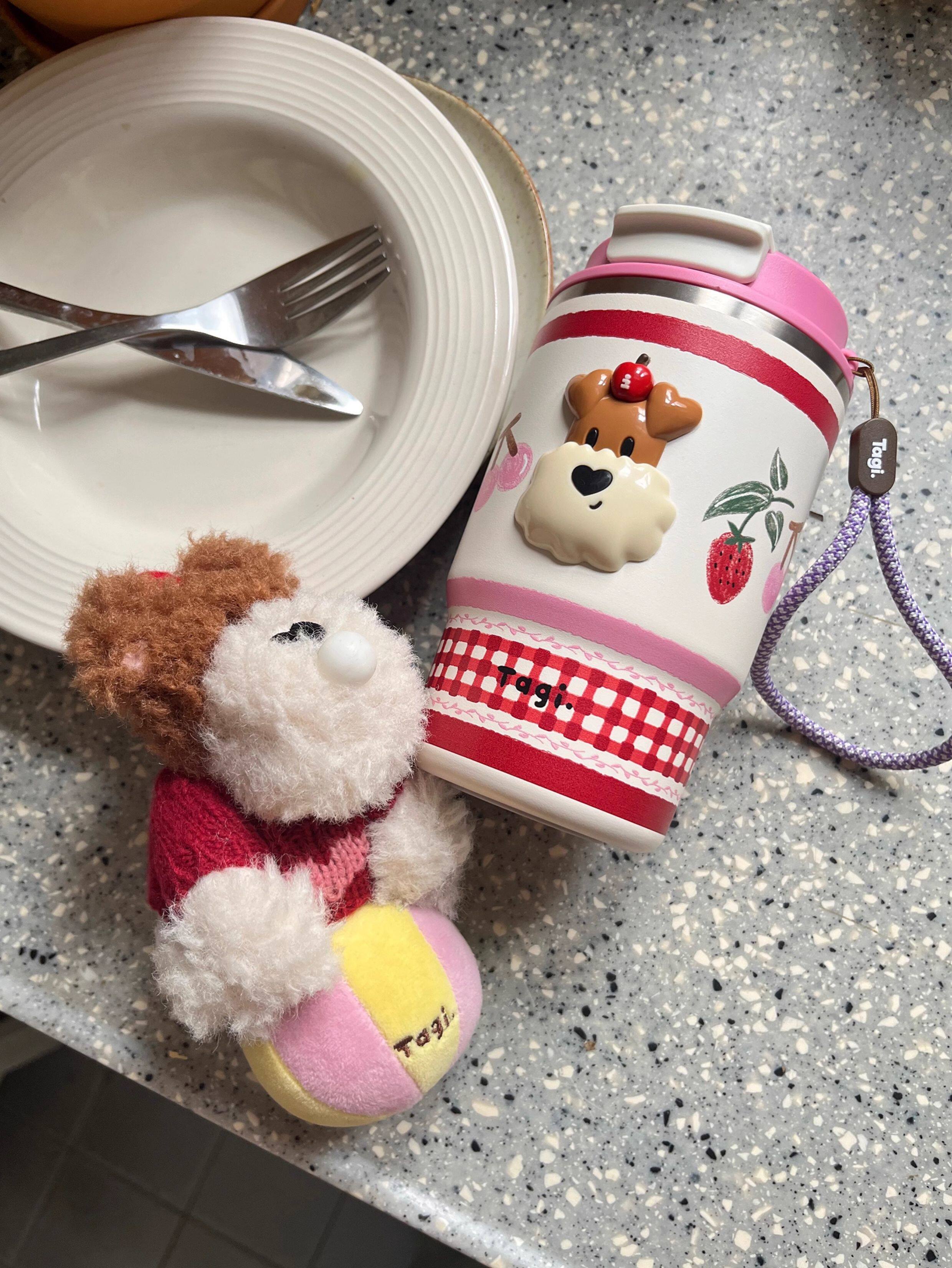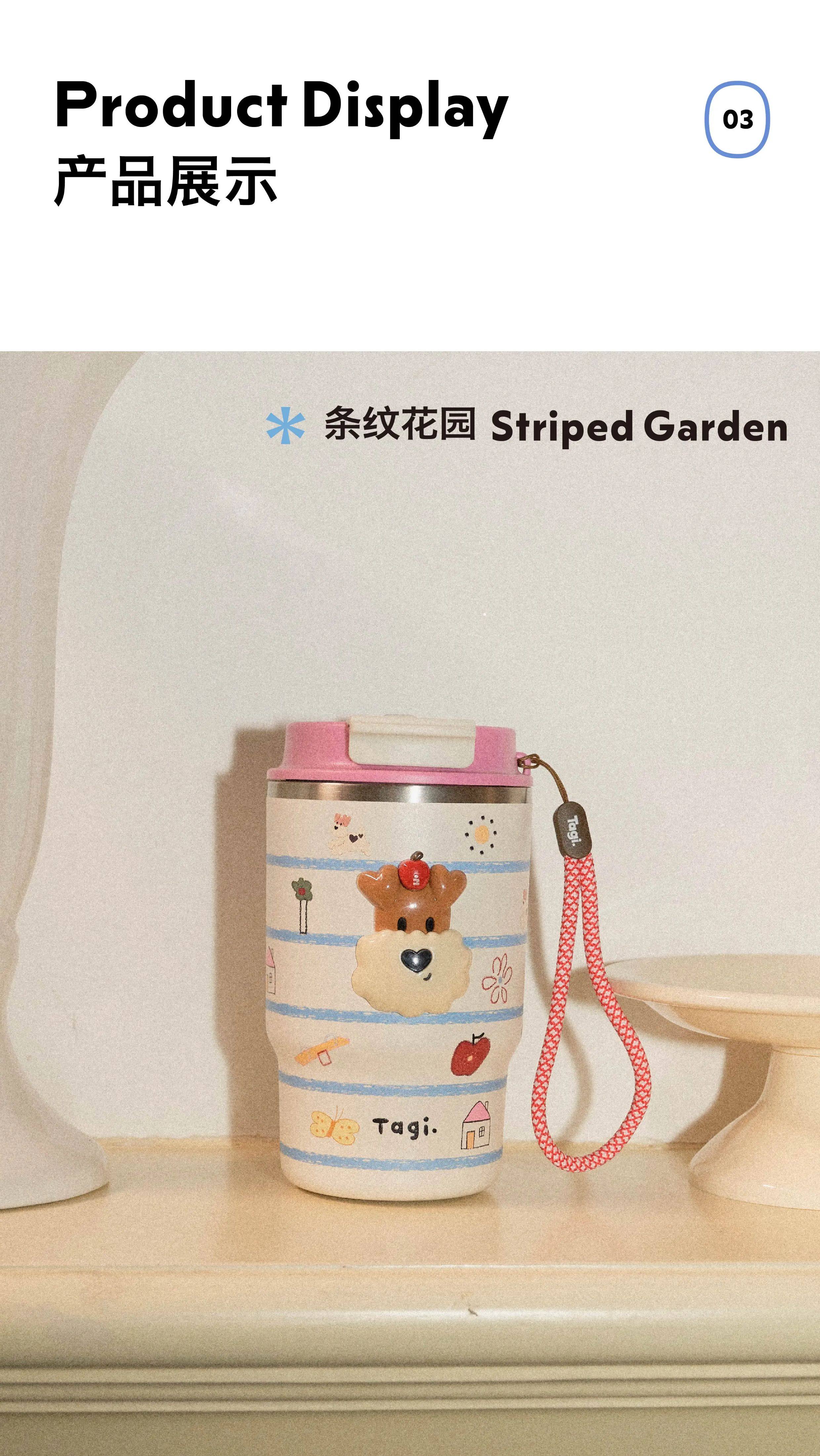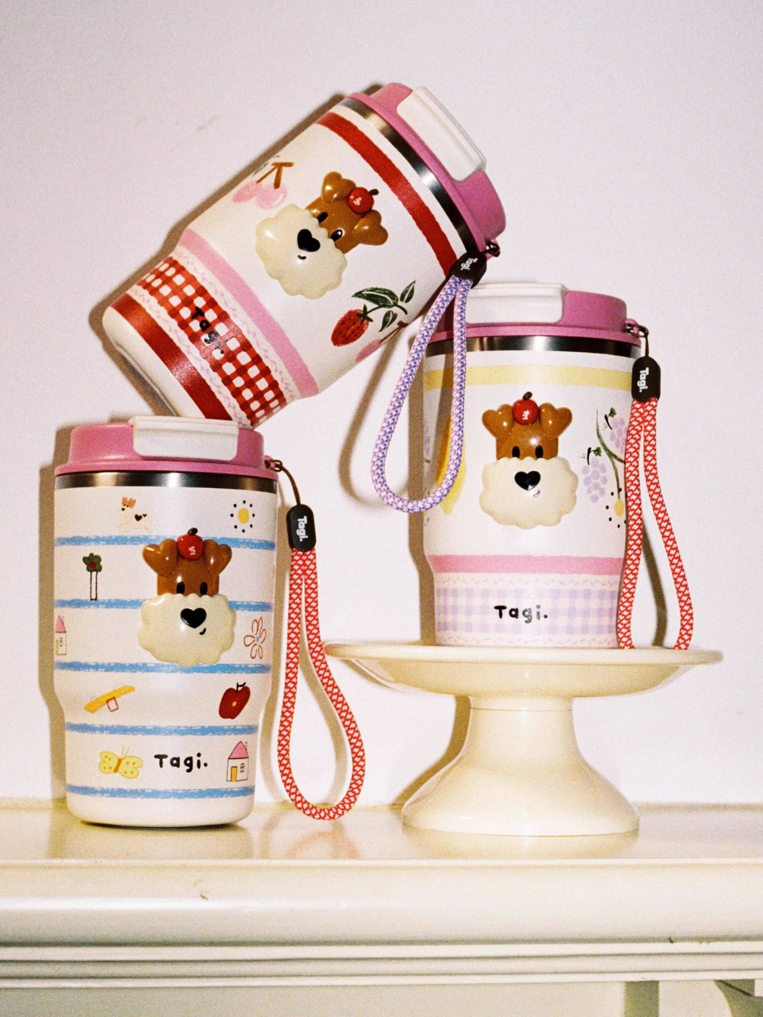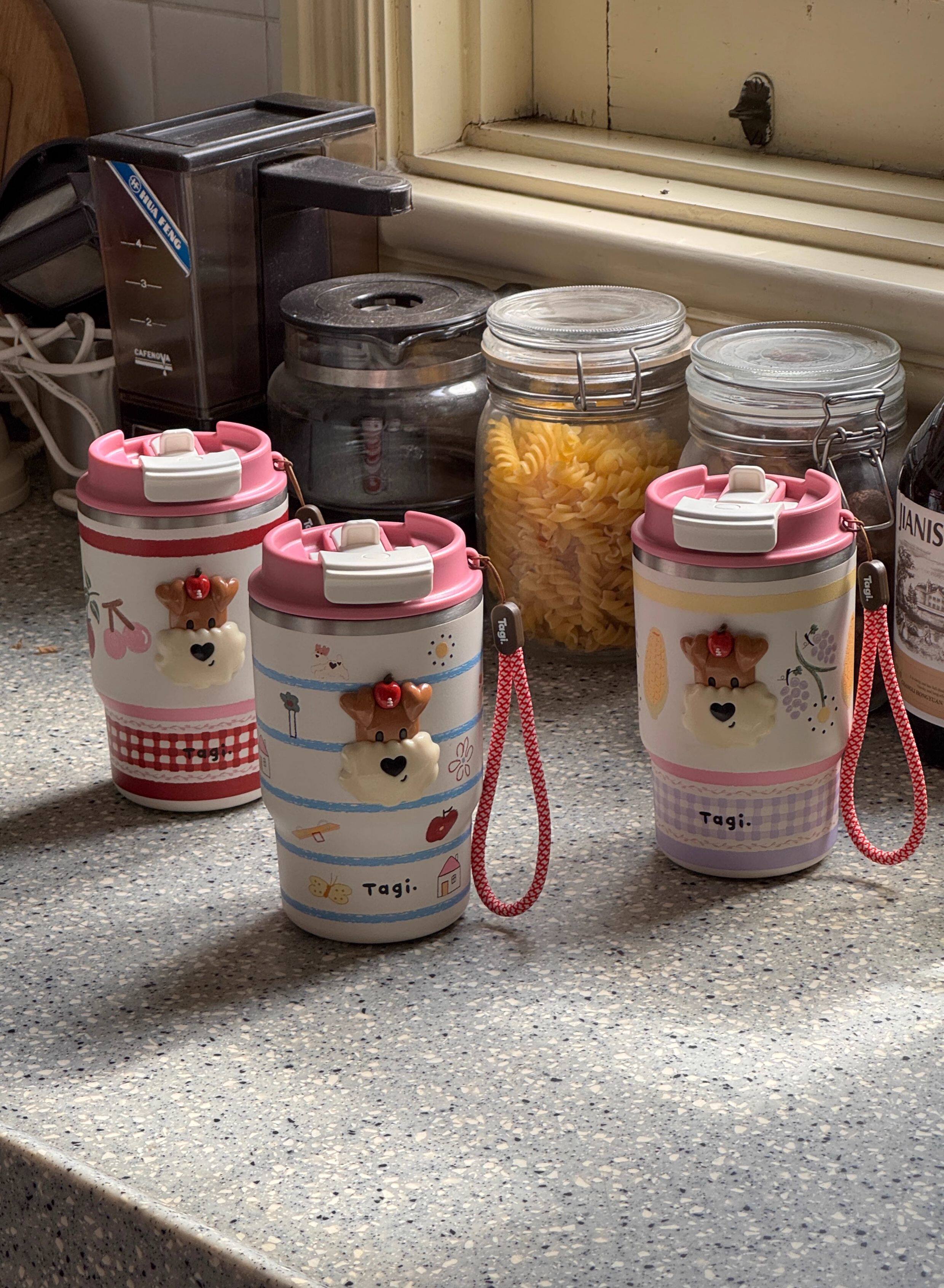 Tagi 爆米花双吸管咖啡保温杯 双饮吸管便携手拎不锈钢随行保冷保温杯随行杯