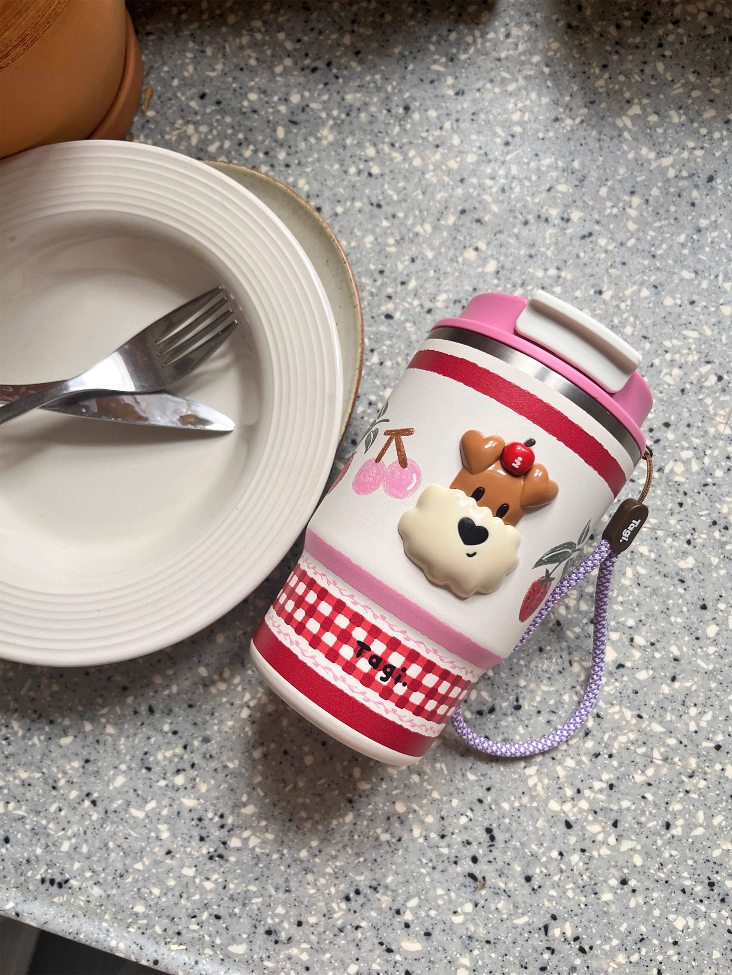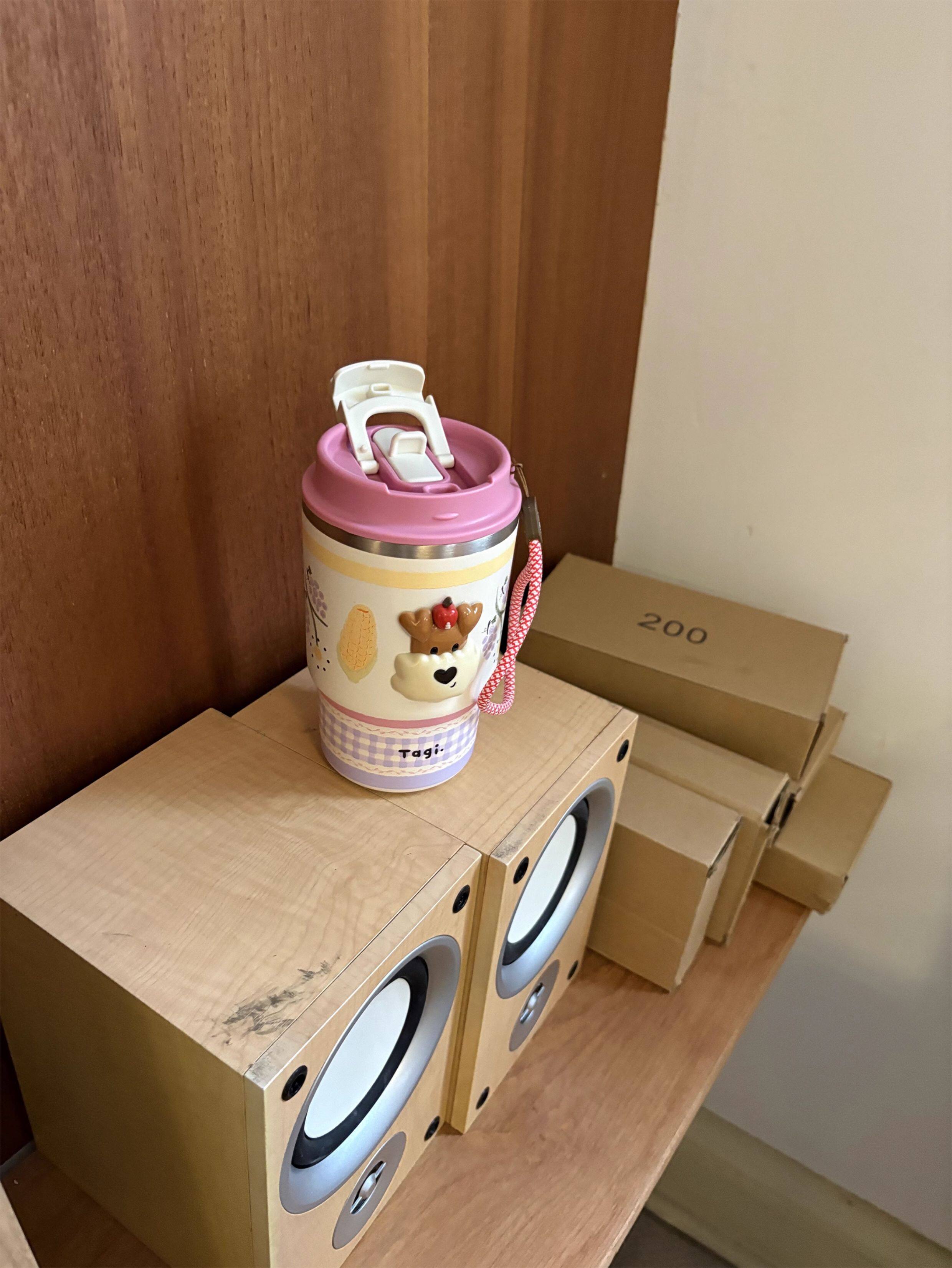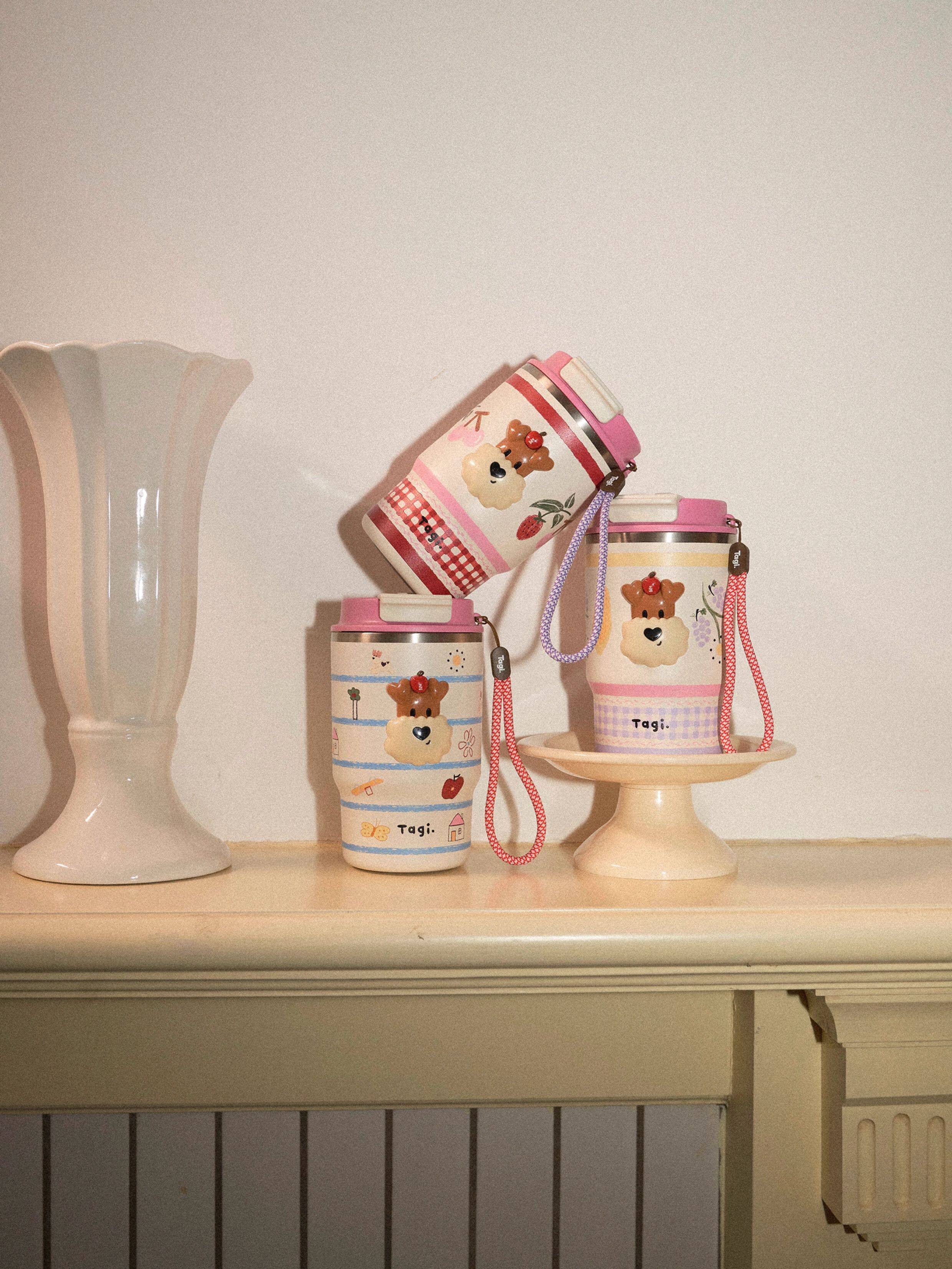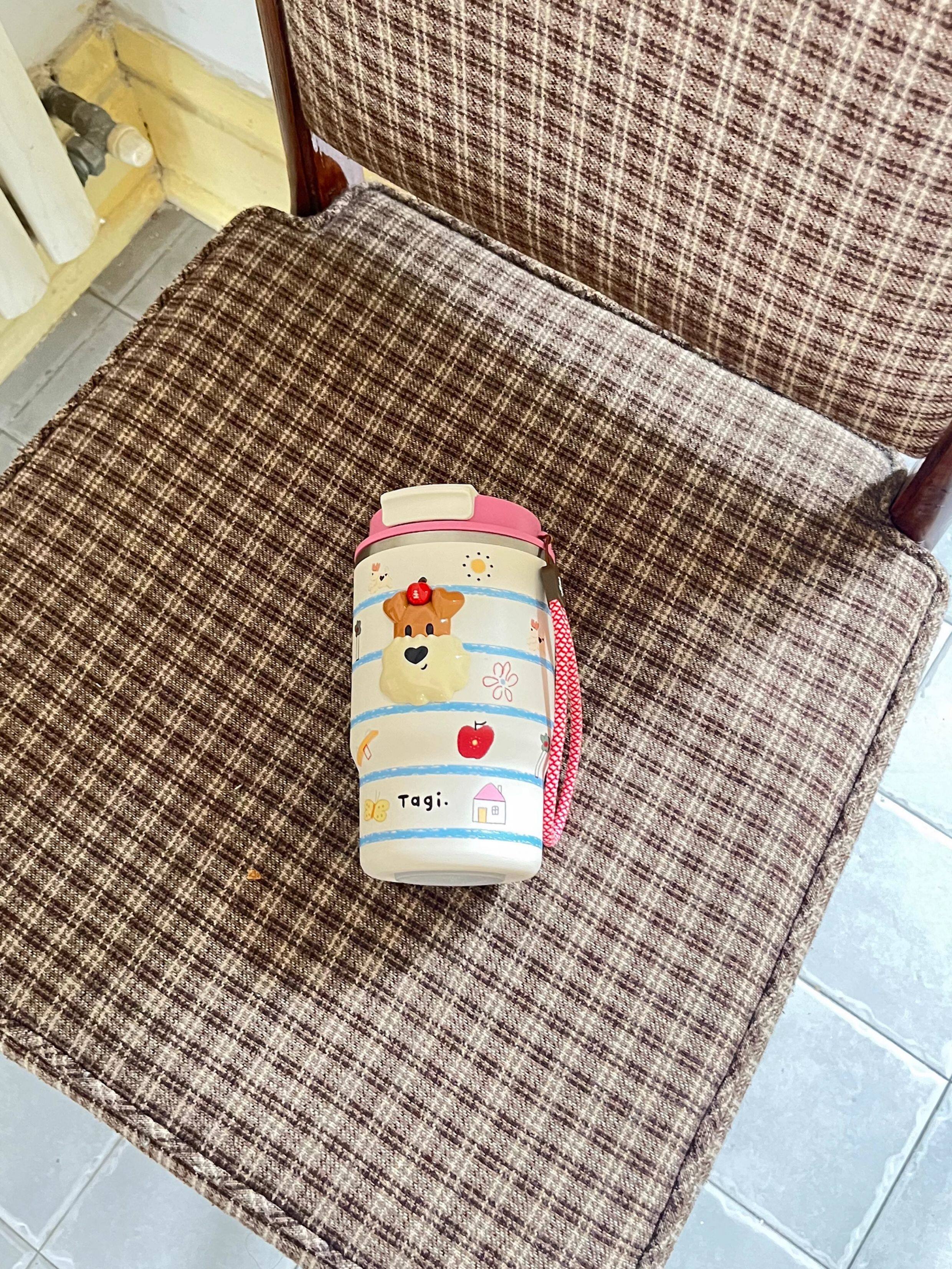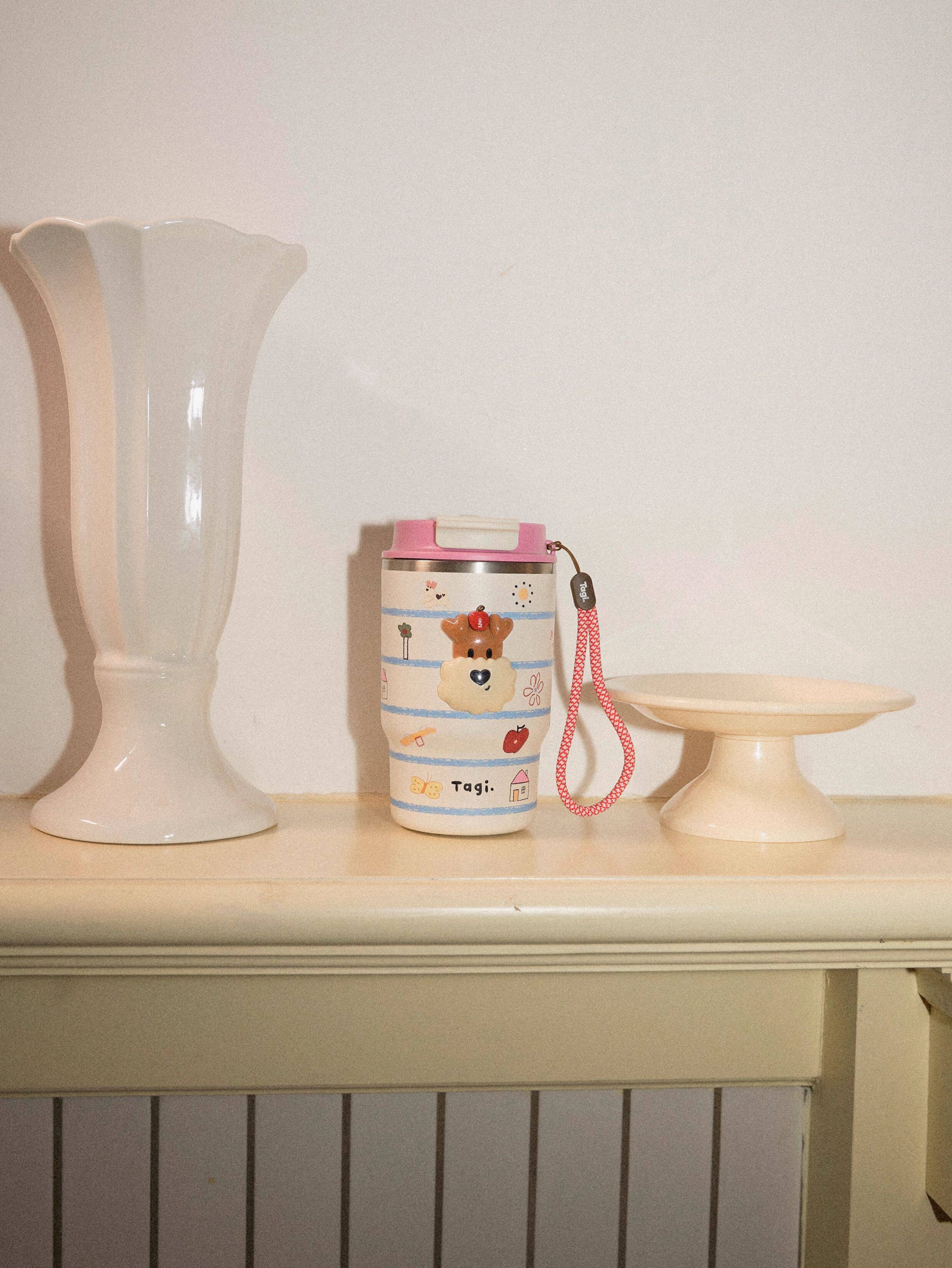 Tagi 爆米花双吸管咖啡保温杯 双饮吸管便携手拎不锈钢随行保冷保温杯随行杯