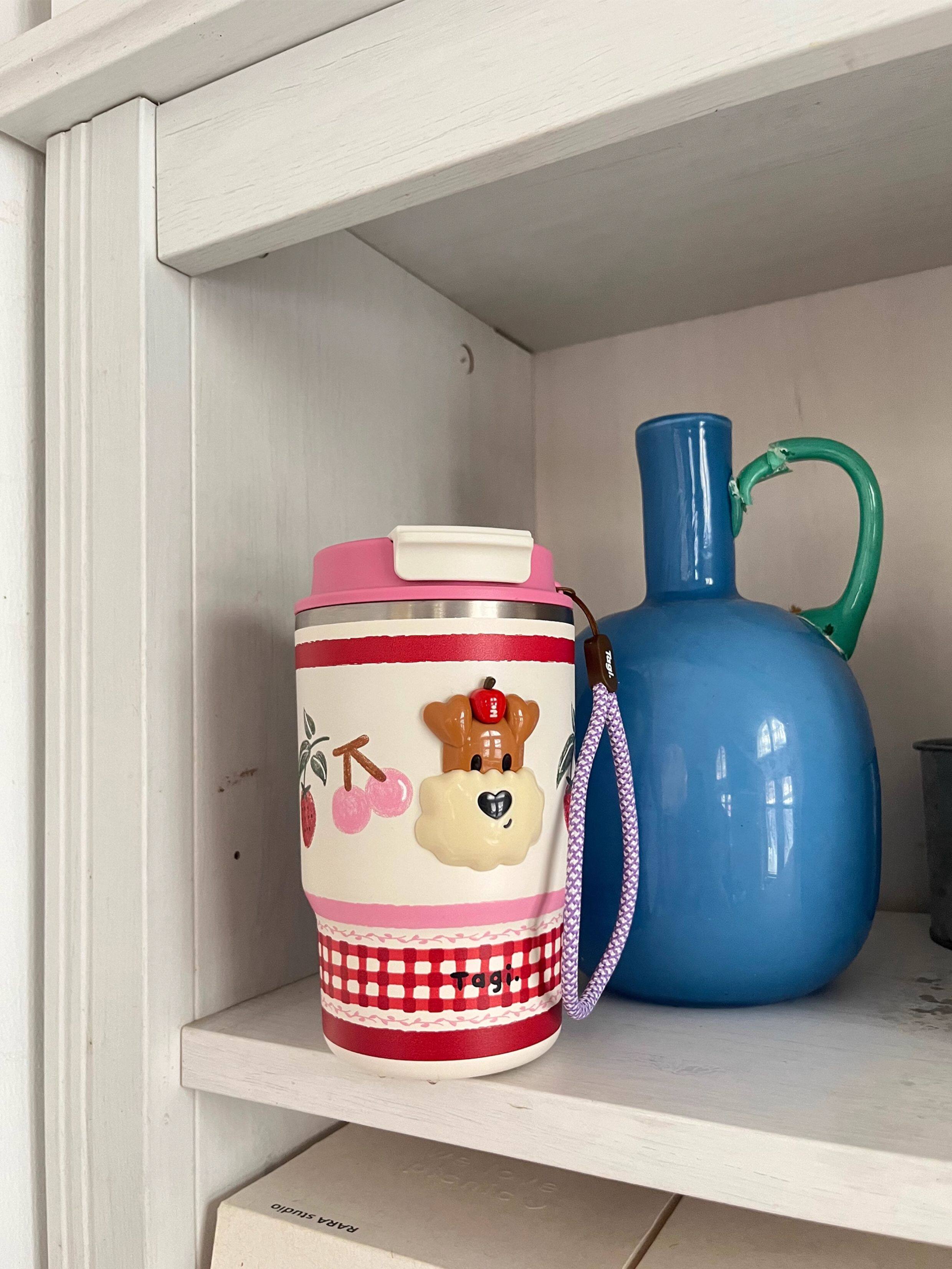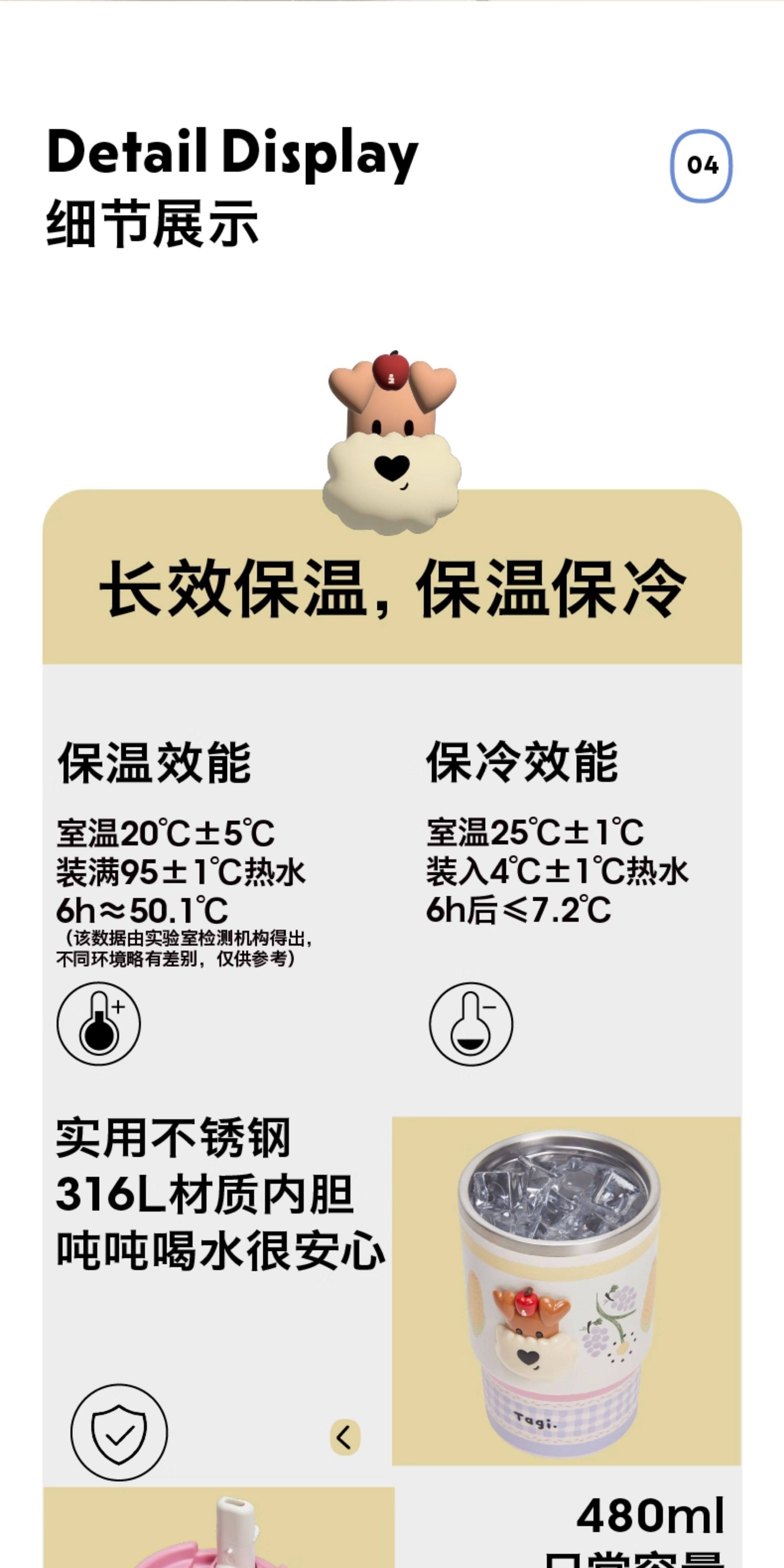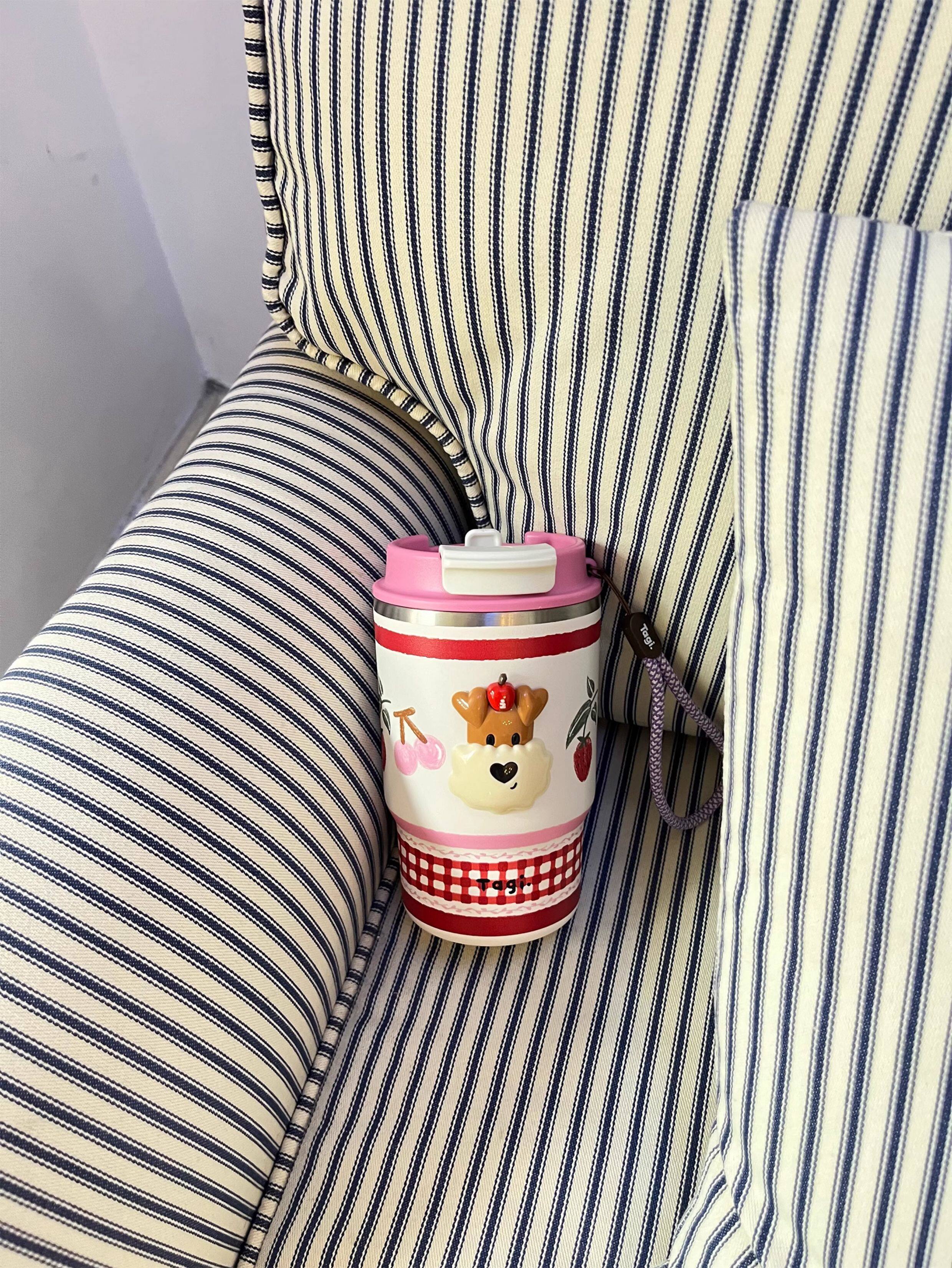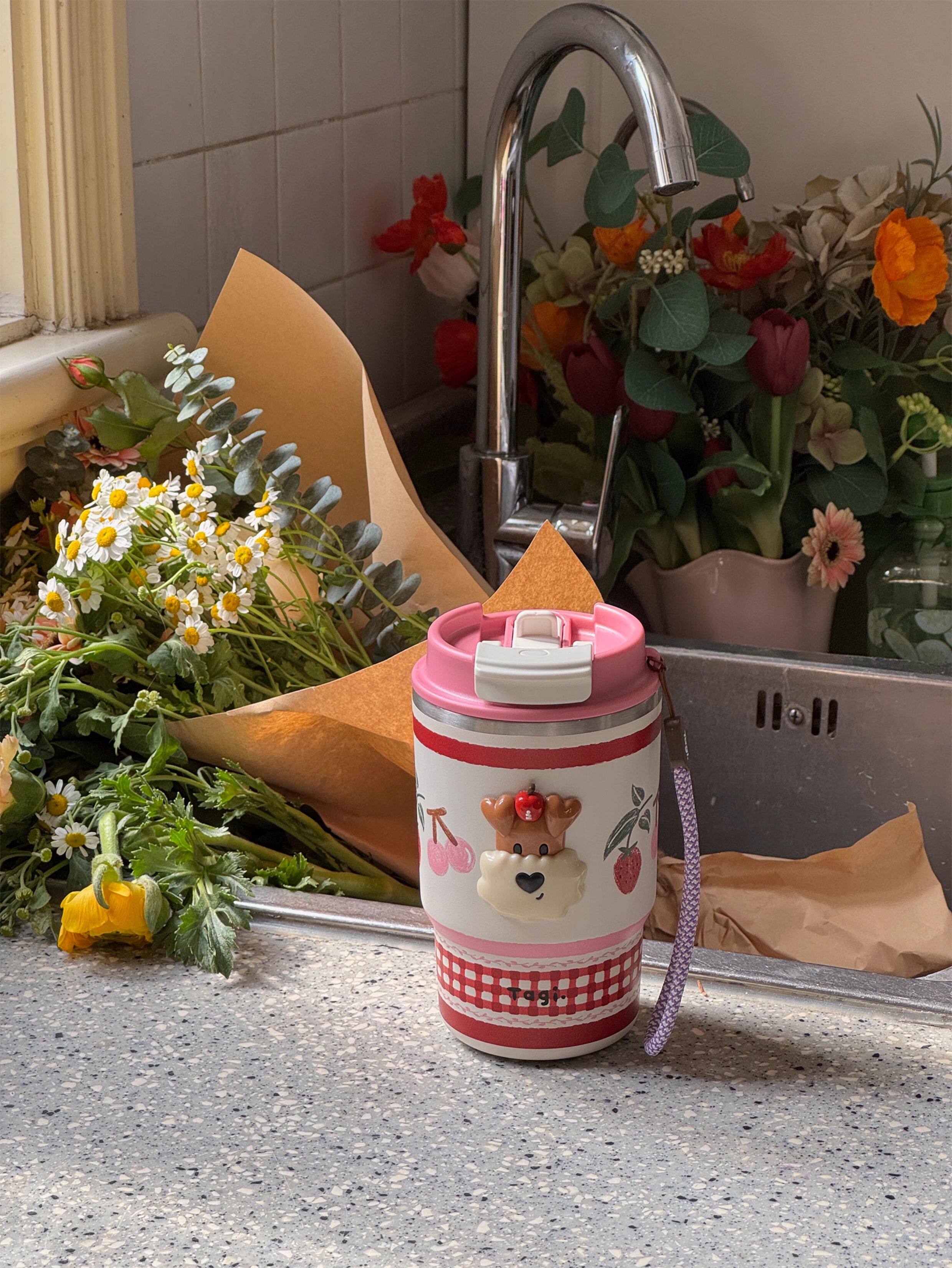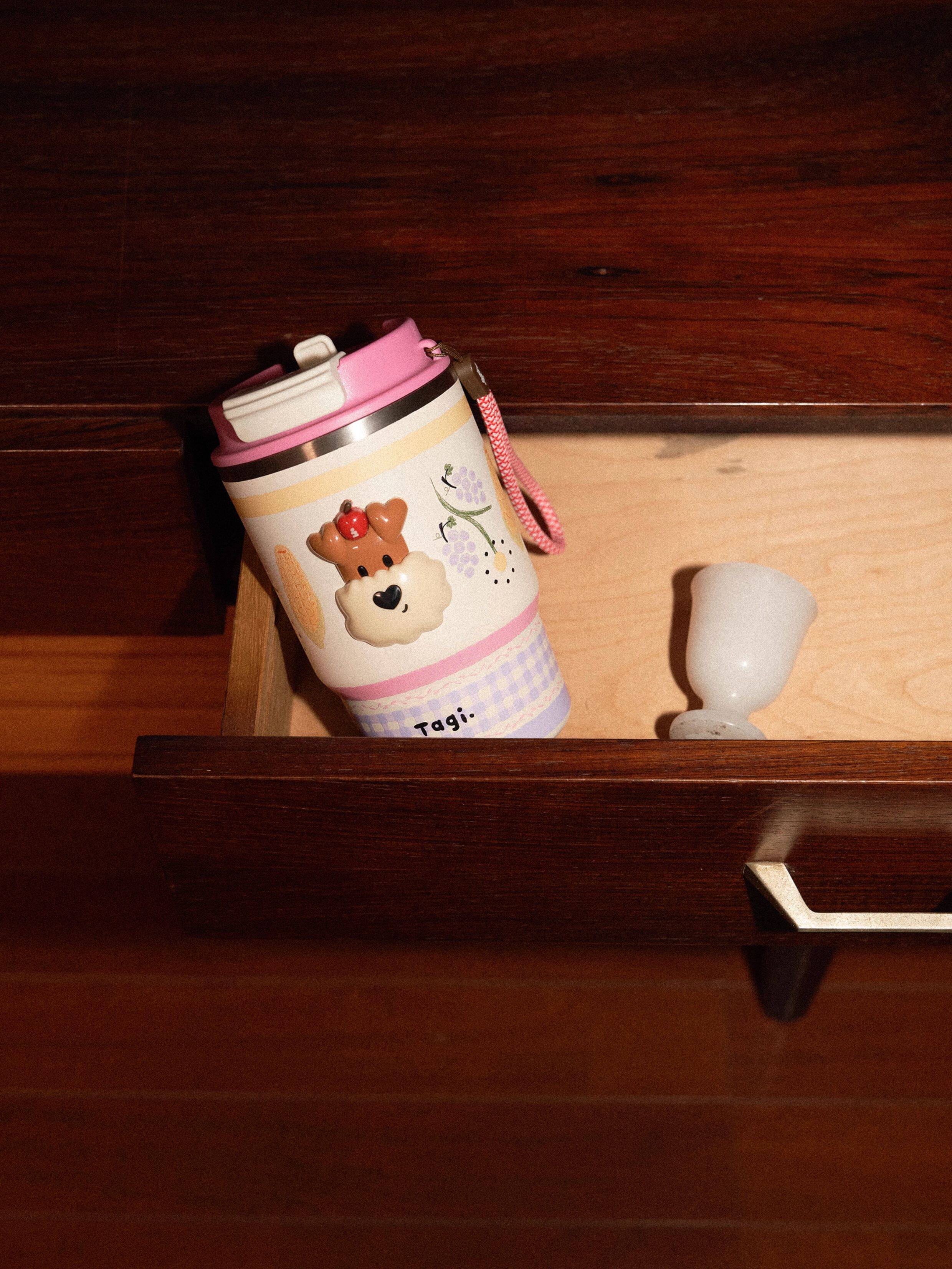 Tagi 爆米花双吸管咖啡保温杯 双饮吸管便携手拎不锈钢随行保冷保温杯随行杯
