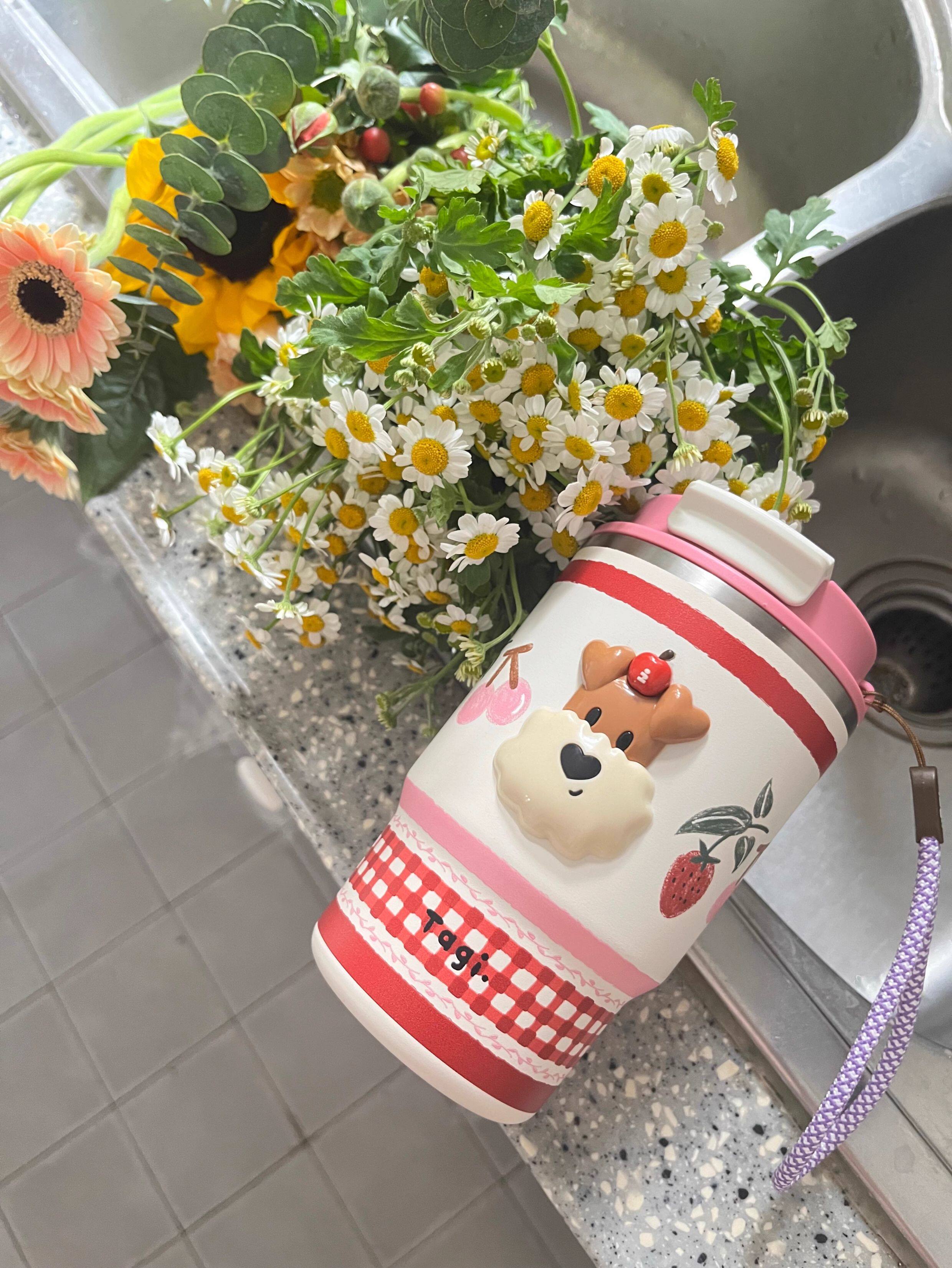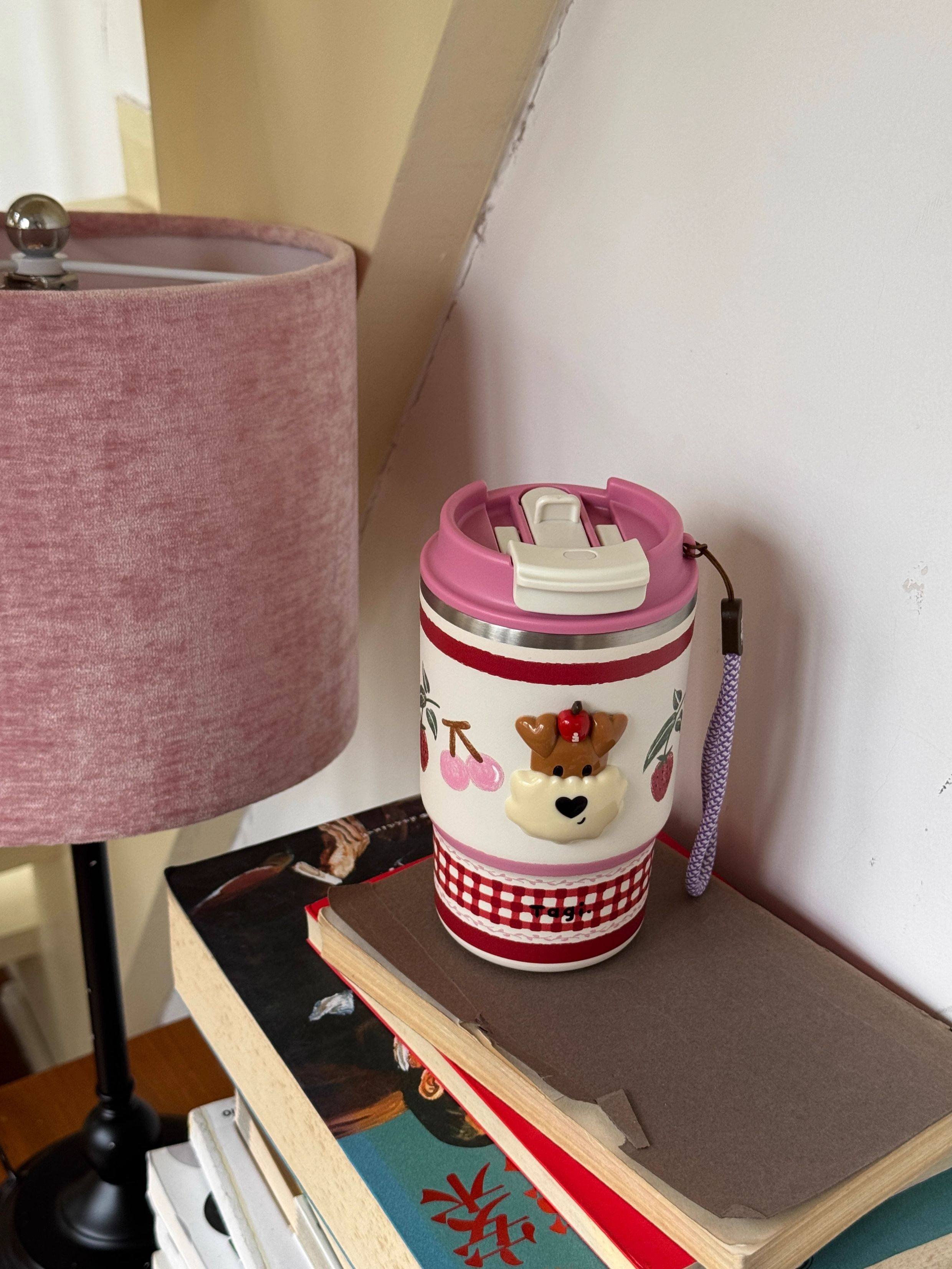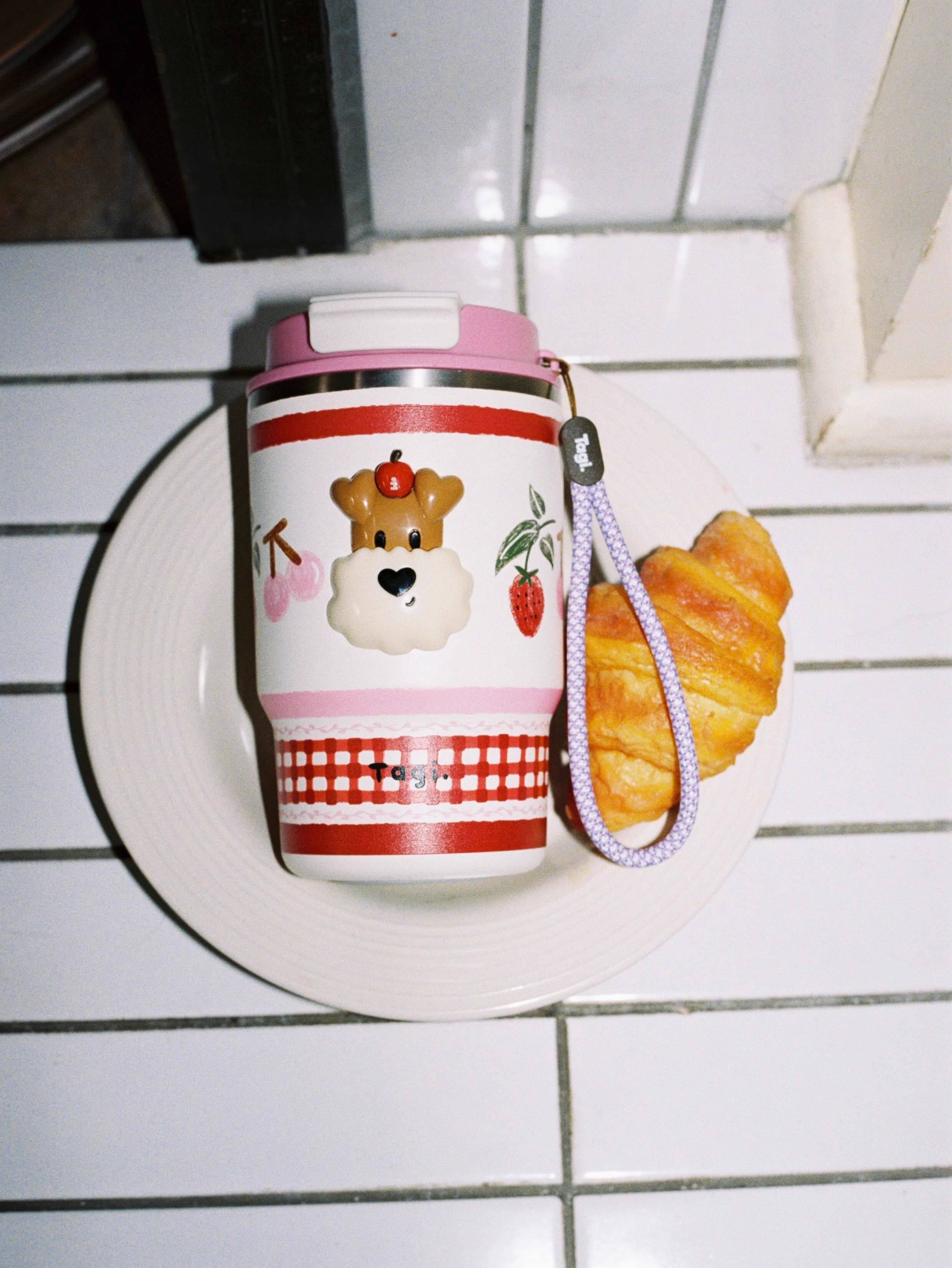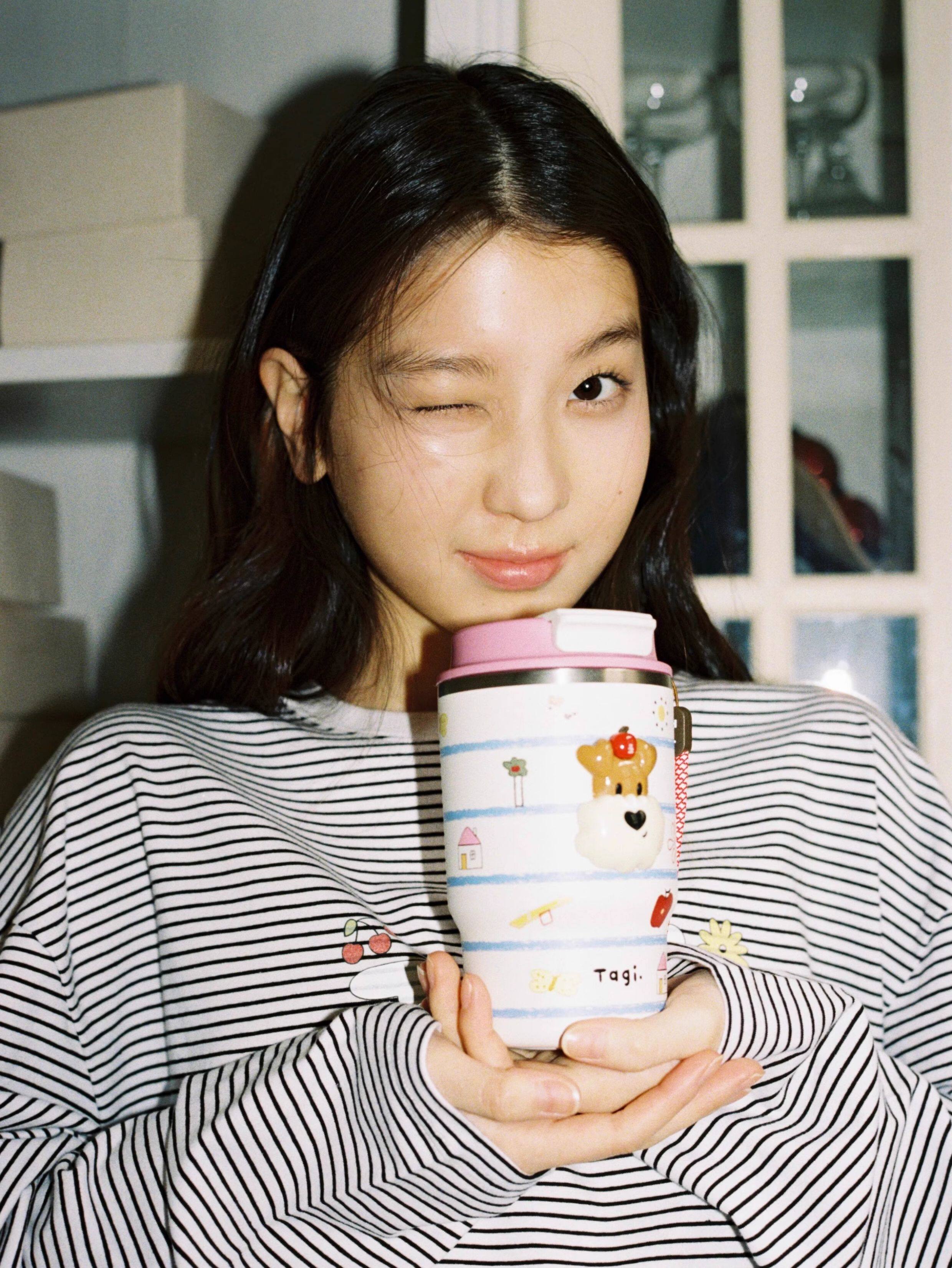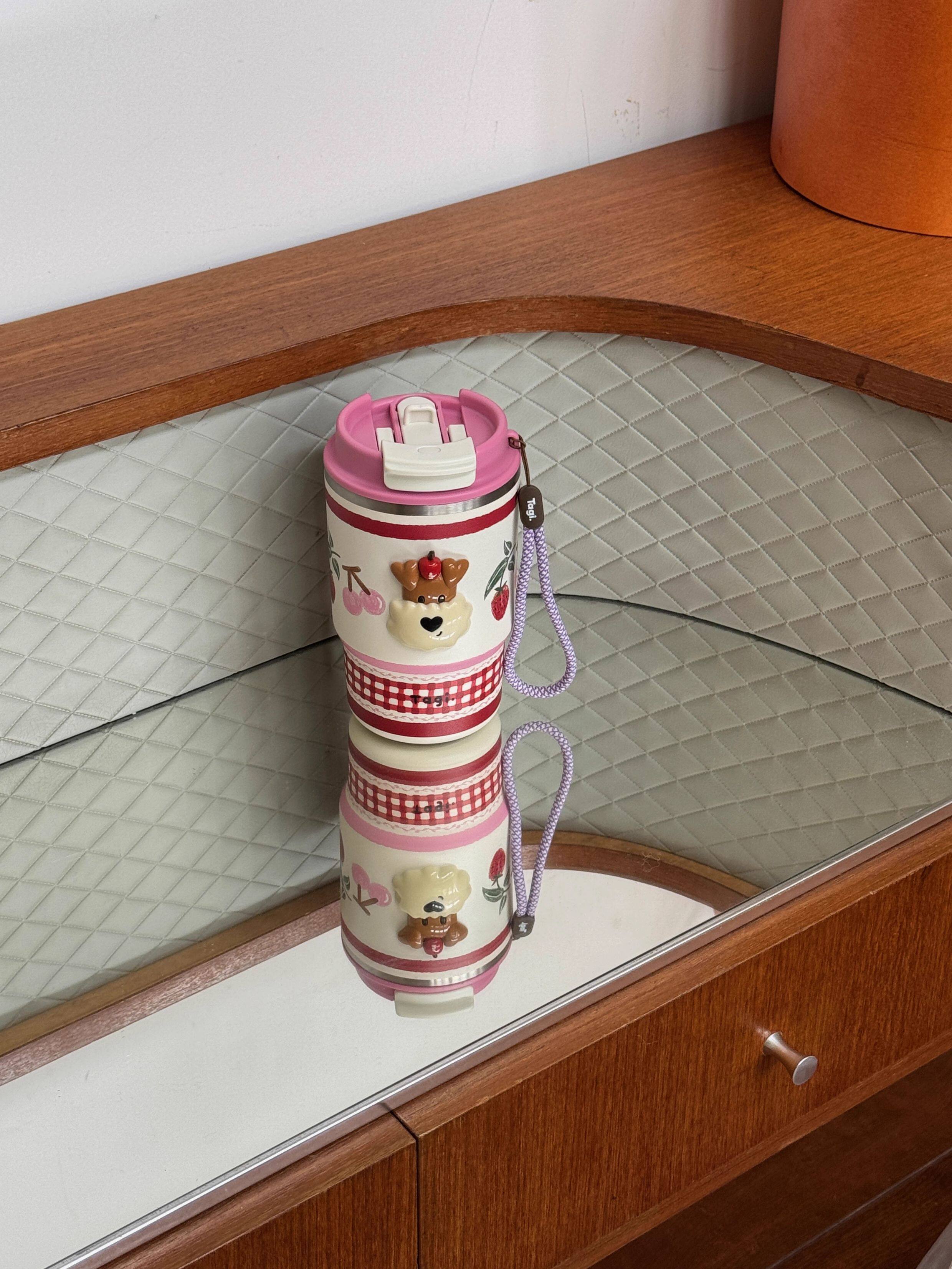 Tagi 爆米花双吸管咖啡保温杯 双饮吸管便携手拎不锈钢随行保冷保温杯随行杯