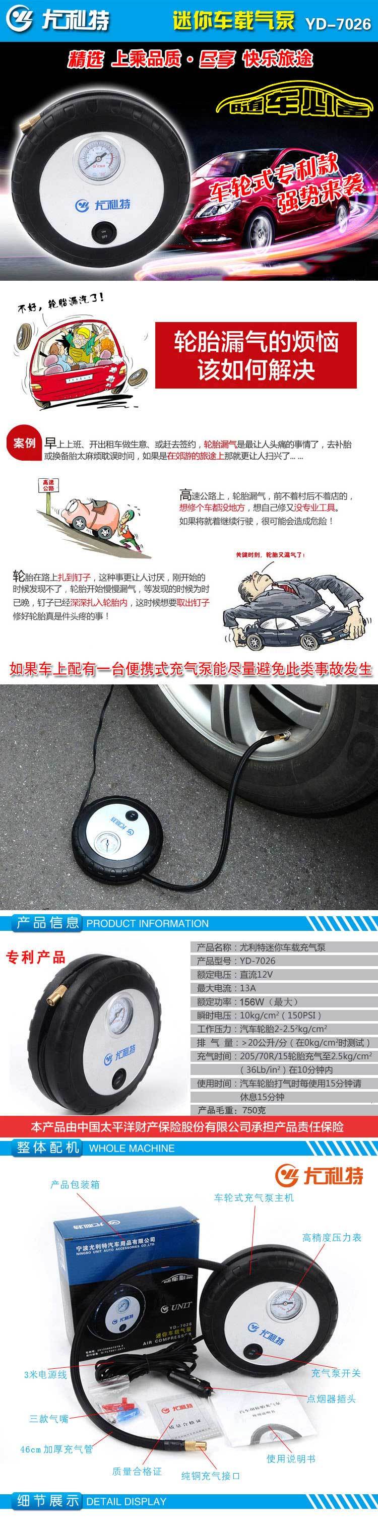 尤利特 迷你车载充气泵 YD-7026