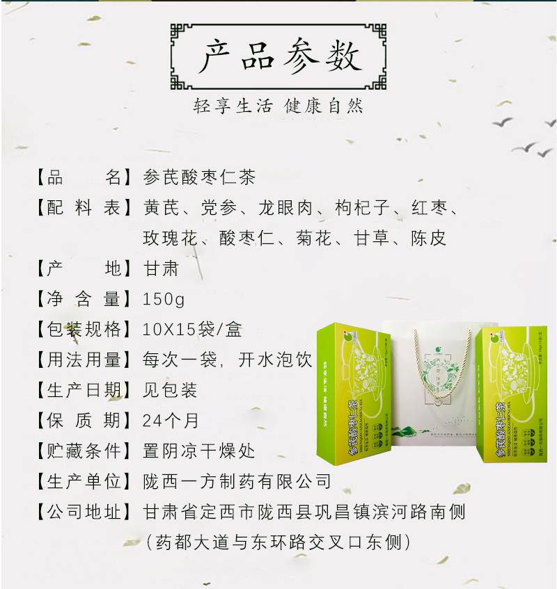 YFZY-参芪酸枣仁茶10g*15袋/盒【大宗供货请联系客服】