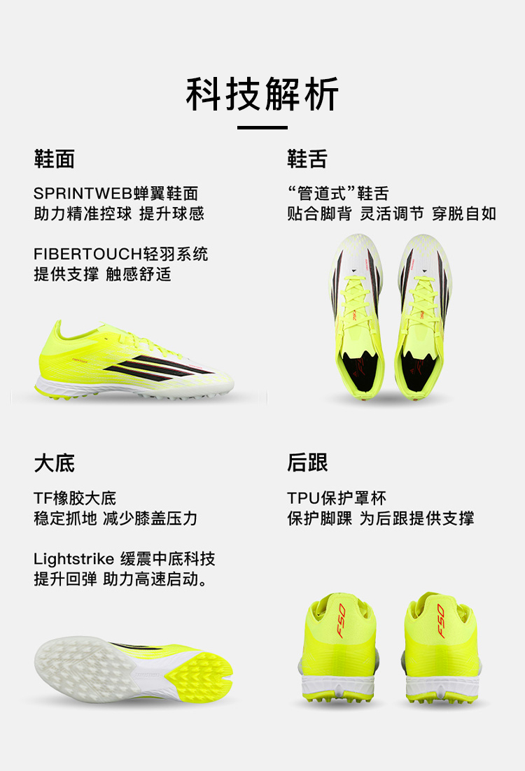 小李子ADIDAS阿迪达斯 F50 次高端TF碎钉成人训练足球鞋男JR8943