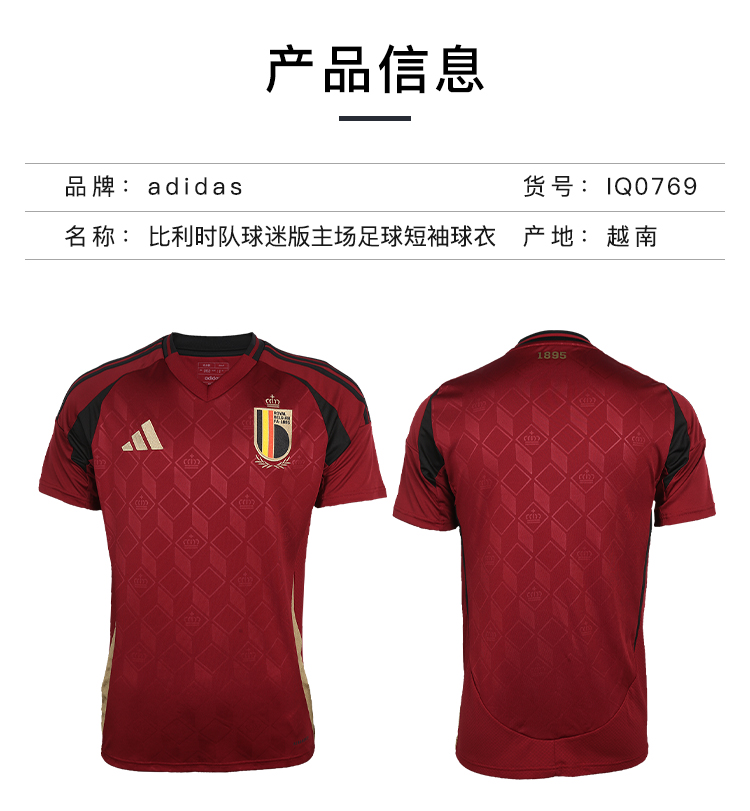 小李子ADIDAS阿迪达斯欧洲杯2024比利时队球迷版主场球衣成人男IQ0769