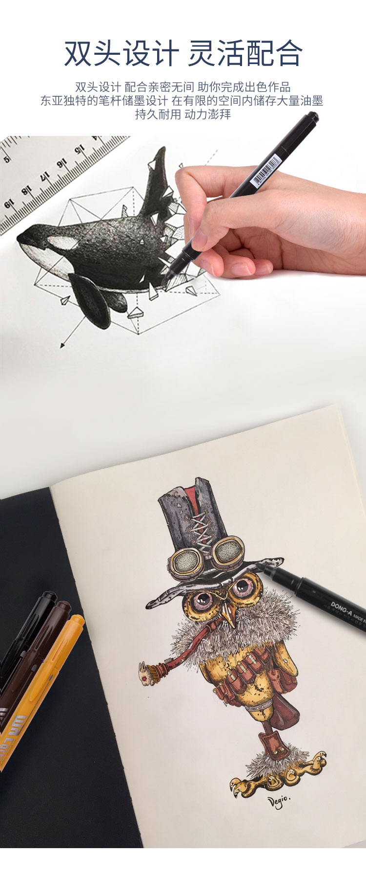 DONG-A双头单色水彩勾线笔MC2文具绘画美术工具