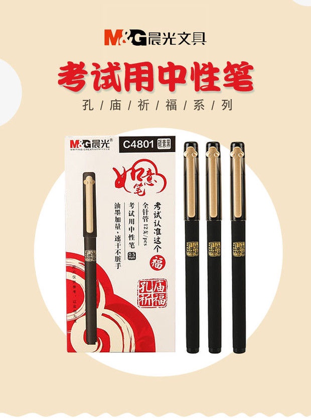 晨光孔庙祈福中性笔AGPC4801学生考试专用碳素黑0.5mm油墨加量速干不脏手全针管如意笔