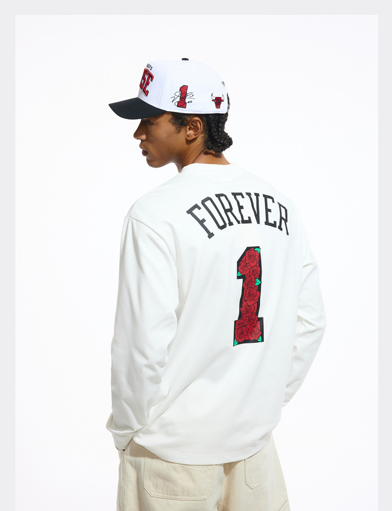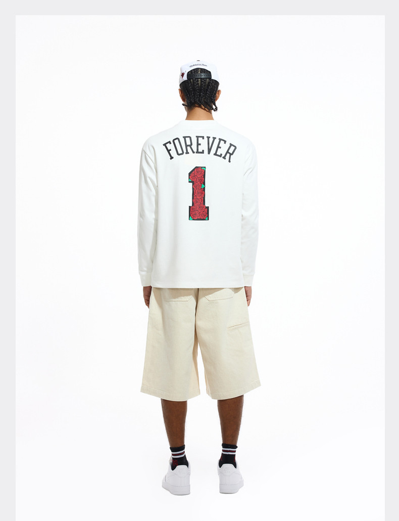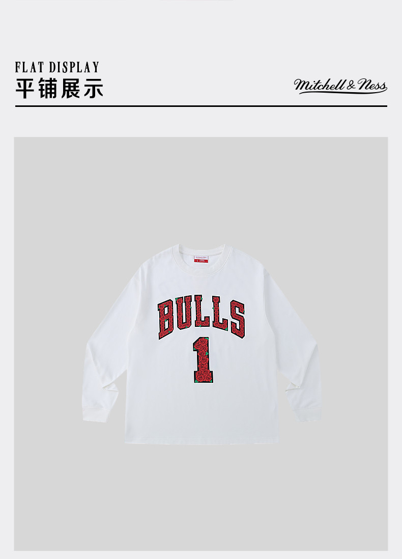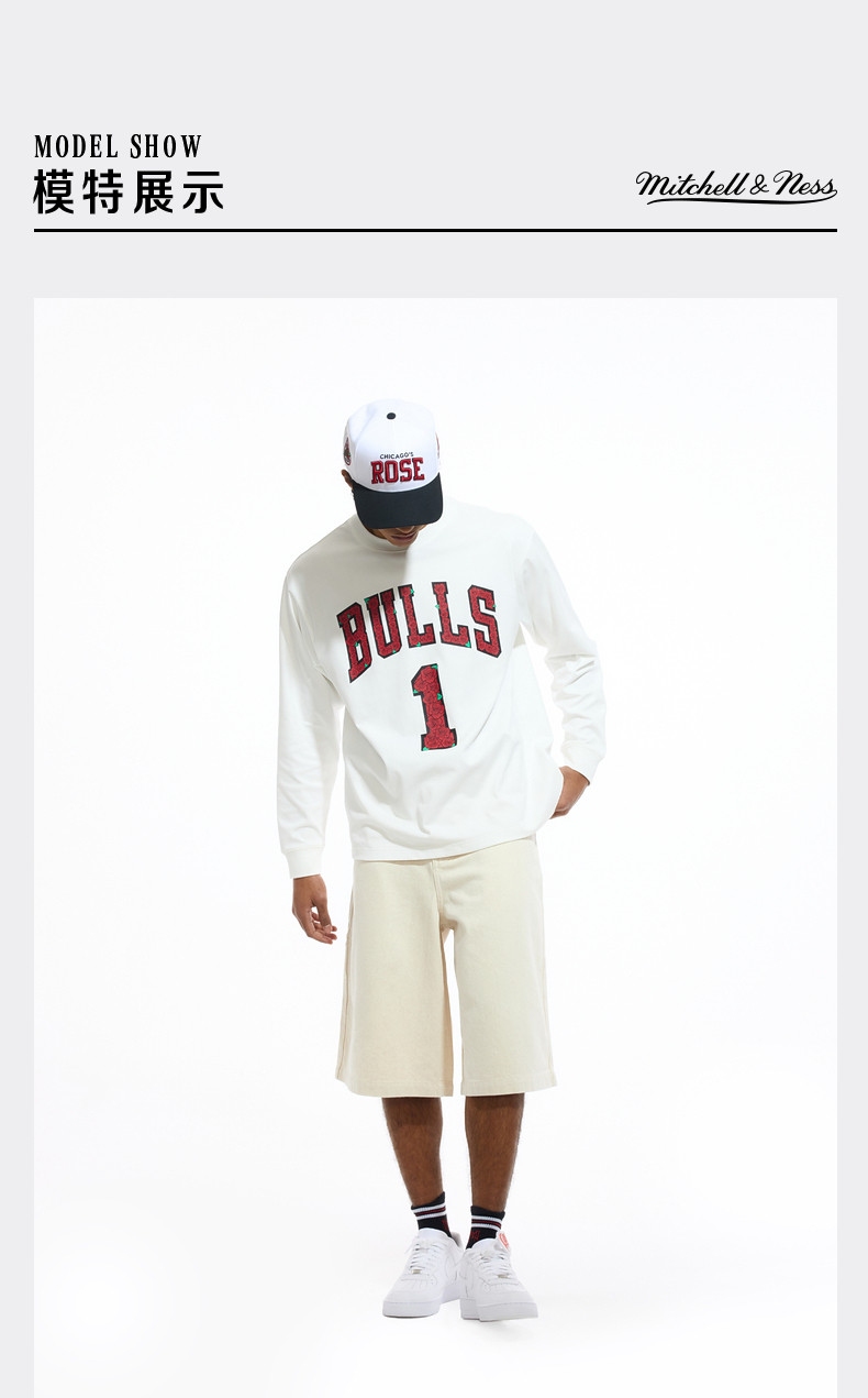 Mitchell&ness 公牛队罗斯退役纪念版 白色长袖T恤
