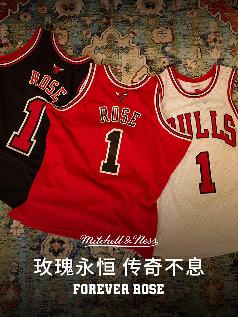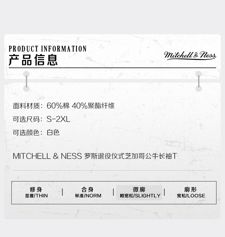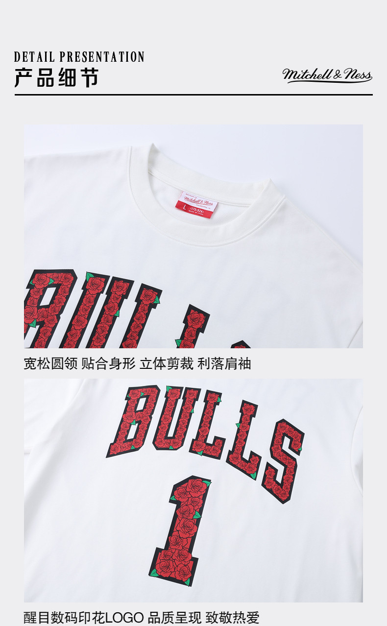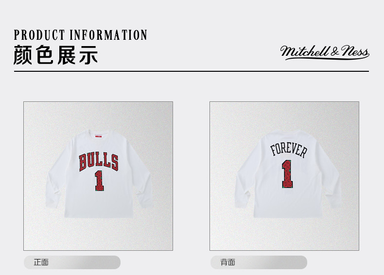 Mitchell&ness 公牛队罗斯退役纪念版 白色长袖T恤