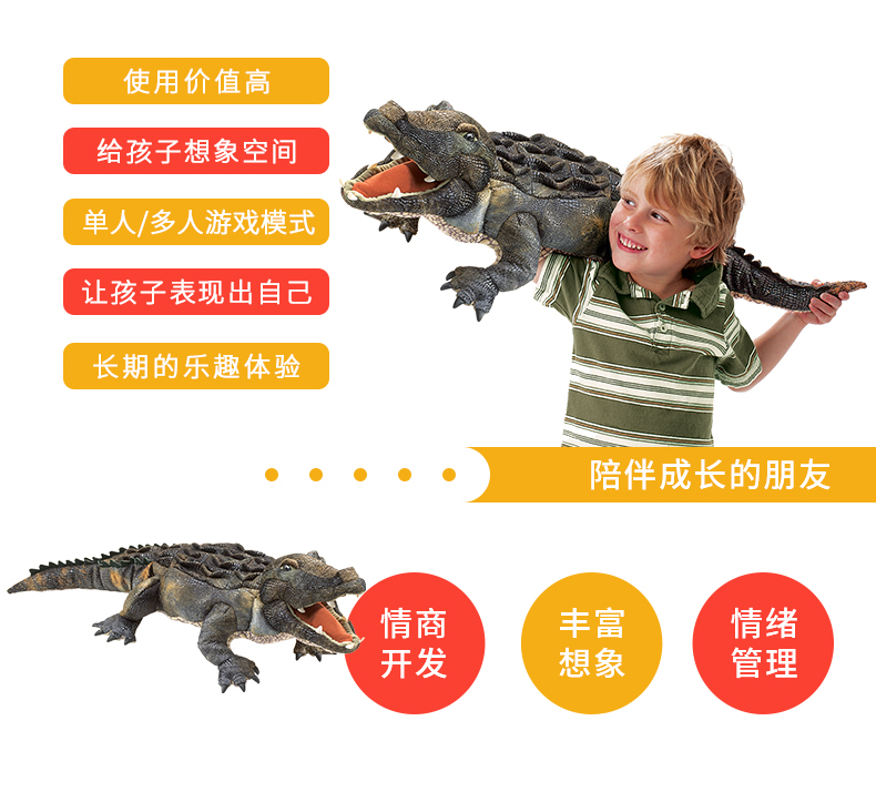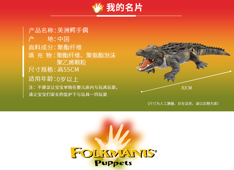 Folkmanis Puppets美洲鳄玩具/2921玩偶毛绒玩具礼物