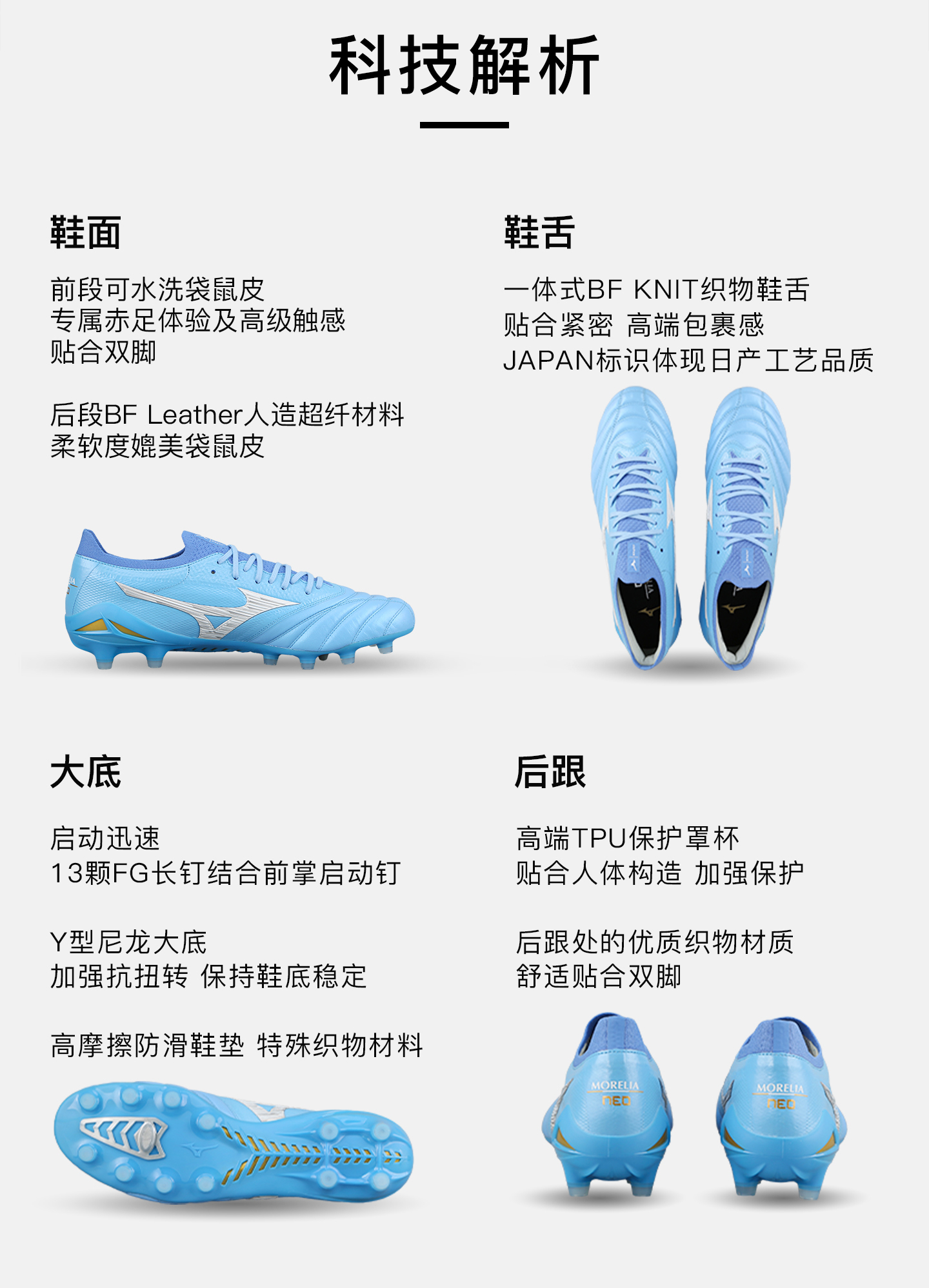 小李子Mizuno美津浓莫雷拉Morelia Neo 4 高端FG长钉成人袋鼠皮训练足球鞋男