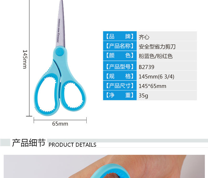 齐心省力剪刀B2739裁纸刀壁纸刀办公学生用