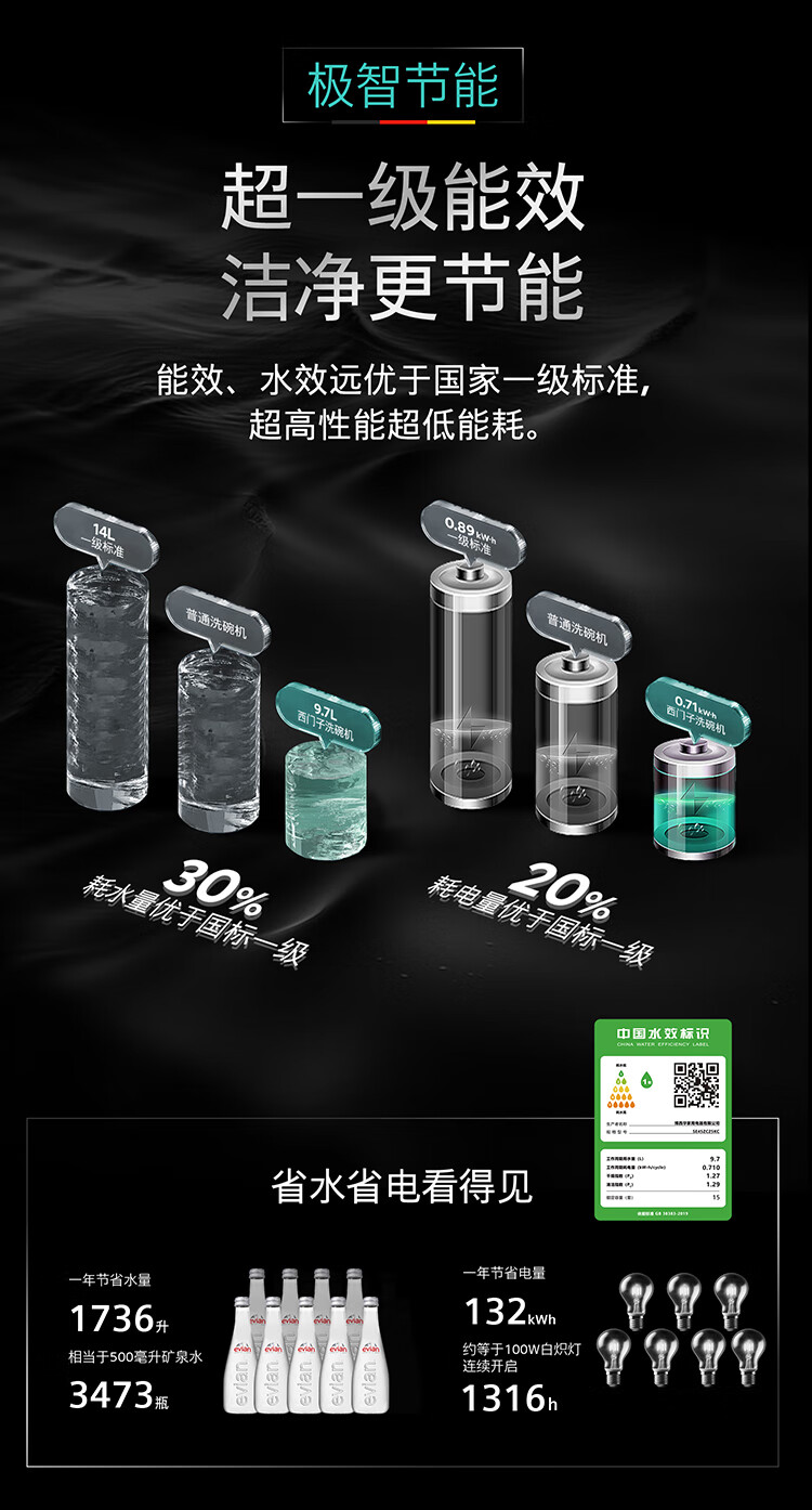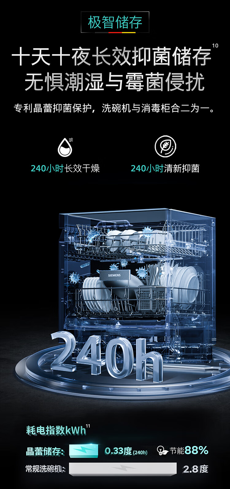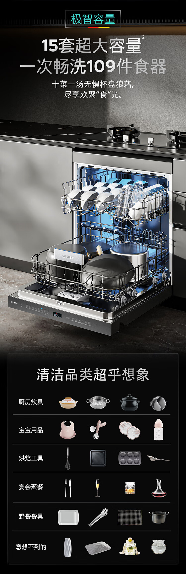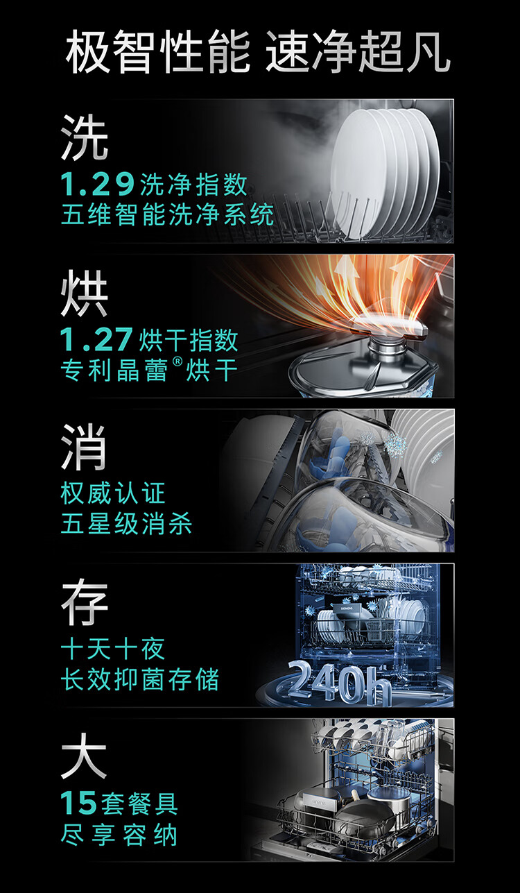 西门子(SIEMENS)IQ500智净魔方洗碗机家用灶下嵌入式小户型洗碗机晶蕾长效烘干存储 超五星级消毒除菌洗果蔬 【15套-黑金属】SE45ZC25KC