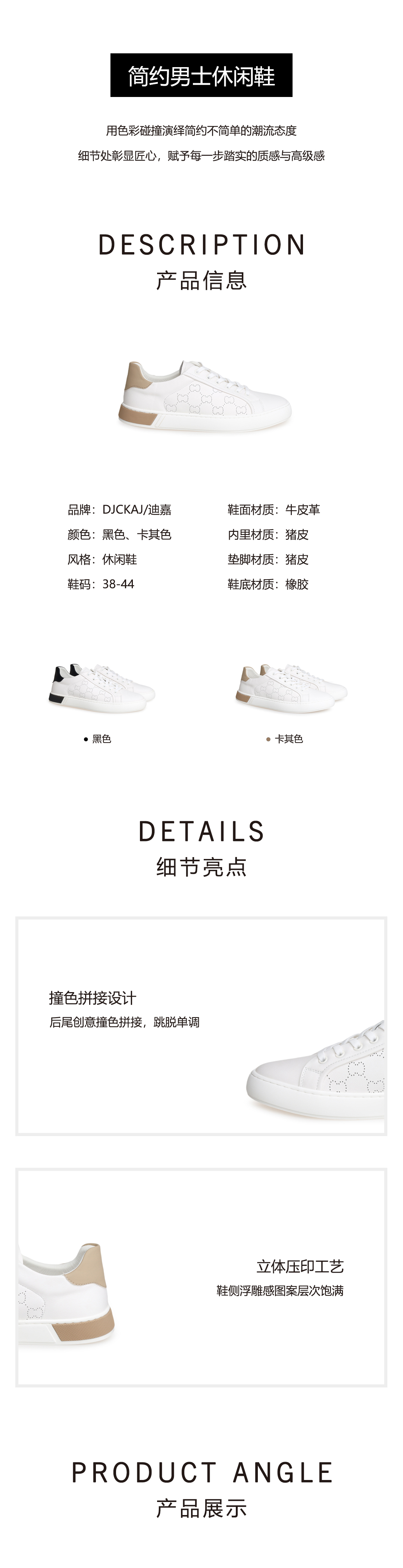 豪麟名鞋奥莱迪嘉男鞋牛皮革休闲鞋DJMMO52MX204卡其色 原价1660元