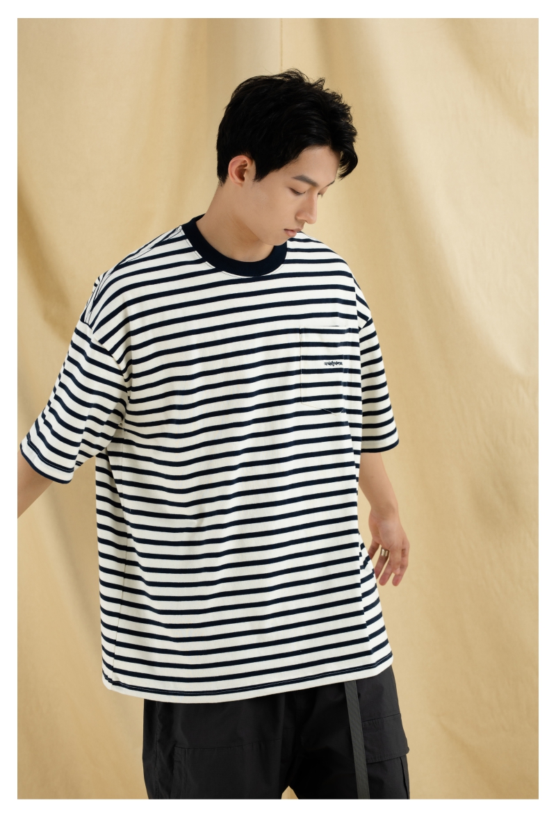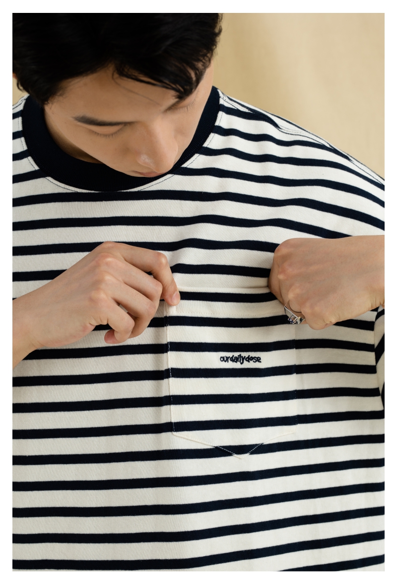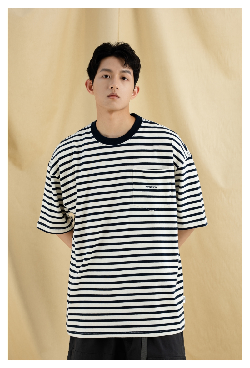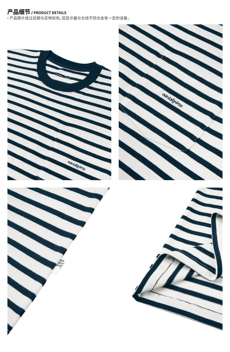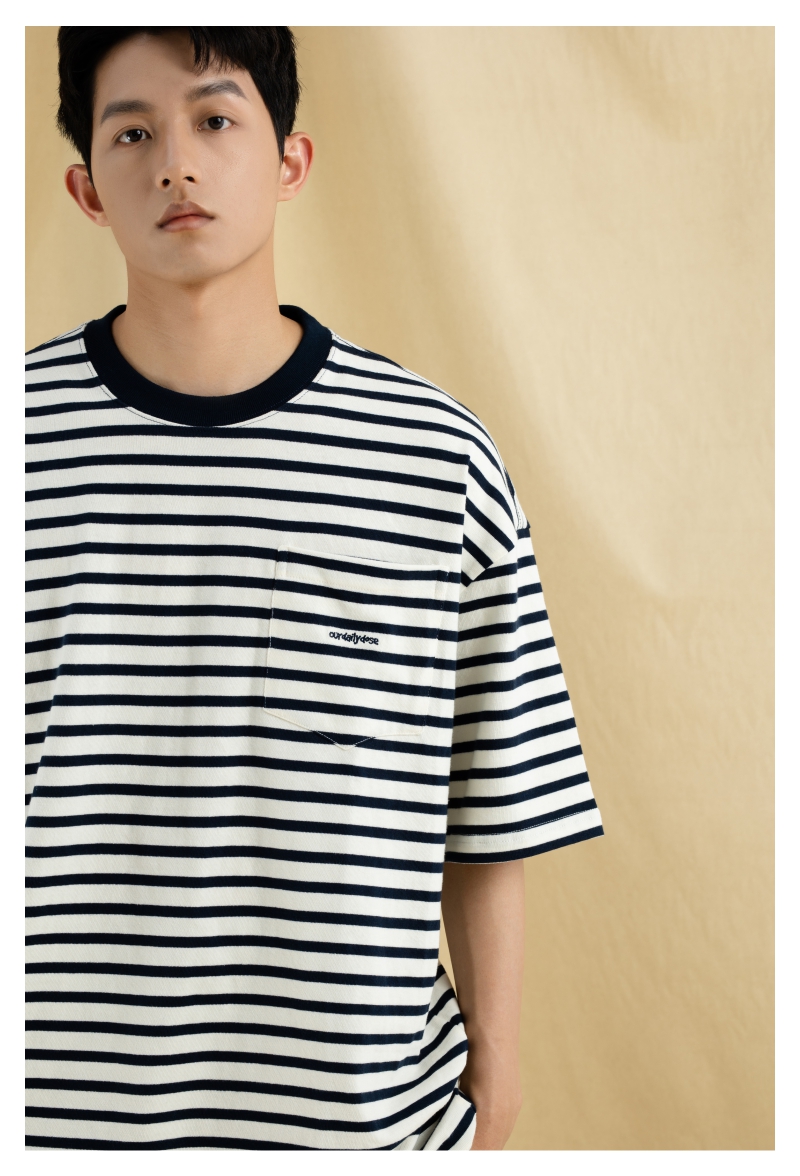 OURDAILYDOSE 21SS 原创潮牌宽松cityboy蓝色条纹刺绣口袋短袖T恤