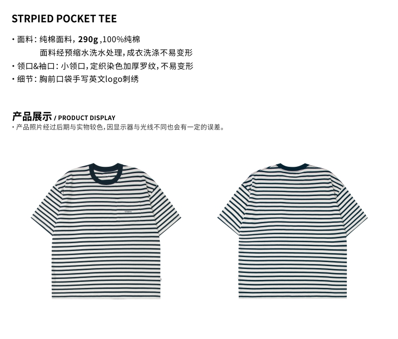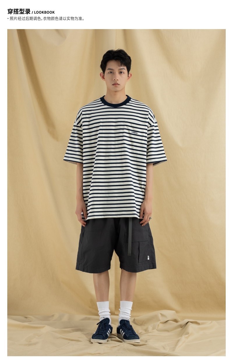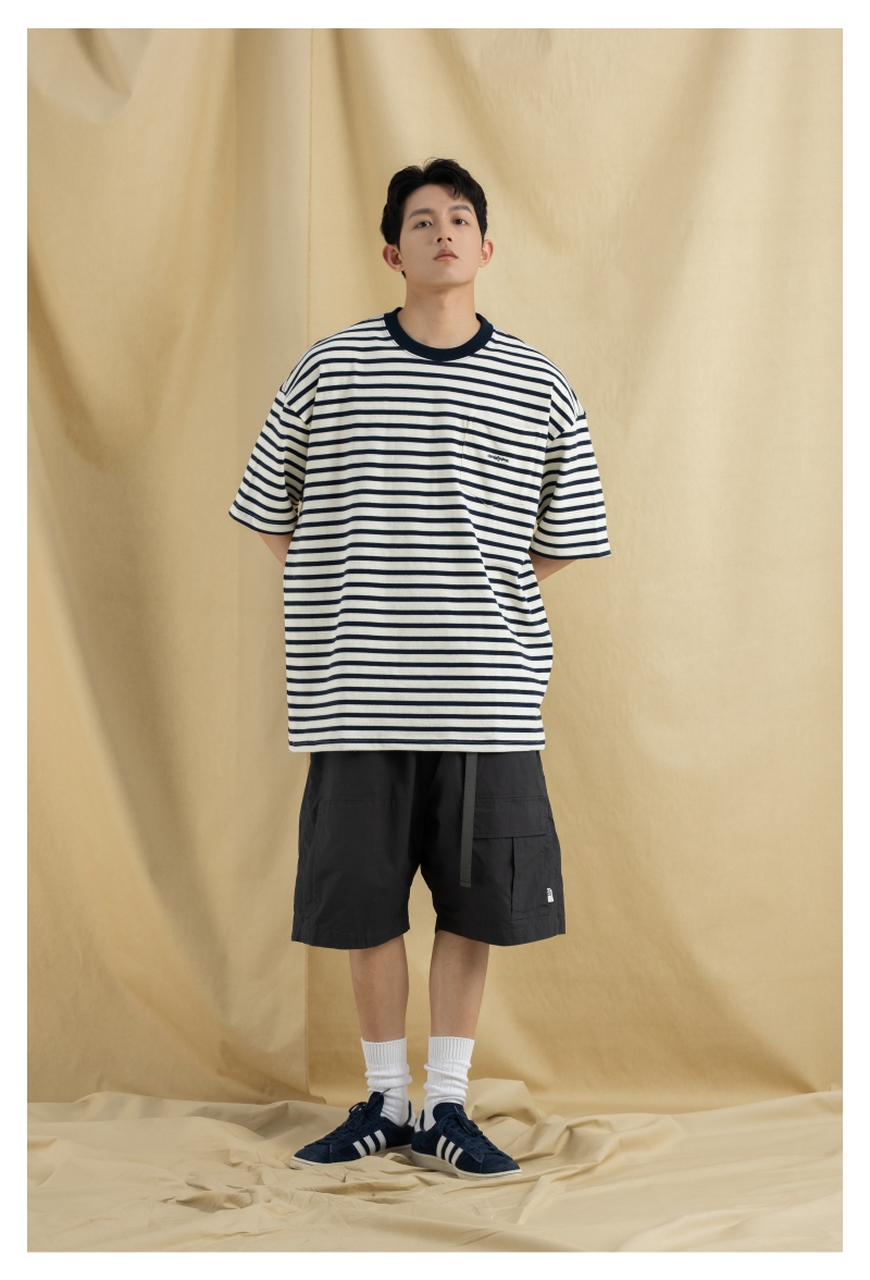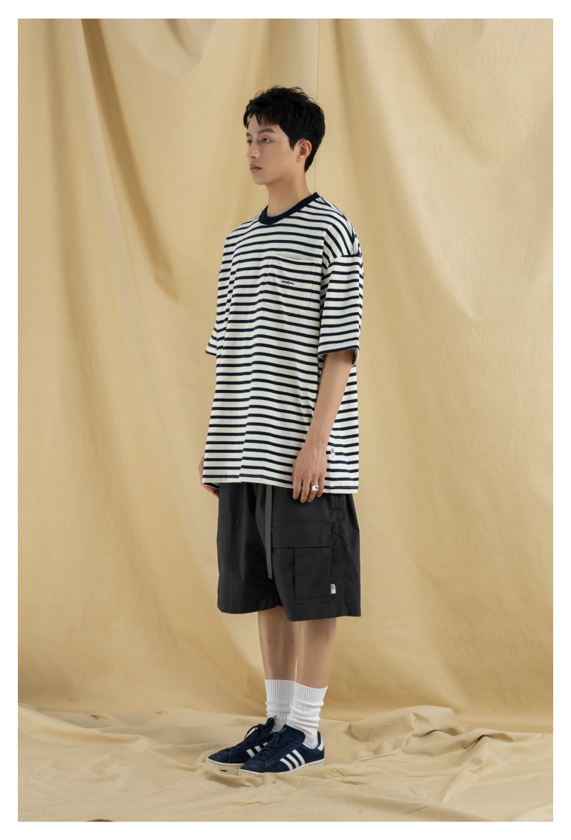 OURDAILYDOSE 21SS 原创潮牌宽松cityboy蓝色条纹刺绣口袋短袖T恤