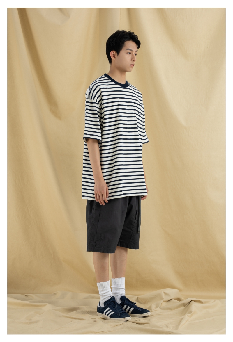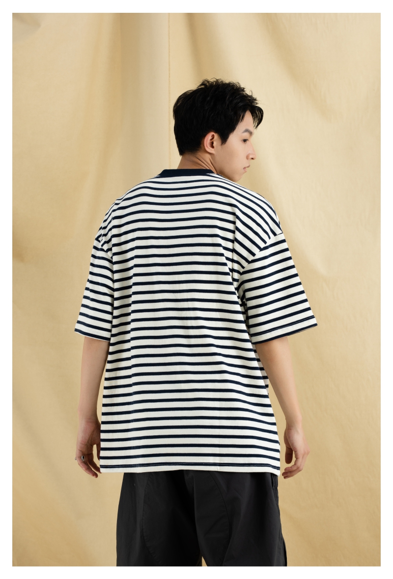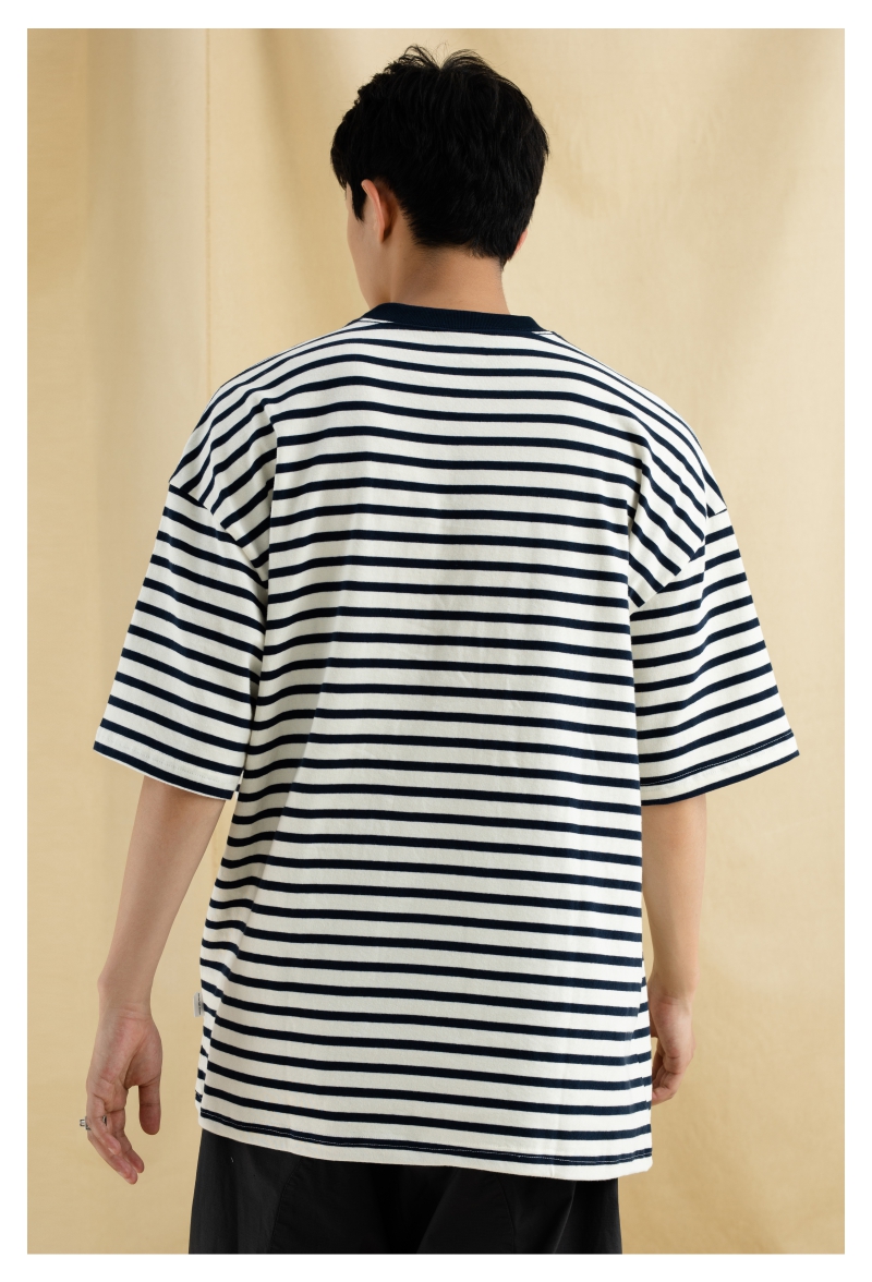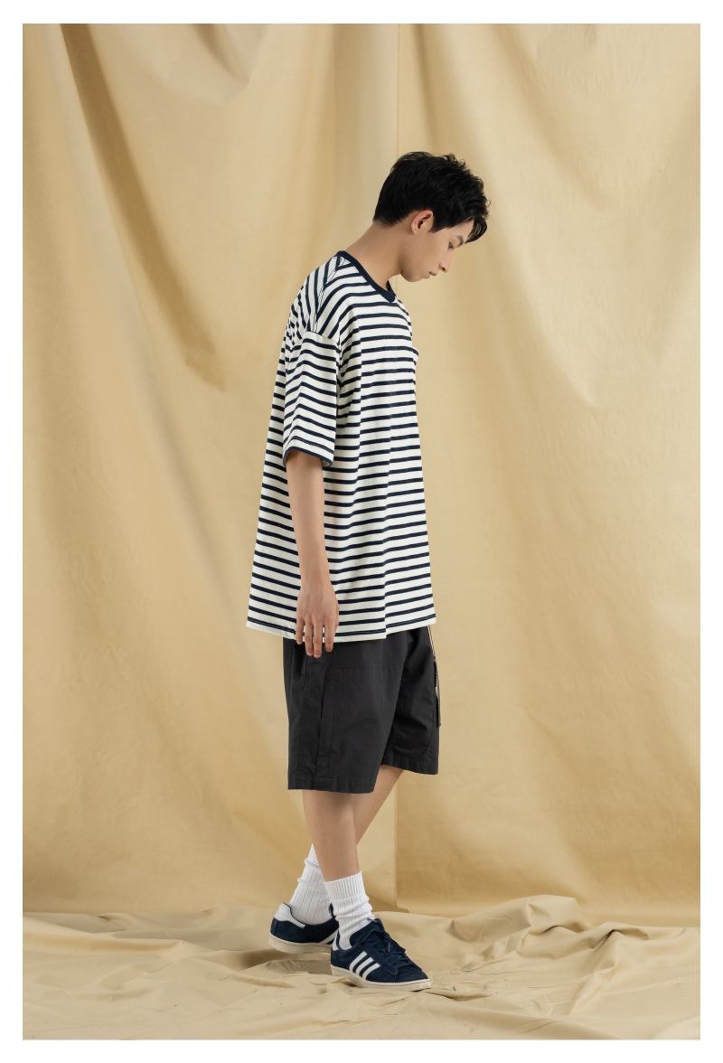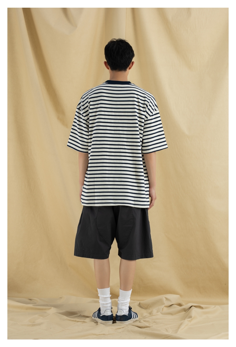 OURDAILYDOSE 21SS 原创潮牌宽松cityboy蓝色条纹刺绣口袋短袖T恤