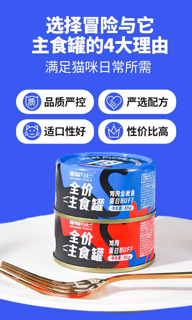 冒险与它猫罐头主食罐85g营养增肥发腮成幼猫湿粮随机口味/罐