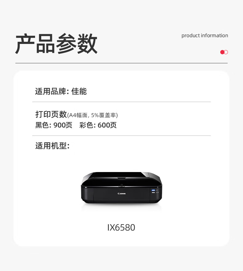绘威适用佳能IX6580墨盒 Canon IX6580彩色喷墨打印机墨盒【五色套装/3300页】