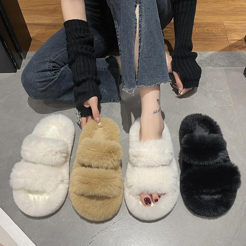 【升级款加厚底毛毛拖!】2025新款外穿女生ins加厚底毛毛拖鞋 秋冬薄底时尚高级软底轻奢女鞋