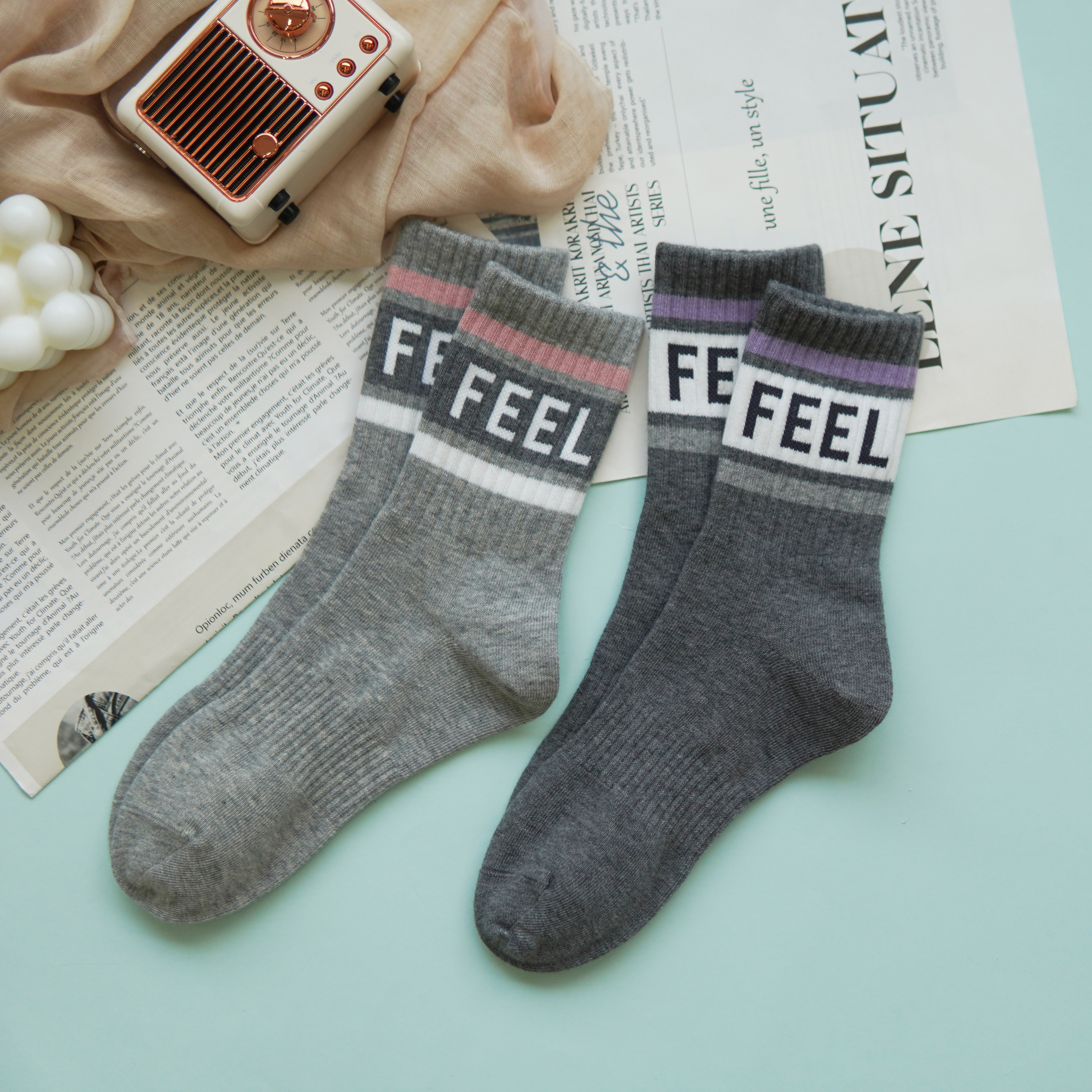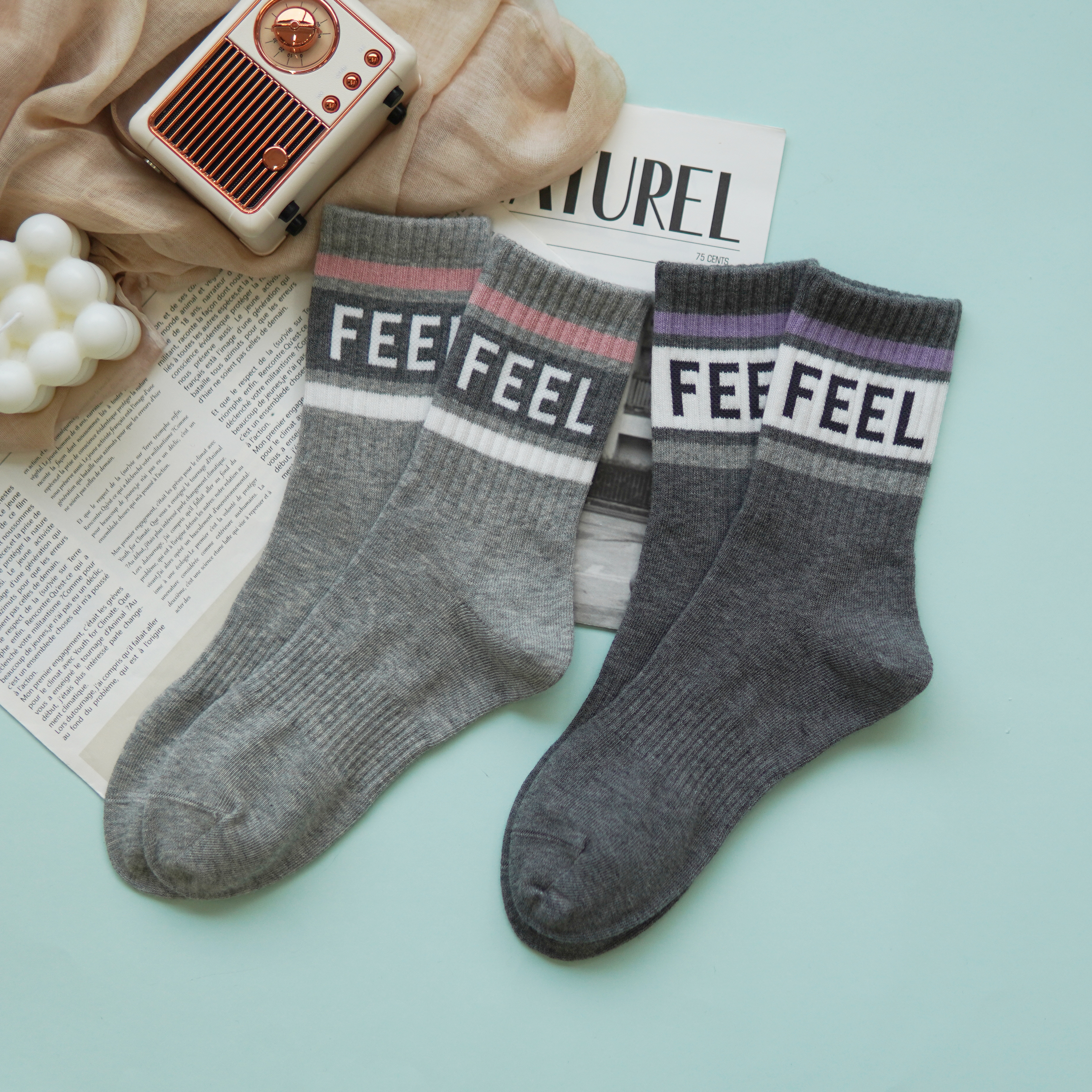 【2双装】女士运动袜抗菌中长筒休闲袜女四季棉袜女士袜子【6双6折 2522102】