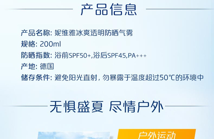 【妮维雅】冰爽透明防晒气雾200ml(效期2023年1月)