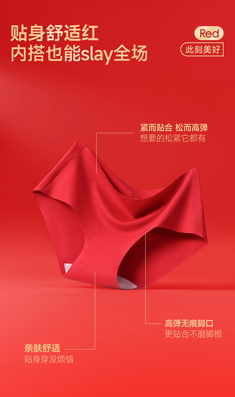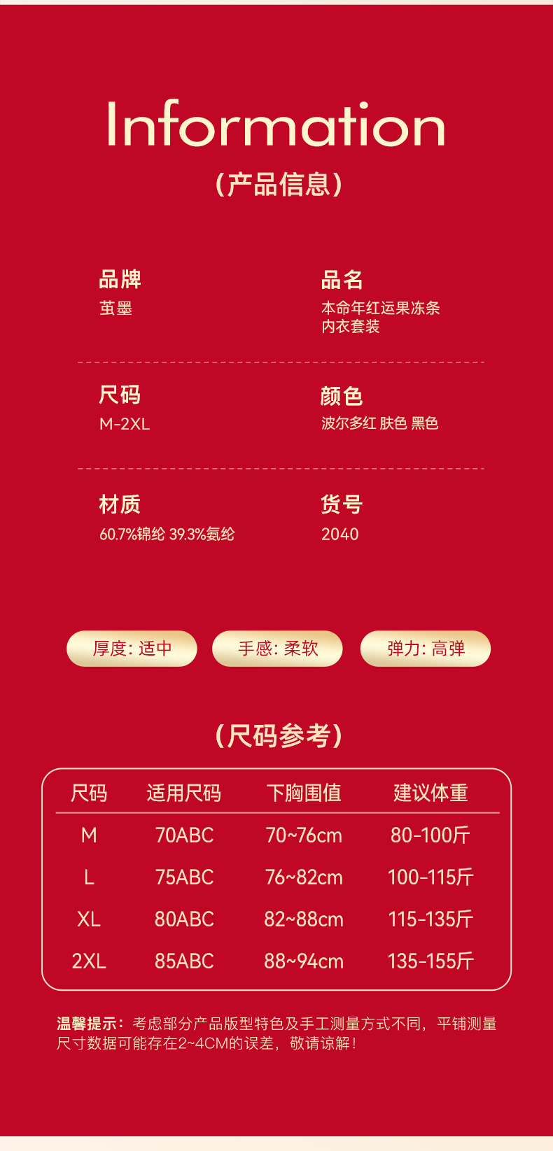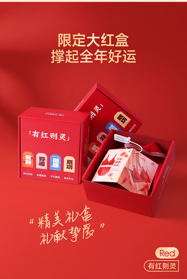 茧墨 本命年红运果冻条内衣套装 礼盒两件装