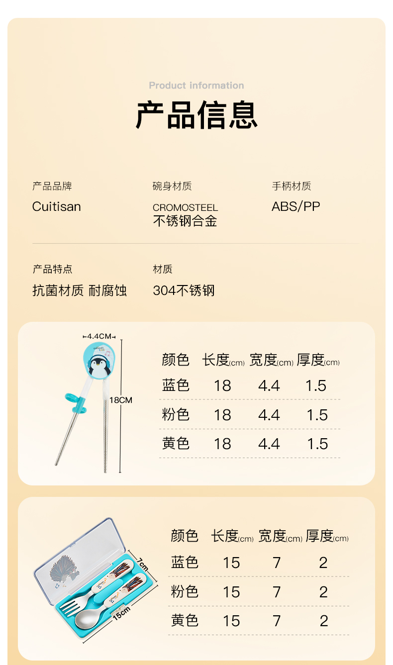 【韩国进口儿童训练筷】Cuitisan·酷艺师儿童训练筷叉勺套盒装婴幼儿餐具可爱卡通不锈钢筷