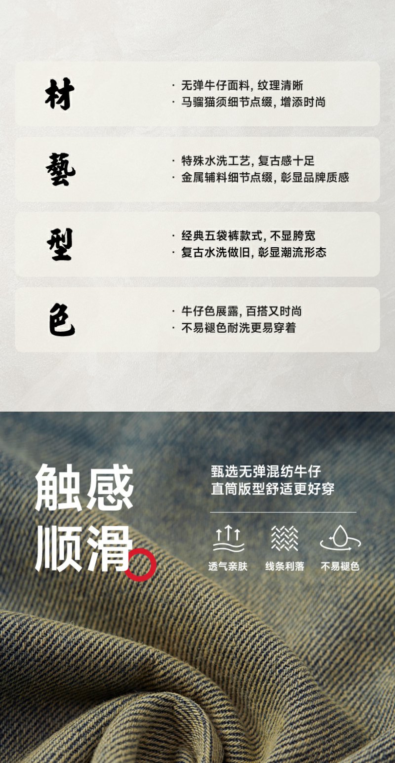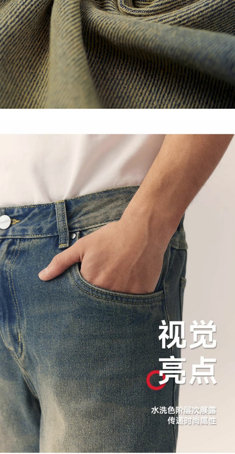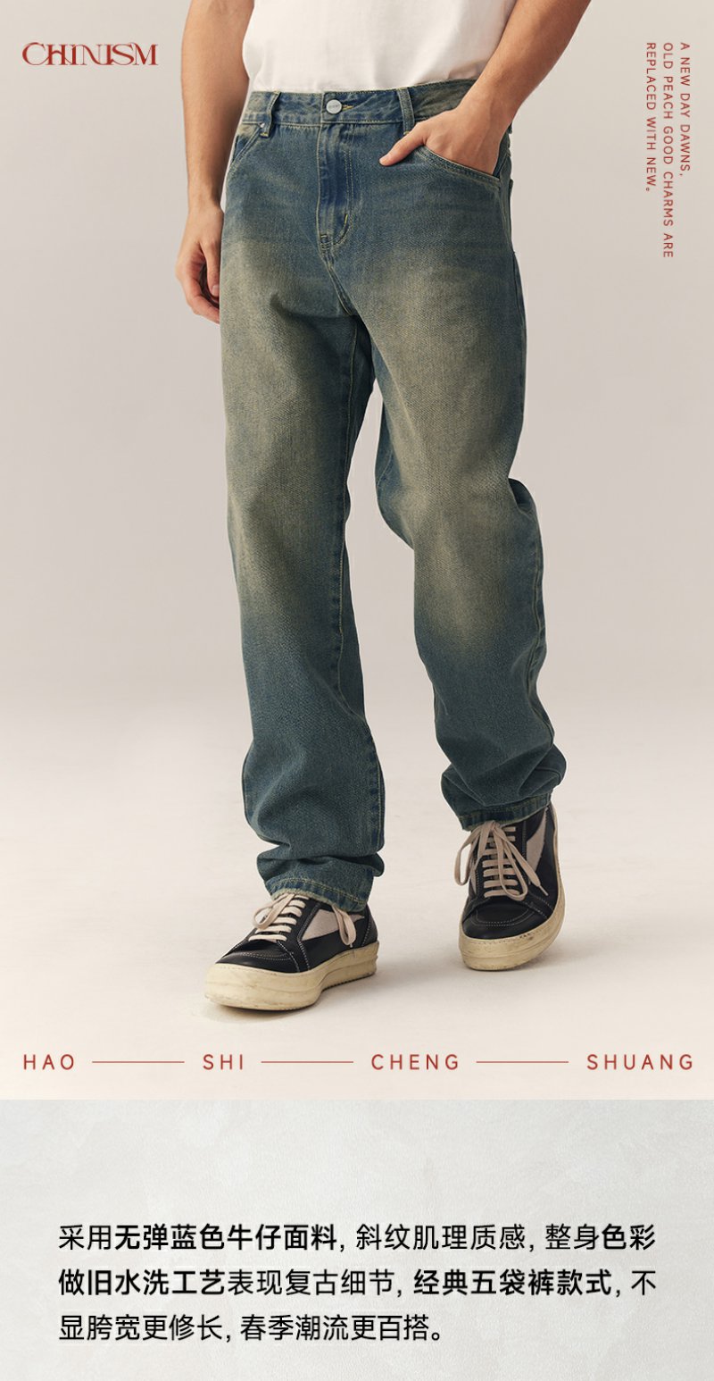 CHINISM CH水洗做旧复古牛仔裤男潮牌新款秋冬高街休闲直筒长裤