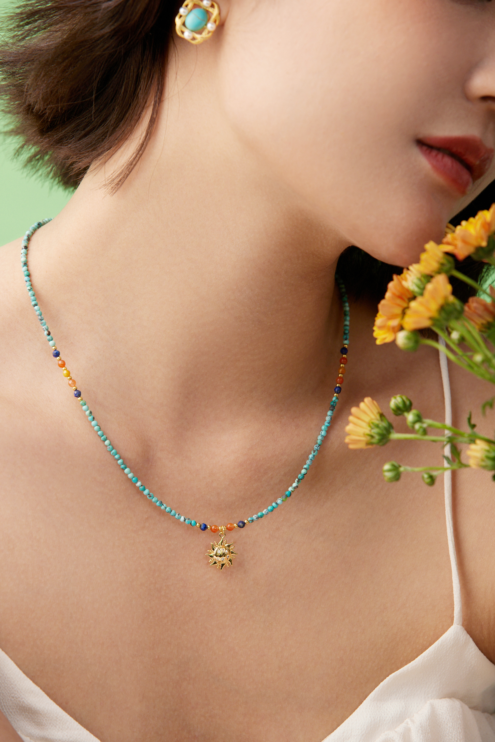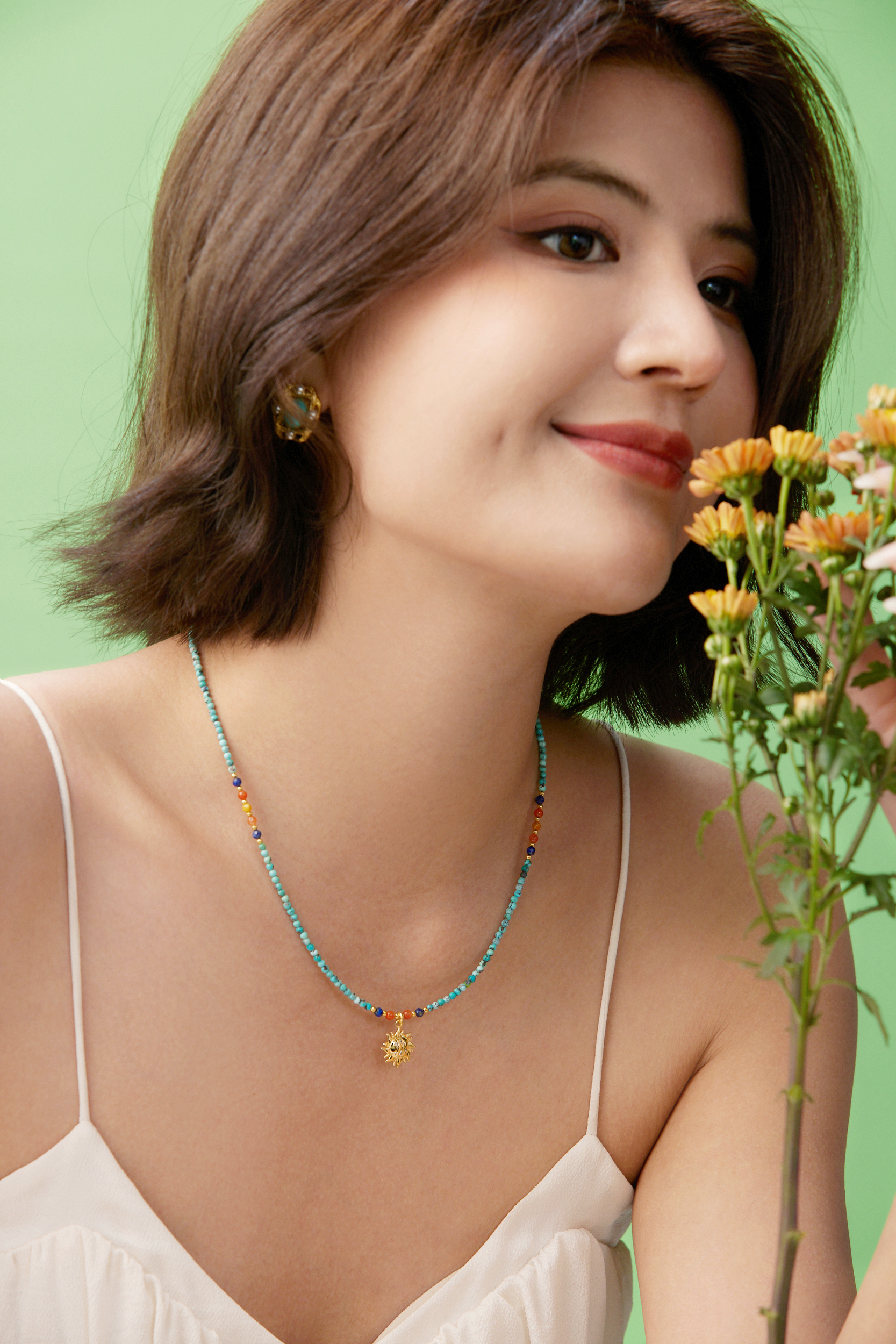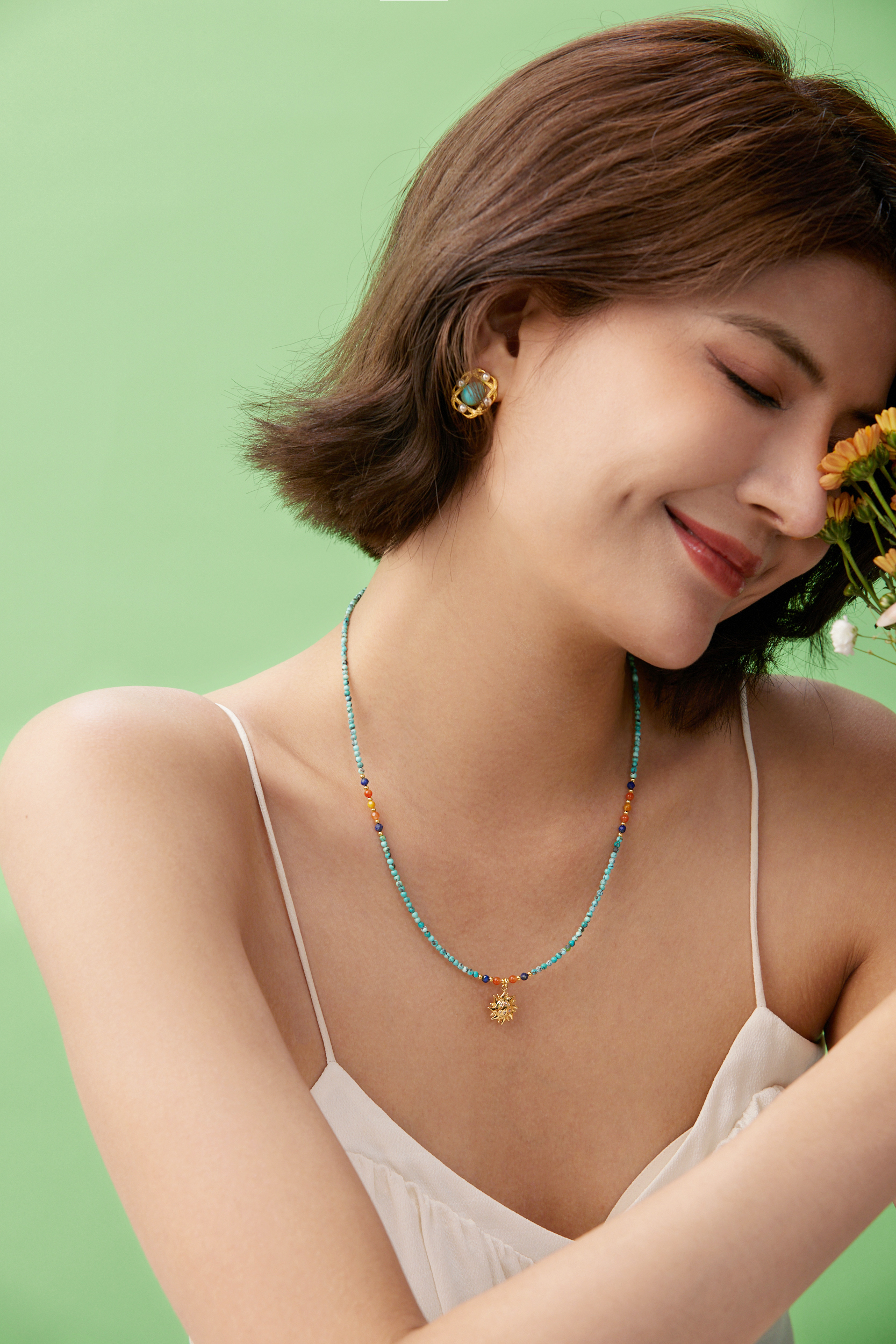 Manreya“山涧霞光”天然石项链小众百搭夏天颈链银镀金