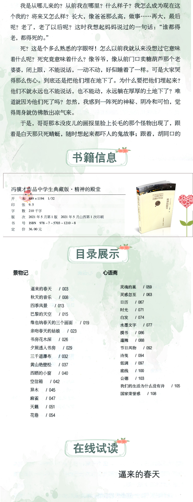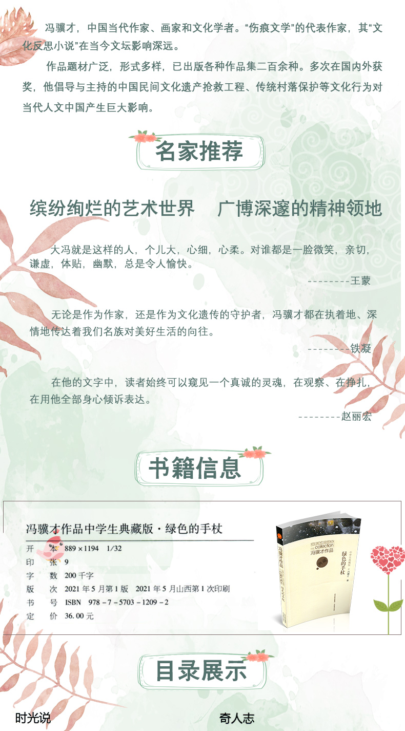 正版二册冯骥才作品中学生典藏版 精神的殿堂 绿色的手杖 中国当代散文集 山西教育出版社出版
