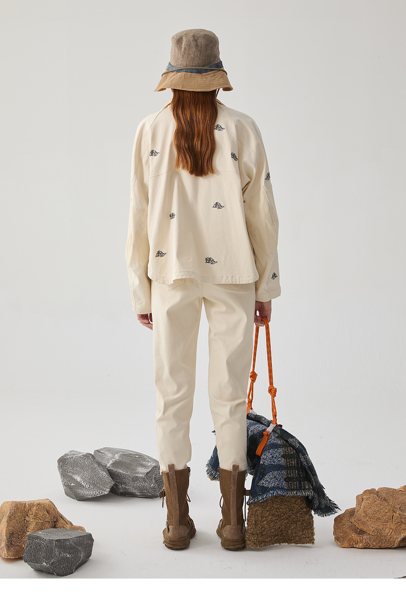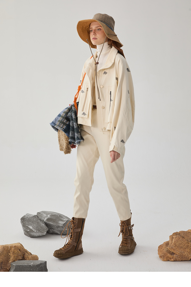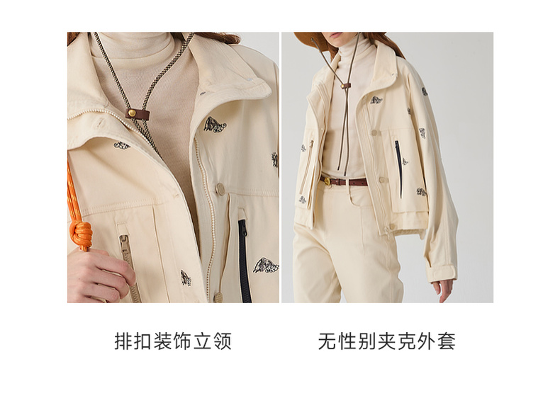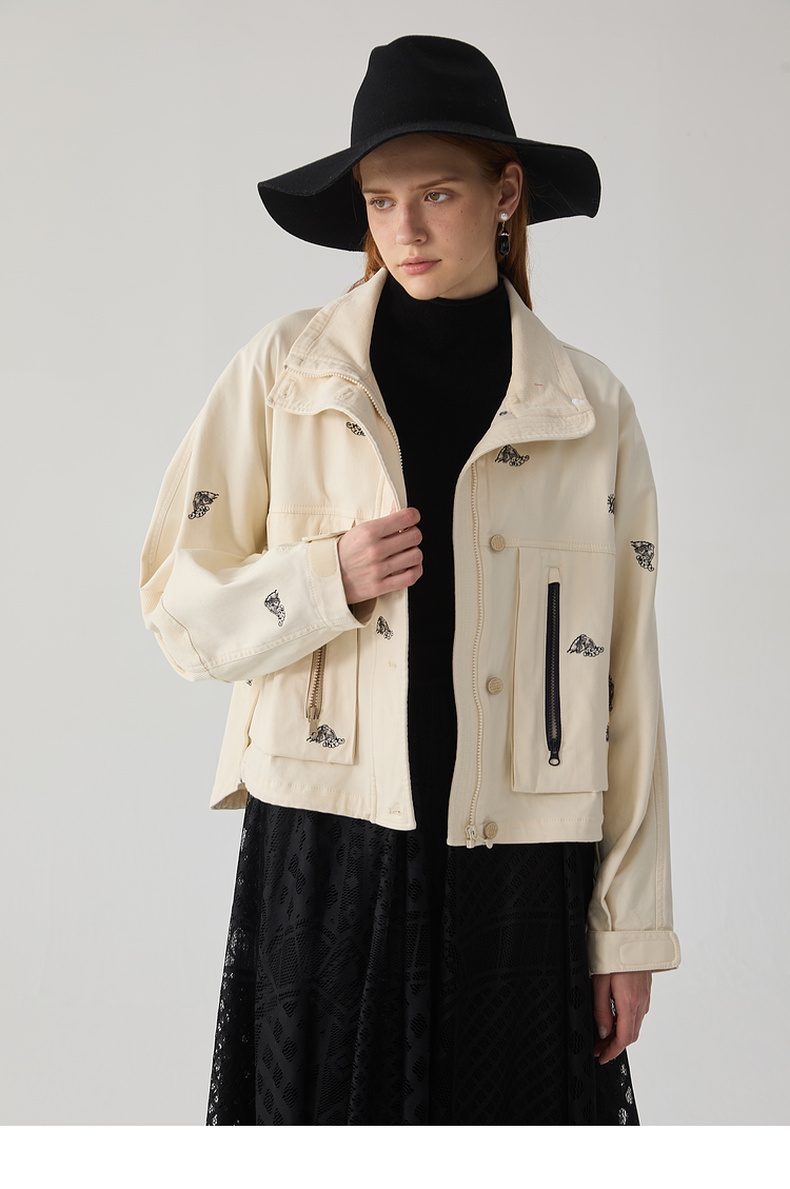 谜底立领夹克女2024冬季新品休闲工装风刺绣个性短外套244MW1647