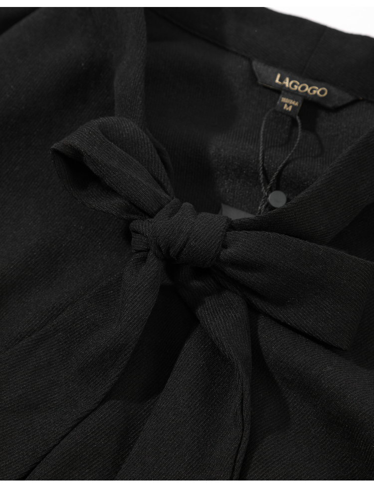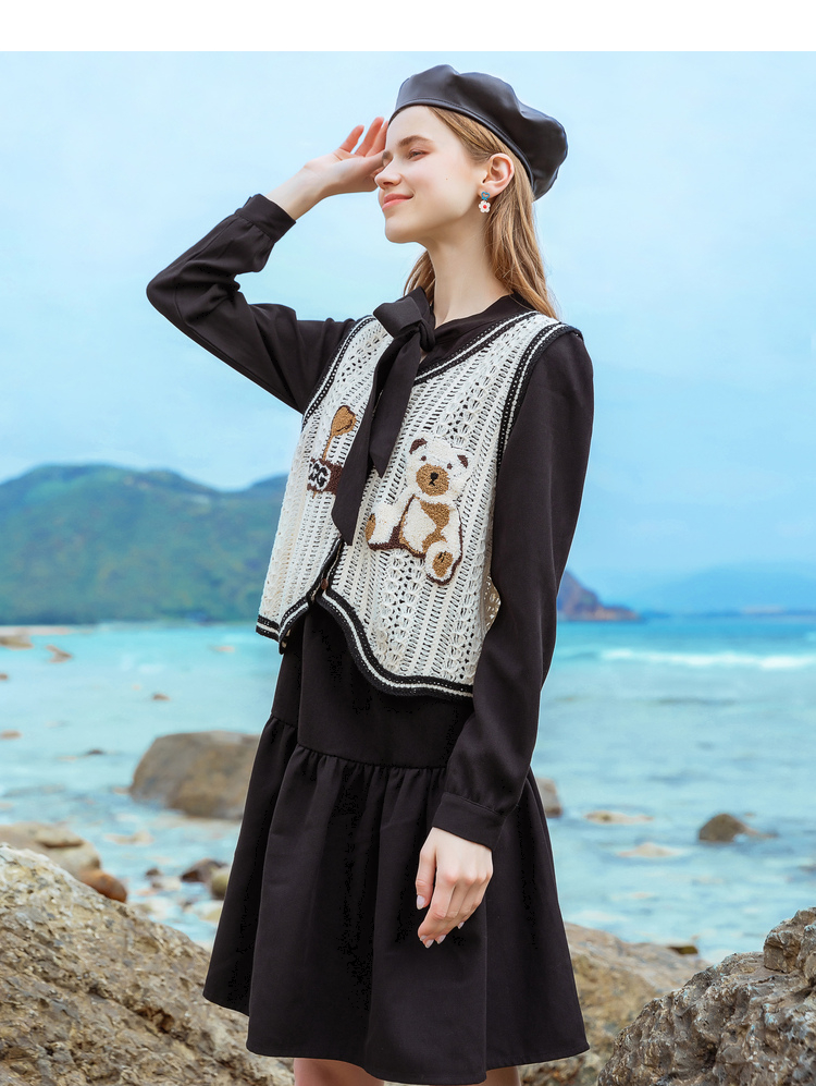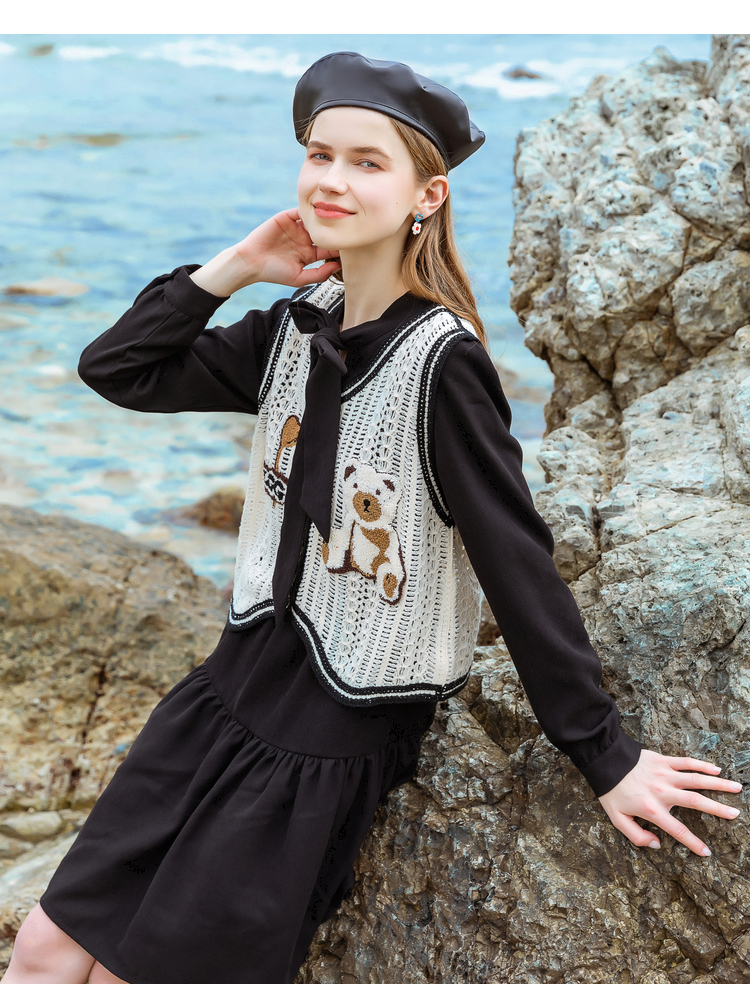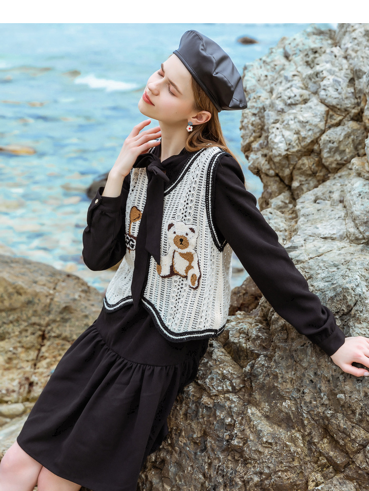Lagogo拉谷谷2022春季新款学院风马甲黑色高腰V领连衣裙两件套女LALL832A61