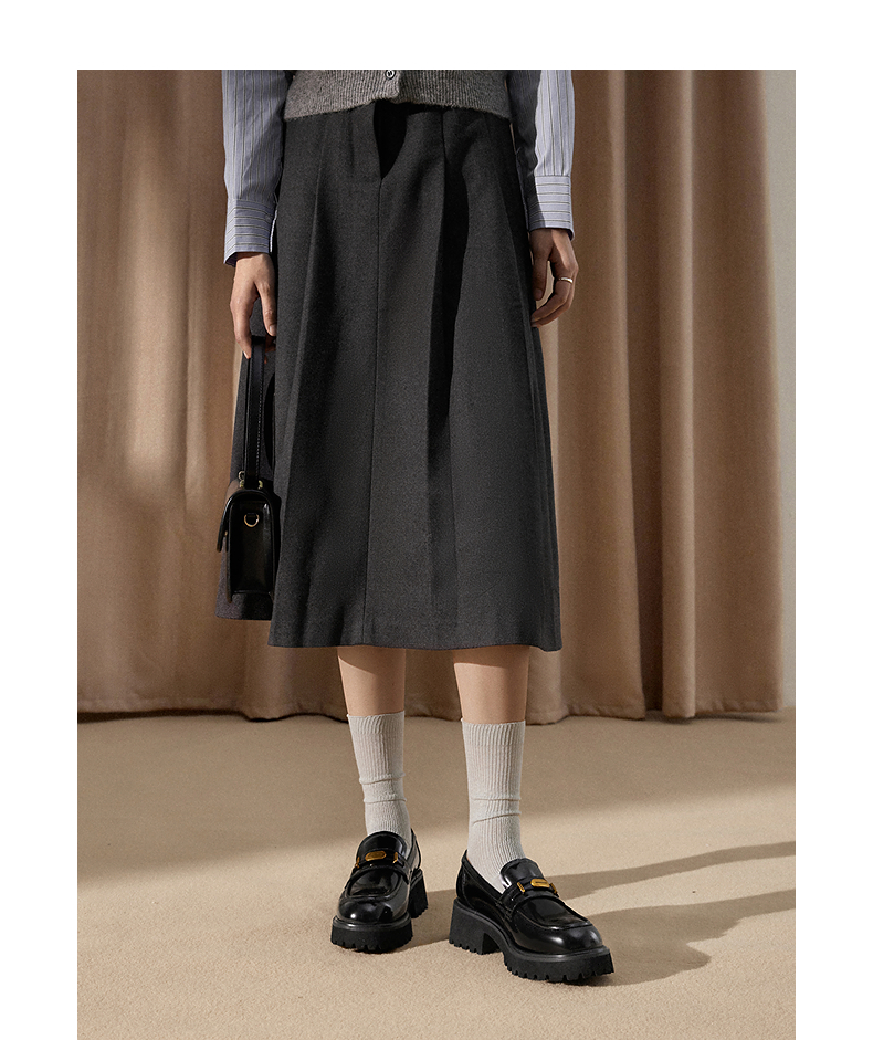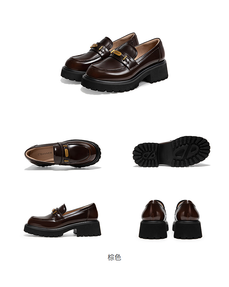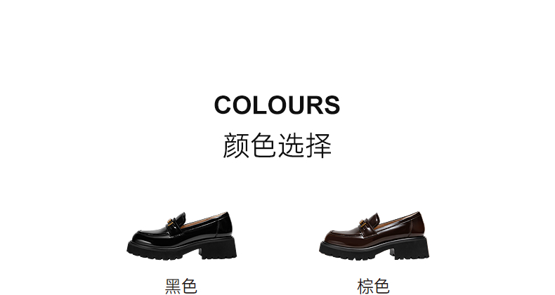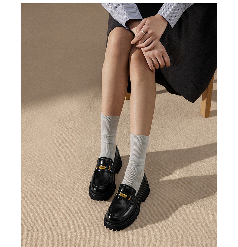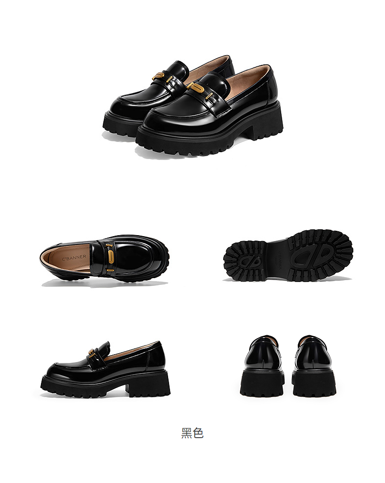 千百度漆皮JK厚底乐福鞋女款增高通勤深口黑色小皮鞋A25107303