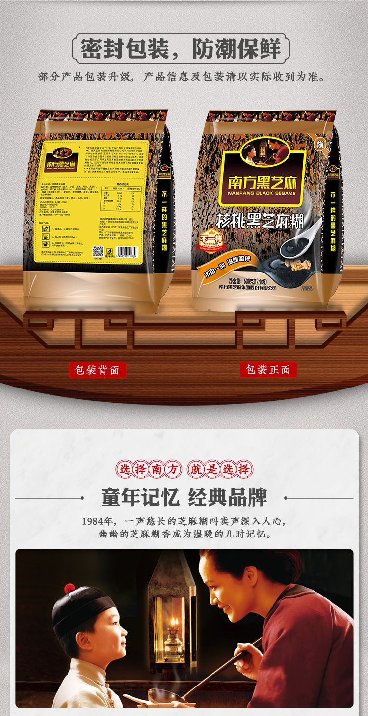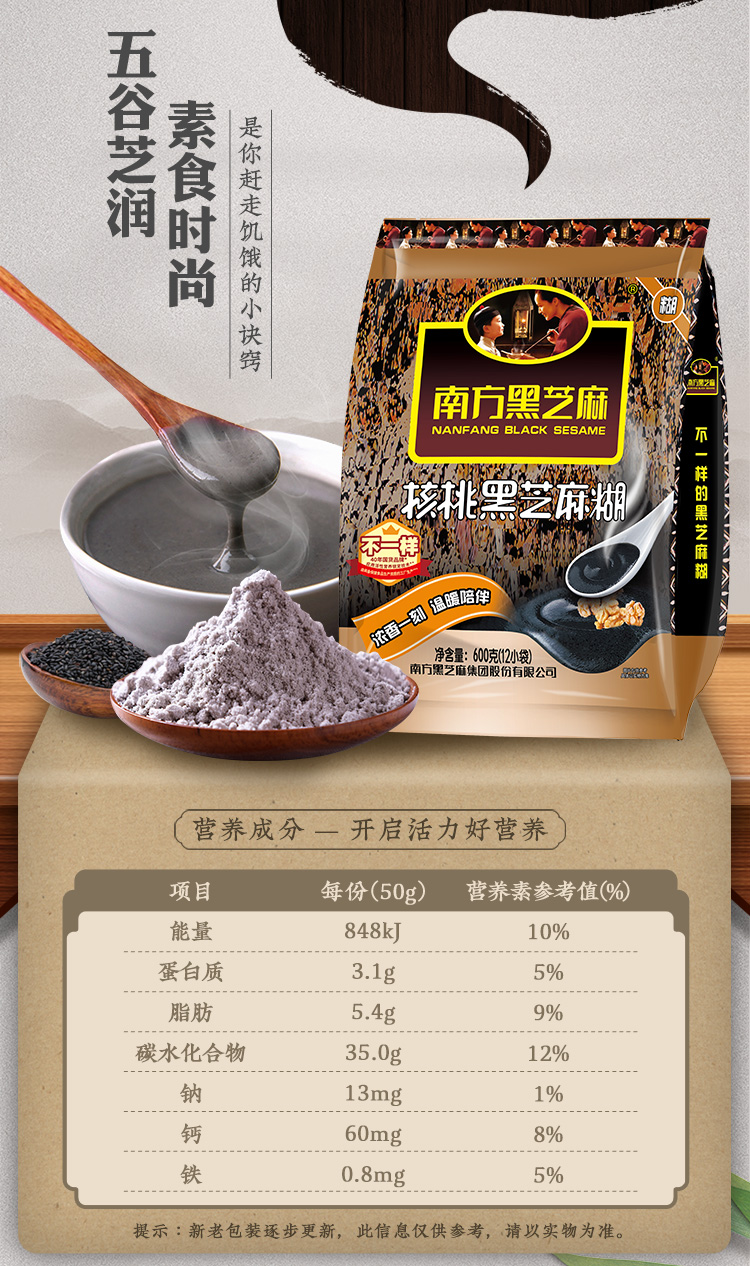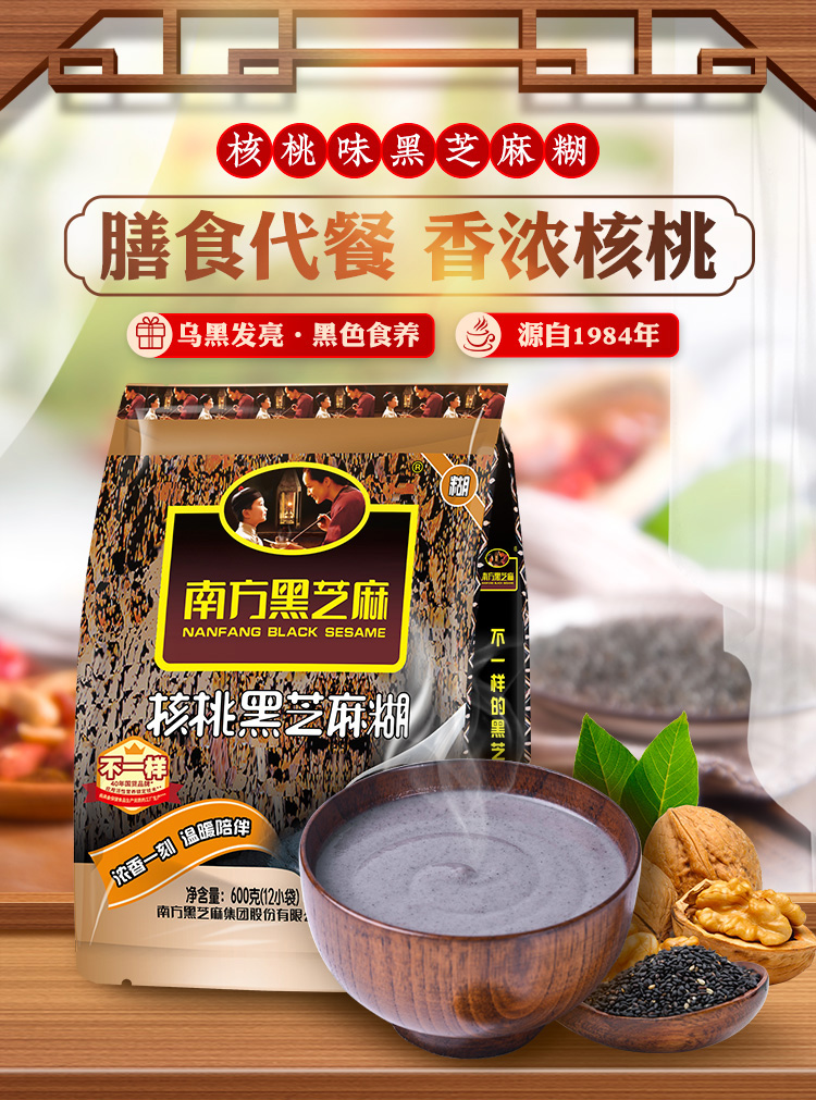 南方黑芝麻糊核桃味/原味/红枣味600g商超同款营养早餐代餐粉冲泡即食饱腹谷物