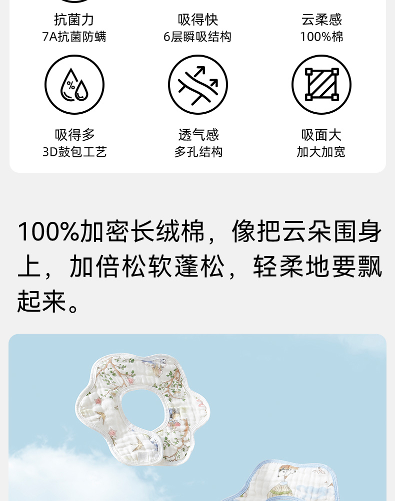 【口水巾】嫚熙婴儿口水巾宝宝纯棉纱布花瓣围嘴新生儿儿童口水围兜