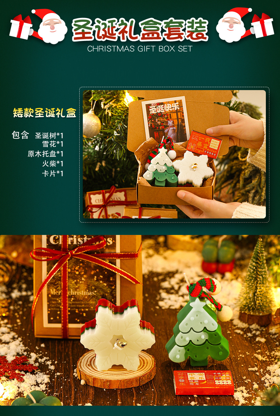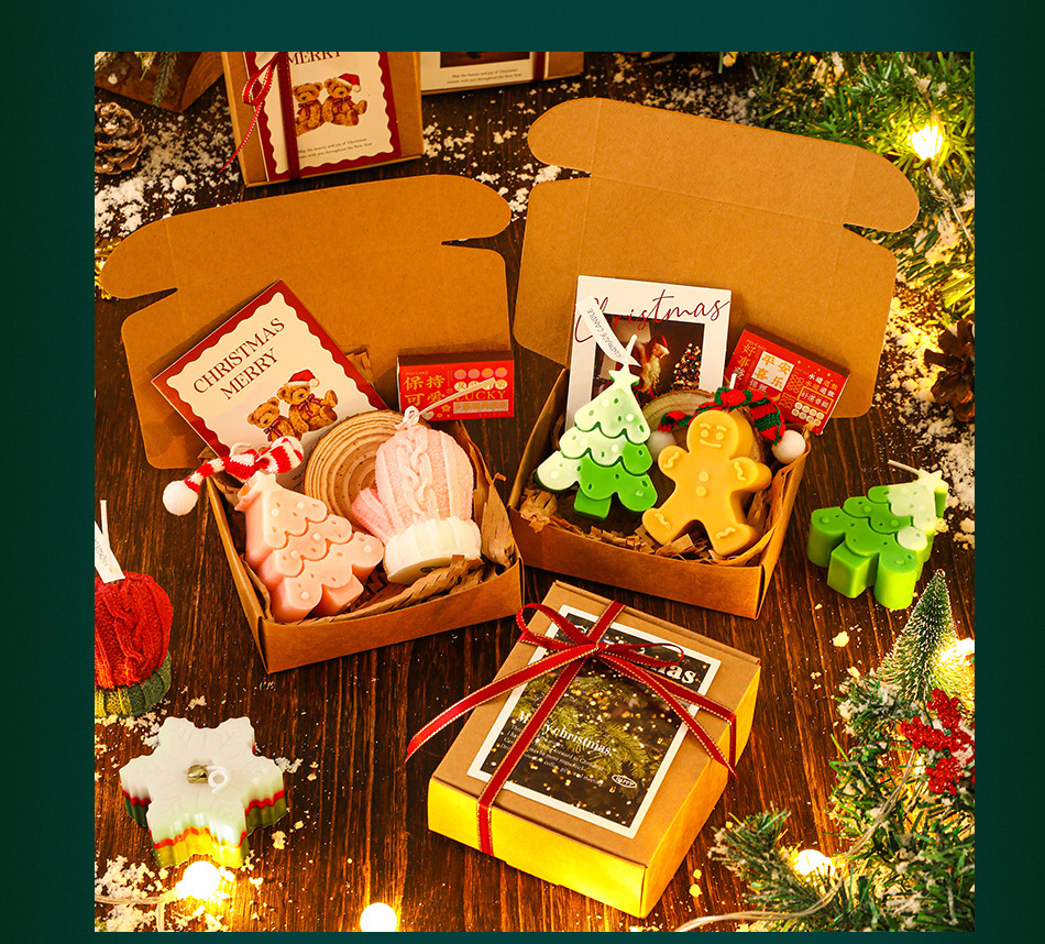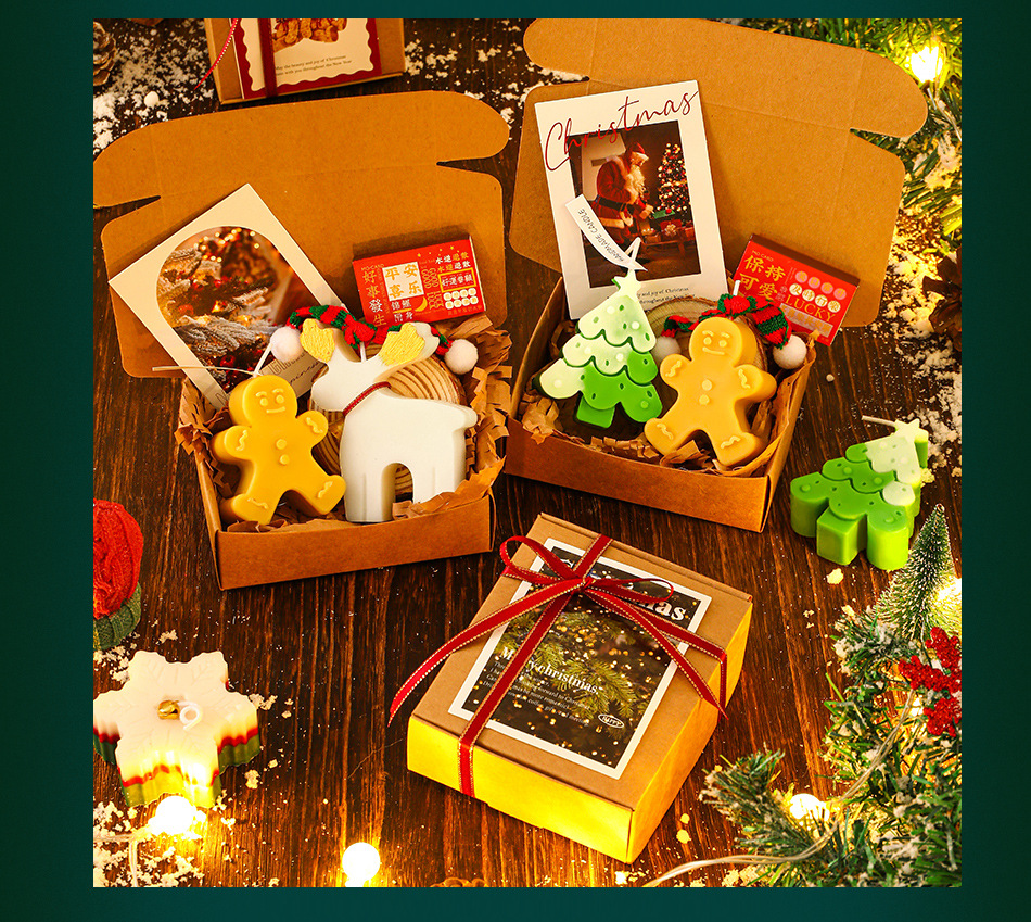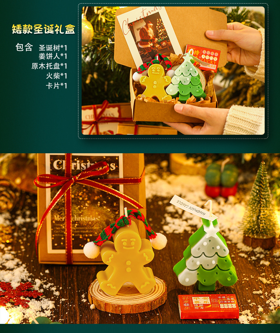 圣诞节香薰蜡烛礼盒 圣诞树姜饼人创意造型香氛蜡烛 diy伴手轻奢礼品