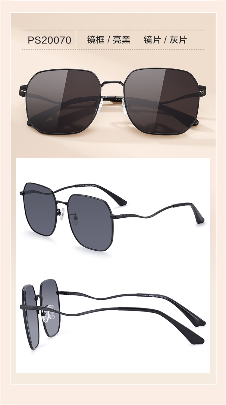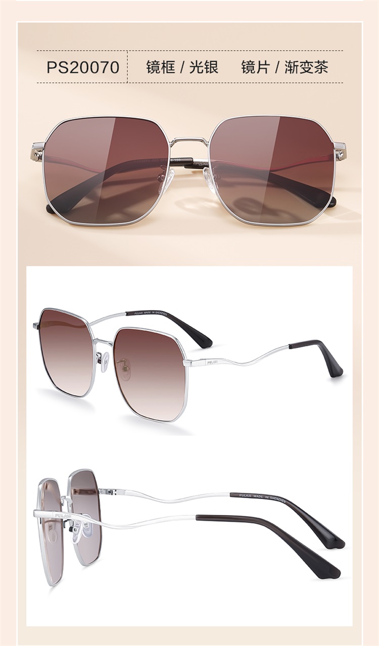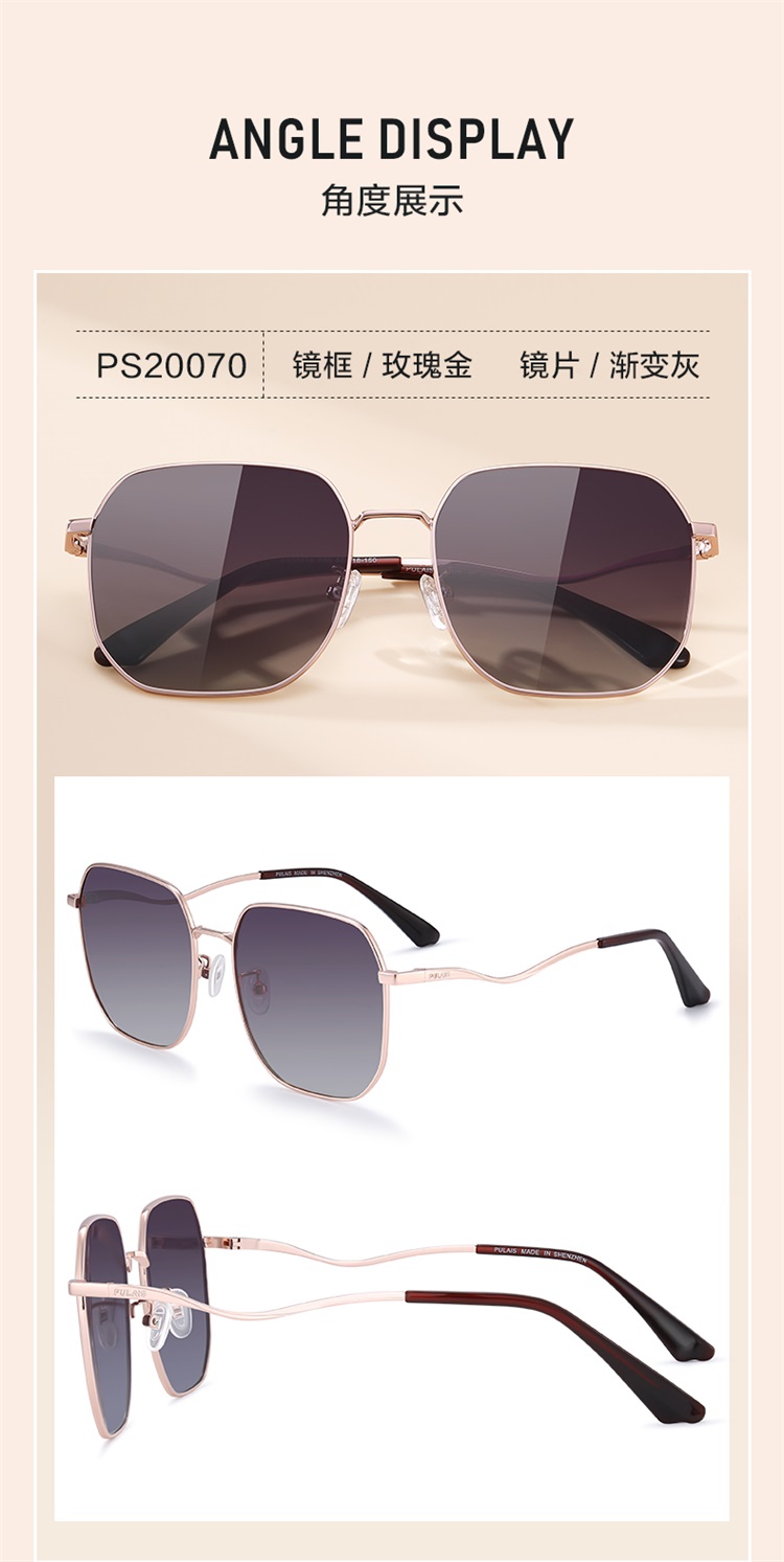 普莱斯PS20070 太阳镜 渐变镜片8美妆滤镜 TAC偏光镜片 金属材质镜框 男女通用 三色可选