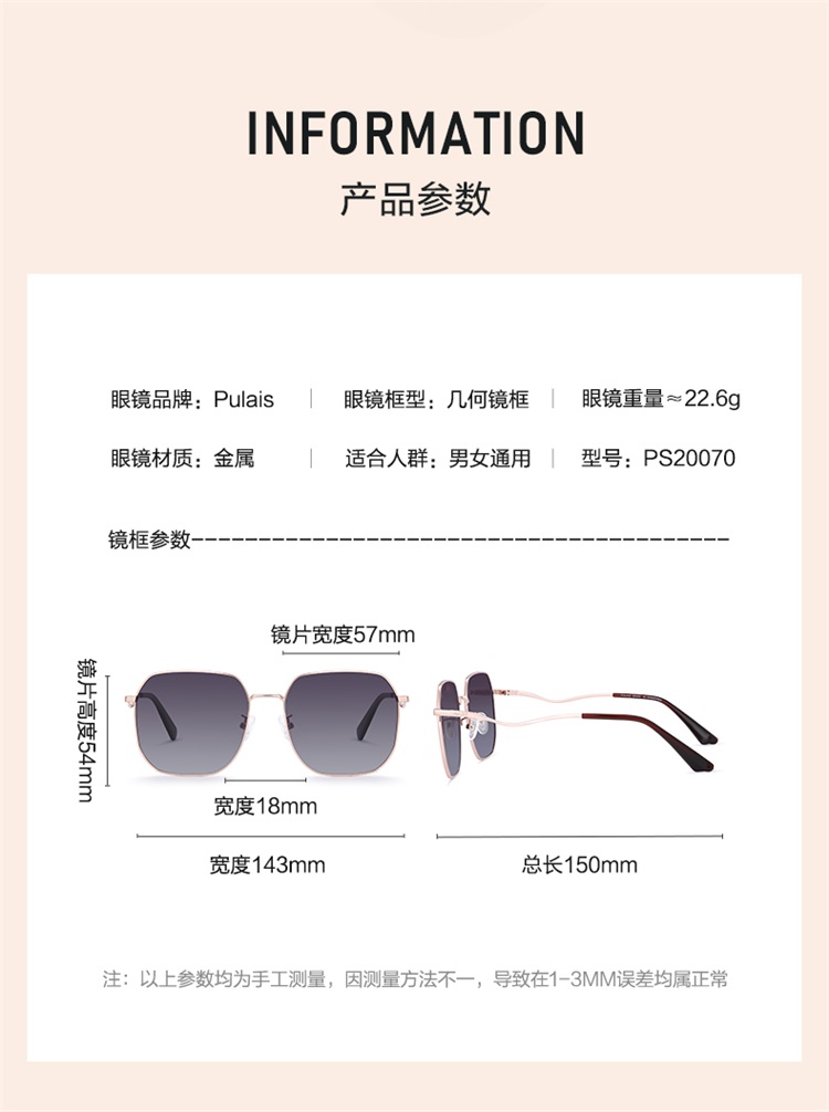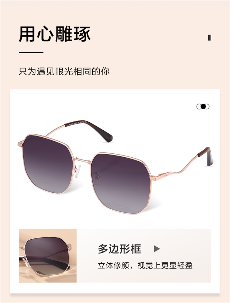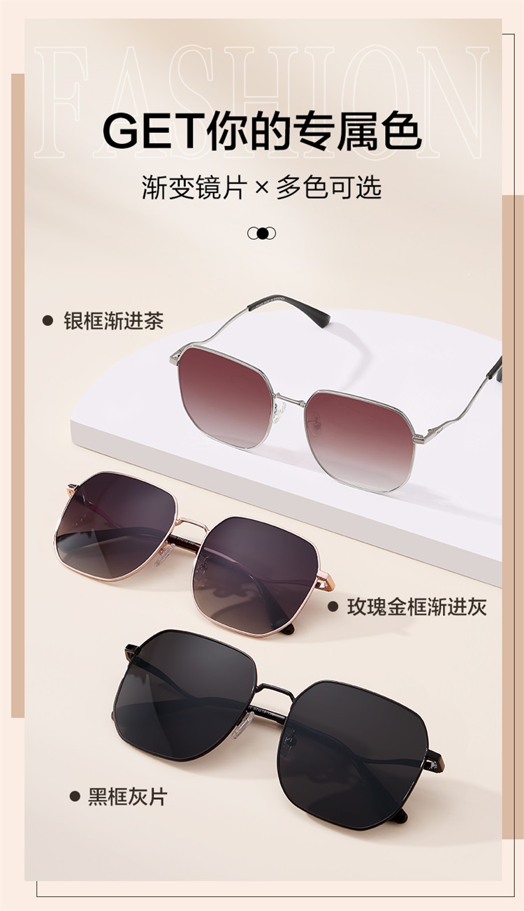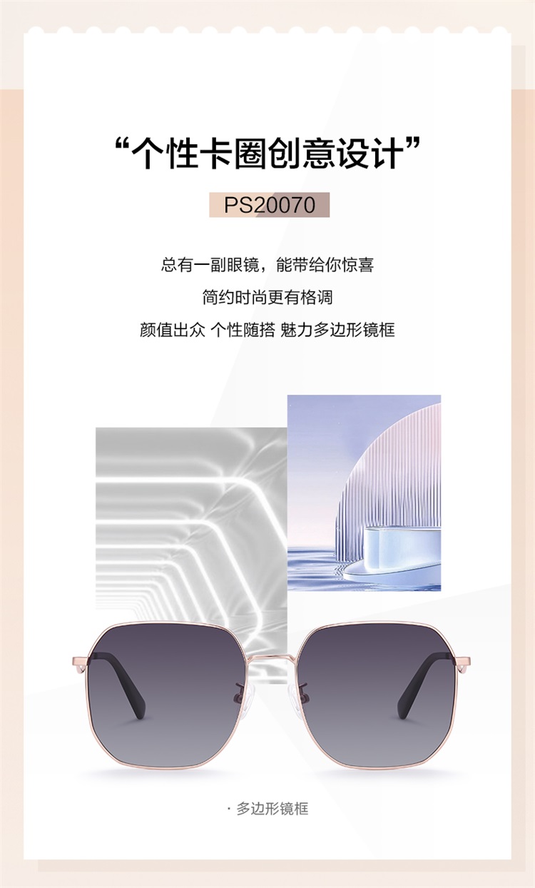 普莱斯PS20070 太阳镜 渐变镜片8美妆滤镜 TAC偏光镜片 金属材质镜框 男女通用 三色可选