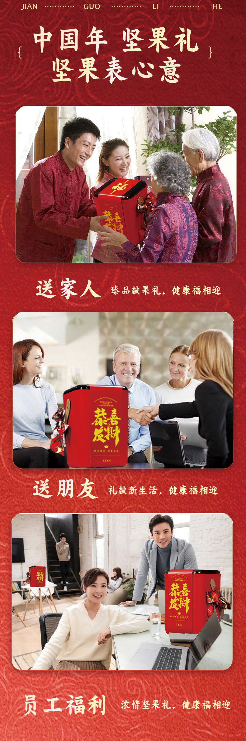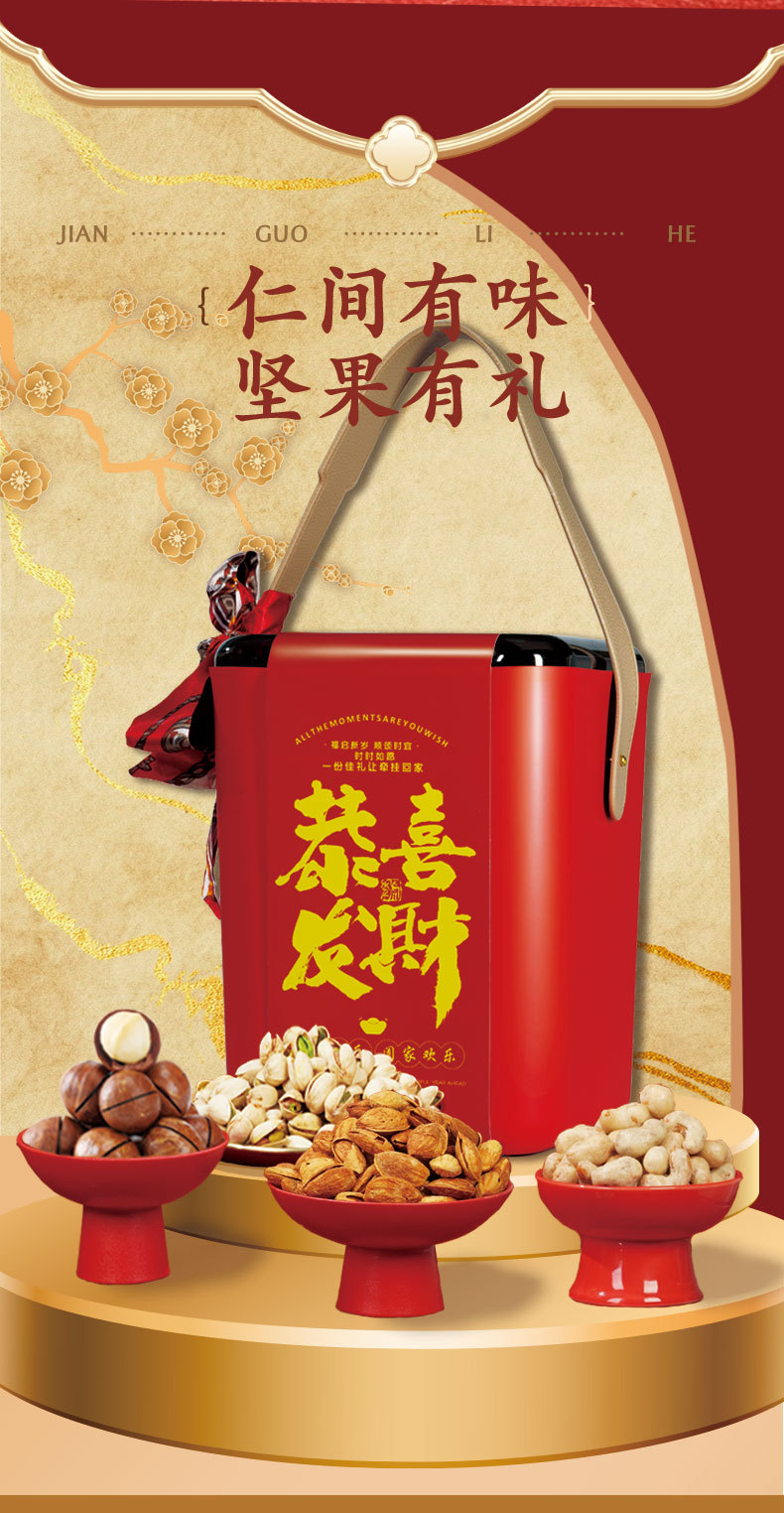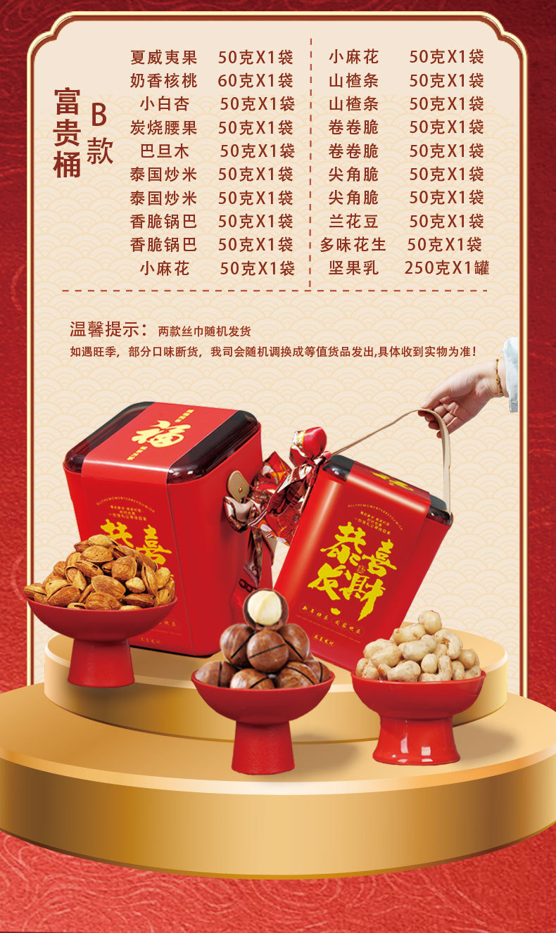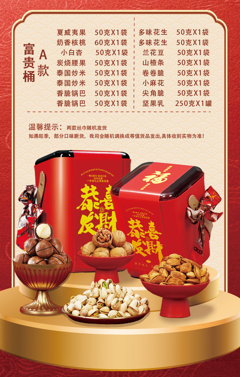 「赠丝巾!桶装高颜值礼盒」过年年货坚果礼盒装 大礼包拜新年干果组合送长辈亲戚礼品零食