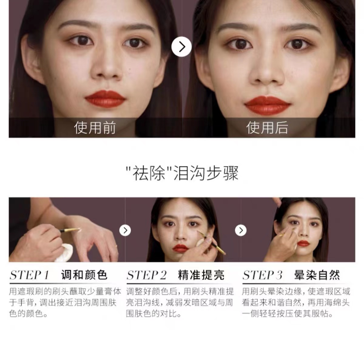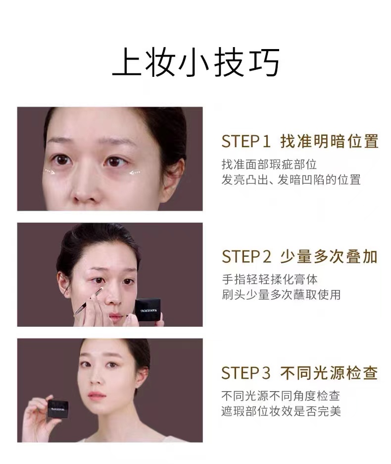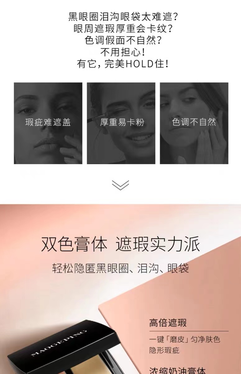 毛戈平·无瑕双色遮瑕膏遮盖眼部泪沟黑眼圈脸部提亮3g 赠送刷子