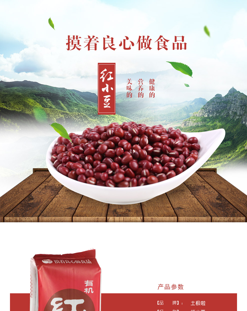 【自营】土极啦有机红小豆东北特产五谷杂粮 400g*4袋 JUNONG-021