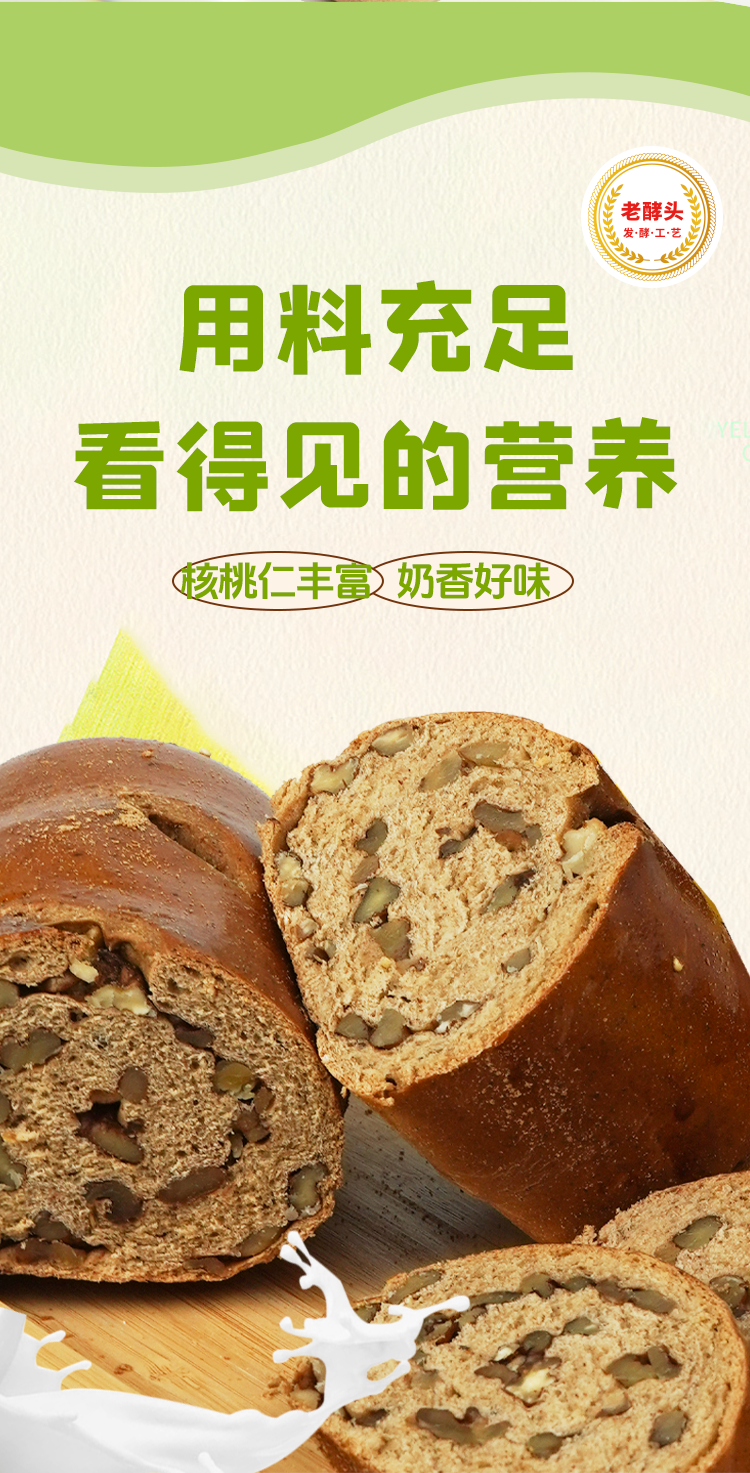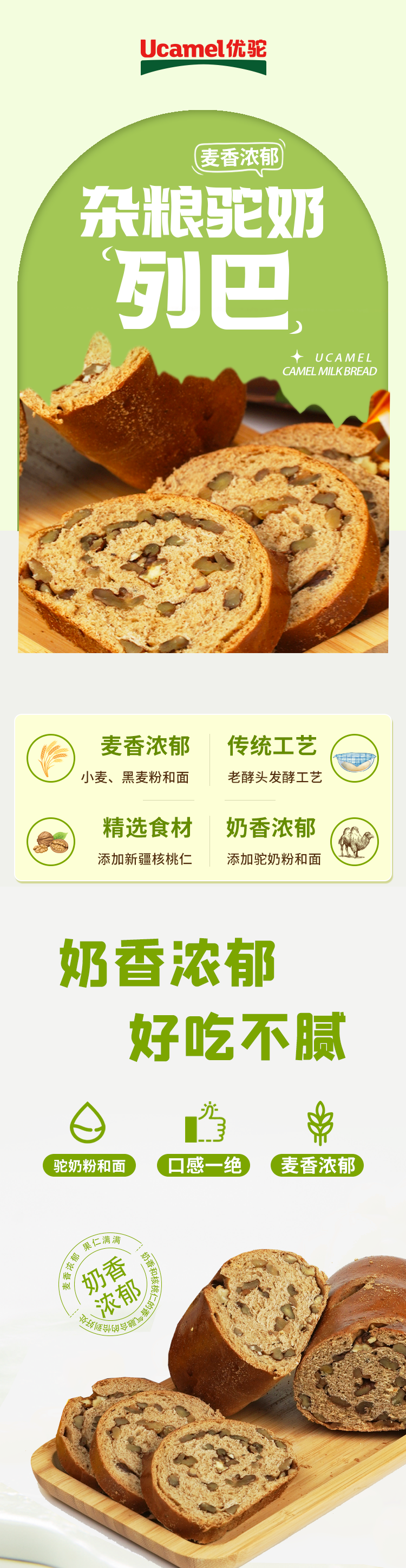 优驼驼奶列巴 老酵头发酵,0反式脂肪酸,大块核桃仁,麦香味浓!25天保质期